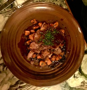 IMG_9298 Epaule d'agneau, boniato, échalote, noix, dattes et sauce au sésame noir Partager :Tweet Cliquer pour envoyer un lien par e-mail à un ami(ouvre dans une nouvelle fenêtre) E-mail Partager sur TumblrJ’aime chargement…