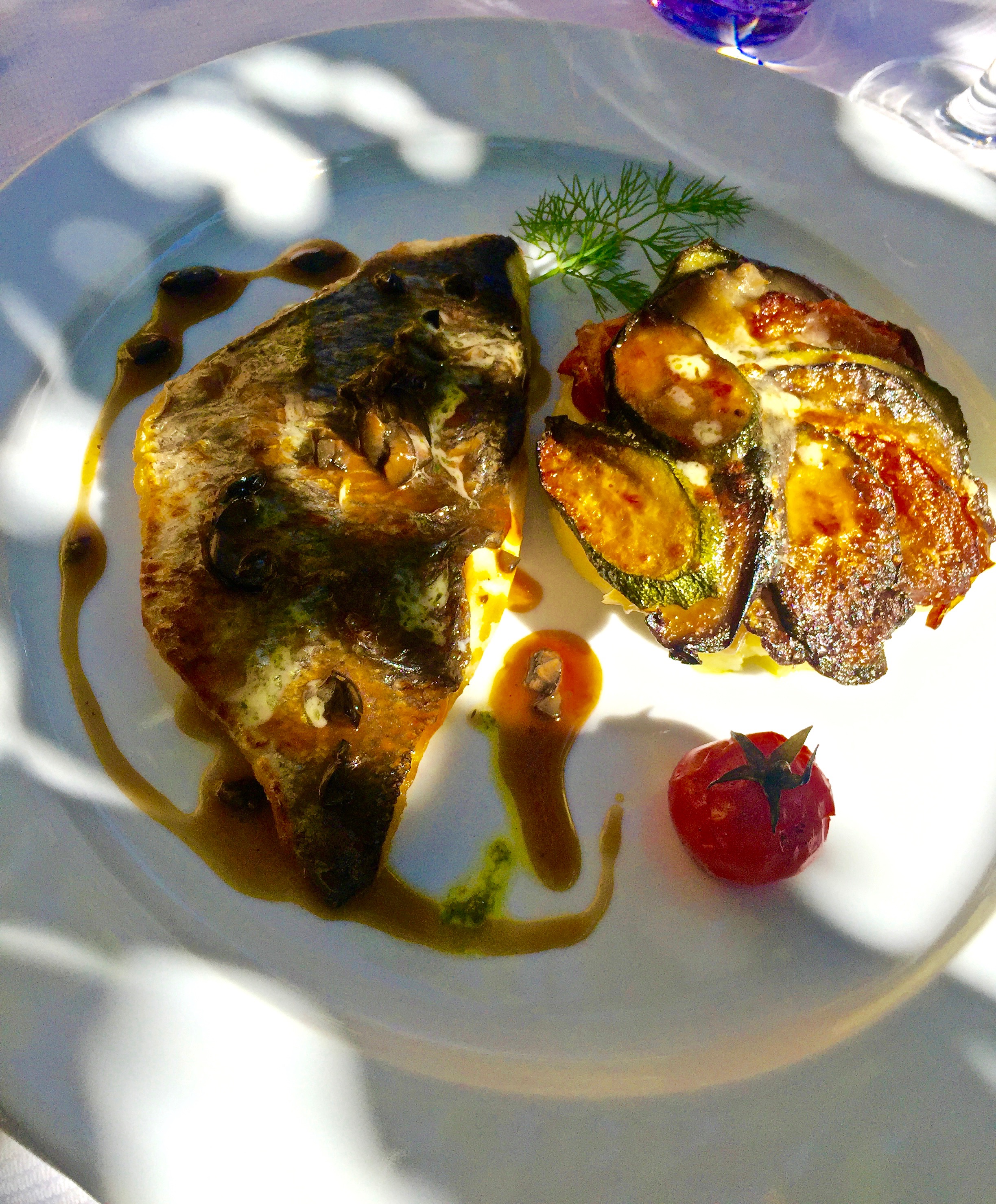 IMG_9352 Filet de daurade, jus d'olive noires-Bayaldi de légumes et écrasé de pomme de terre citronné Partager :Tweet Cliquer pour envoyer un lien par e-mail à un ami(ouvre dans une nouvelle fenêtre) E-mail Partager sur TumblrJ’aime chargement…