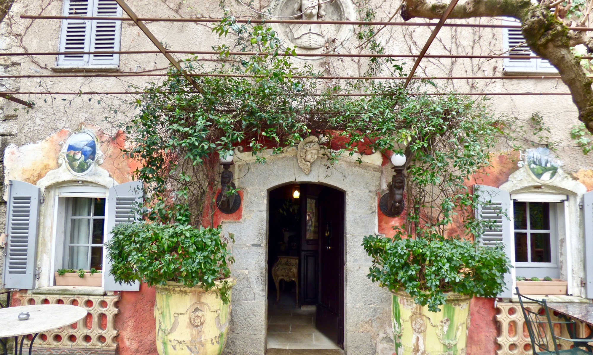 C’est en retrait de la route des Arcs, perchée sur une petite colline au bout d’un long chemin arboré que vous devinez, quasi cachée et noyée dans une végétation luxuriante, entre oliviers et cyprès, une superbe bastide de pierres à la patine ocre. Le porche, surmonté d’un B « royal », vous invite à pénétrer en ces lieux; continuez encore quelques mètres et une tonnelle rafraîchissante vous transporte jusqu’à l’entrée de la maison. De-ci de-là des jardins, des sculptures aux belles signatures contemporaines vous regardent… Une atmosphère arty et colorée. Poussez la lourde porte en bois et vous entrez alors dans l’antre d’une Famille: celle des Bruno, le temps d’un déjeuner ou d’un dîner. On vous reçoit avec délicatesse et amitié et on vous conduit à votre table… Un dédale de salles, se cachant mutuellement, laissant ainsi la surprise à chaque invité…. Des boiseries sombres, des cheminées en pierres de taille, de la tomette, une splendide véranda ouverte sur les jardins, une bibliothèque, une rôtisserie et une cuisine complètement ouverte et libre d’accès à tous….si vous n’osez y entrer, on vous convie alors à venir saluer et découvrir les équipes. C’est ici même que Benjamin vous accueille avec simplicité et avec une souriante gentillesse directement dans ses cuisines, vous invitant à déguster des lamelles de ce précieux joyau tout en vous expliquant les différentes saisons et variétés. Les cuisiniers en pleine symphonie, les serveurs en plein ballet pourraient vous intimider par crainte de déranger en pleine « représentation »… mais les sourires et les « bienvenue » chaleureux vous font vite sentir privilégié et à l’aise dans ce centre névralgique des plaisirs gourmands.