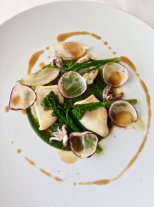 Calamars à la Plancha, jus de persil fumé à l'ail confit brocolettis et copeaux de radis ©lepetitlugourmand