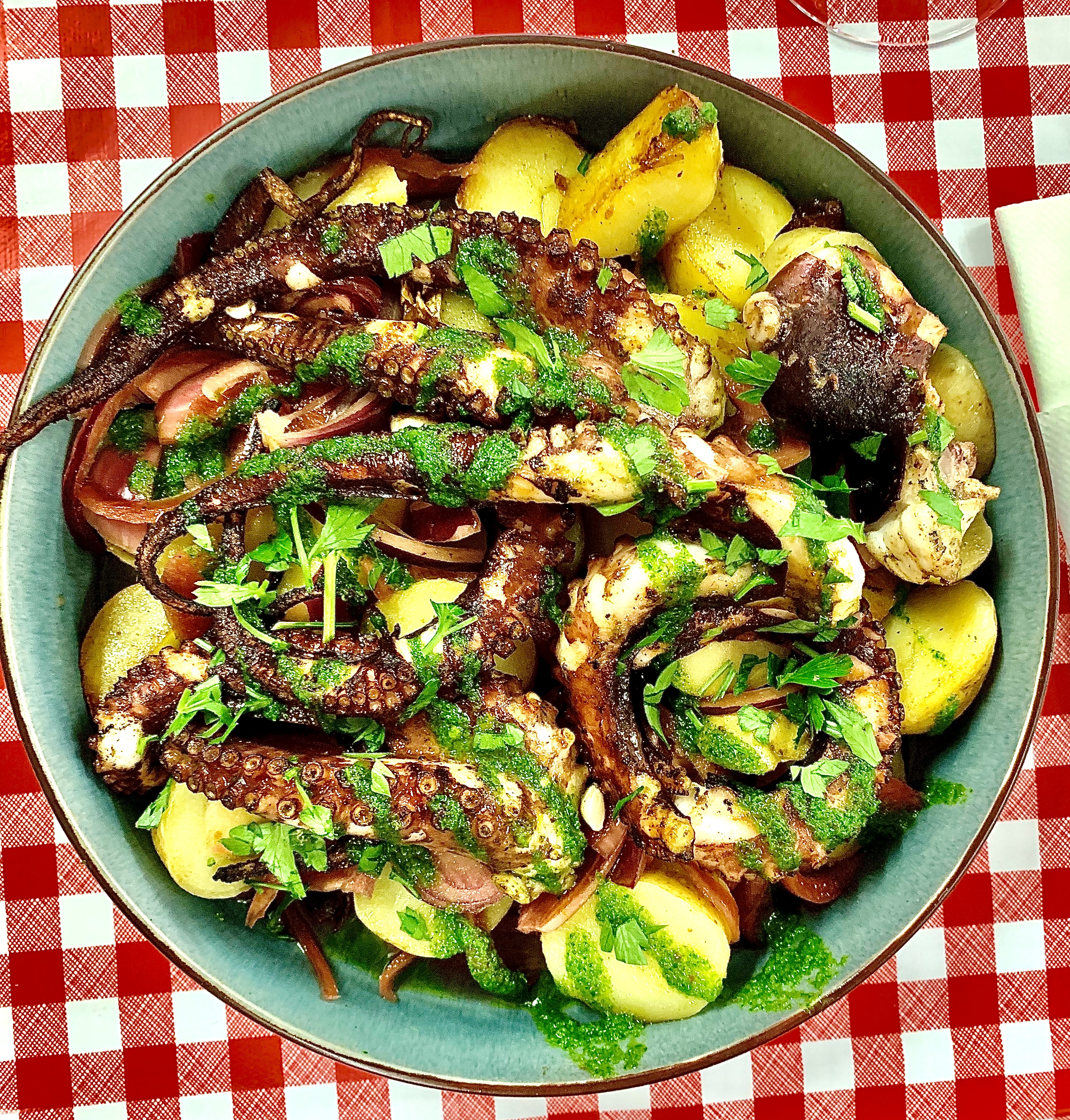 Poulpe Made in Bootgrill BBQ, pommes de terre, oignons marinés, citron, sauce bootgrill ©lepetitlugourmand