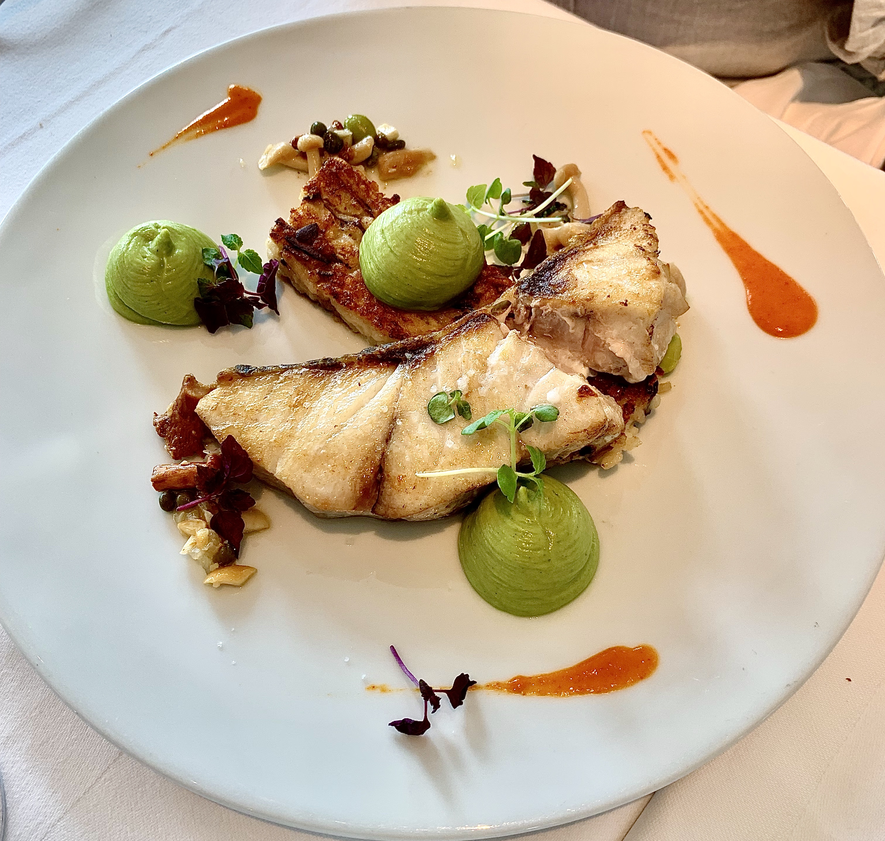 Pavé de Maigre rôti, galette de risotto, crémeux d'avocat et gelée de piment d'Espelette ©lepetitlugourmand