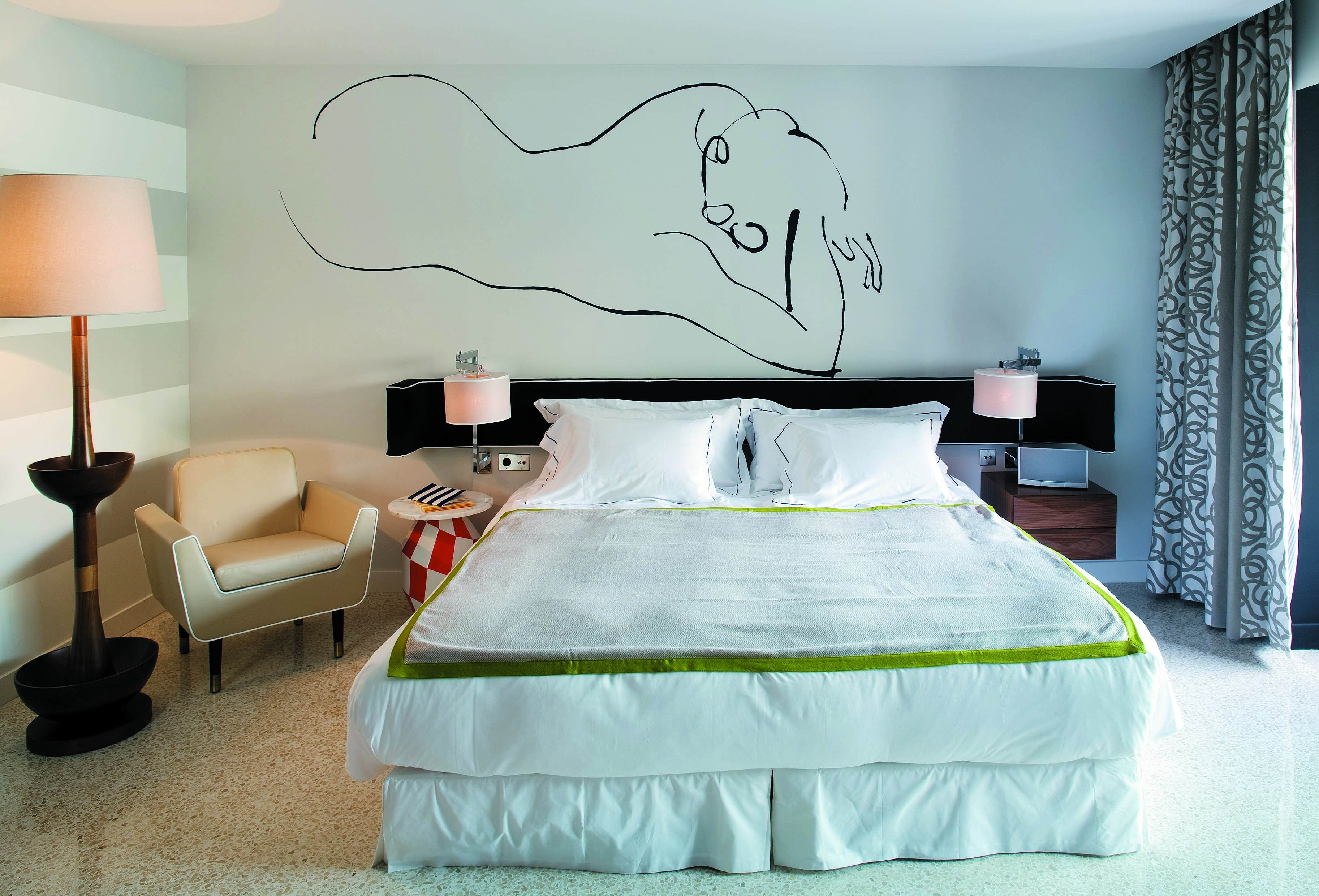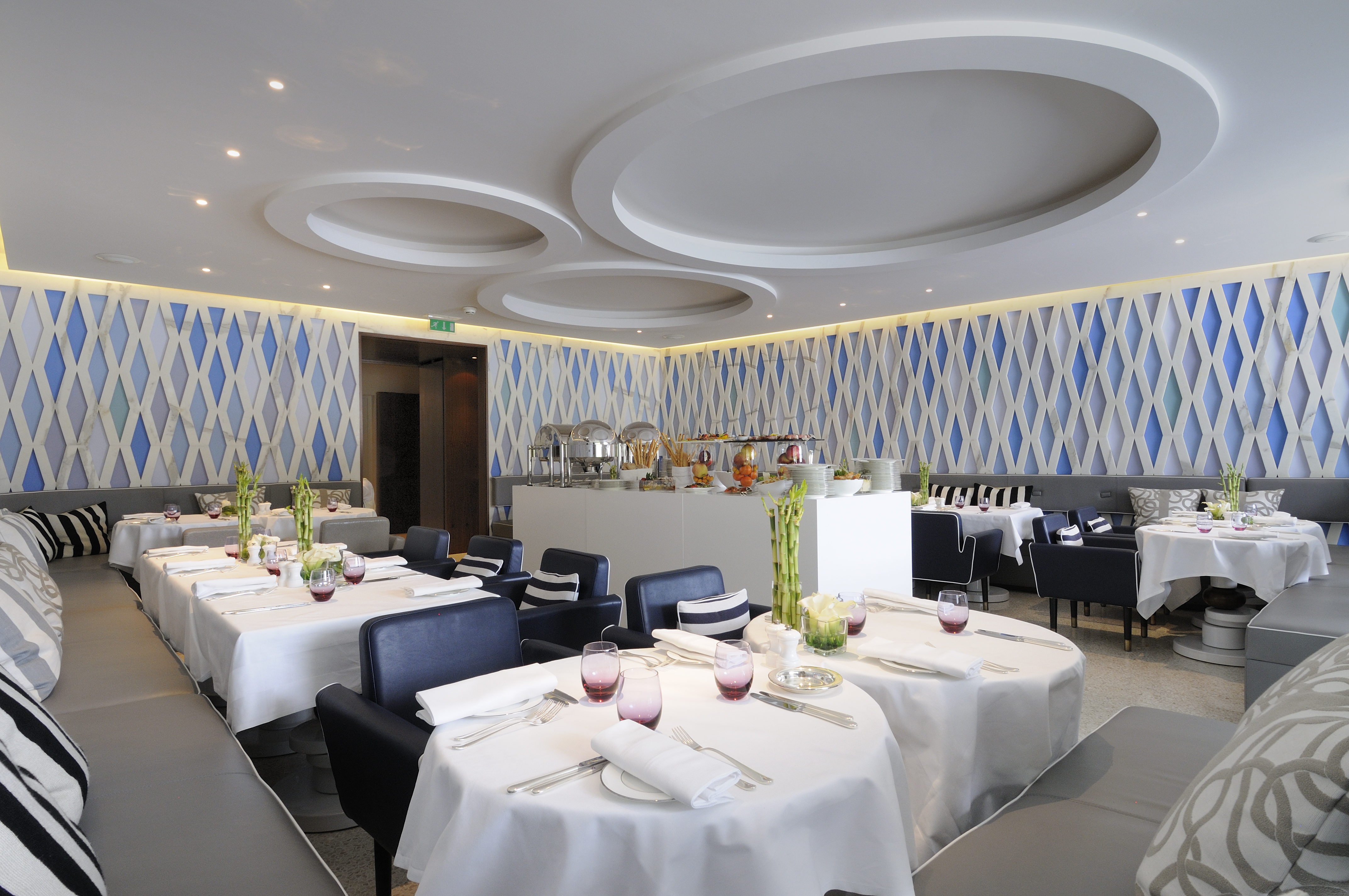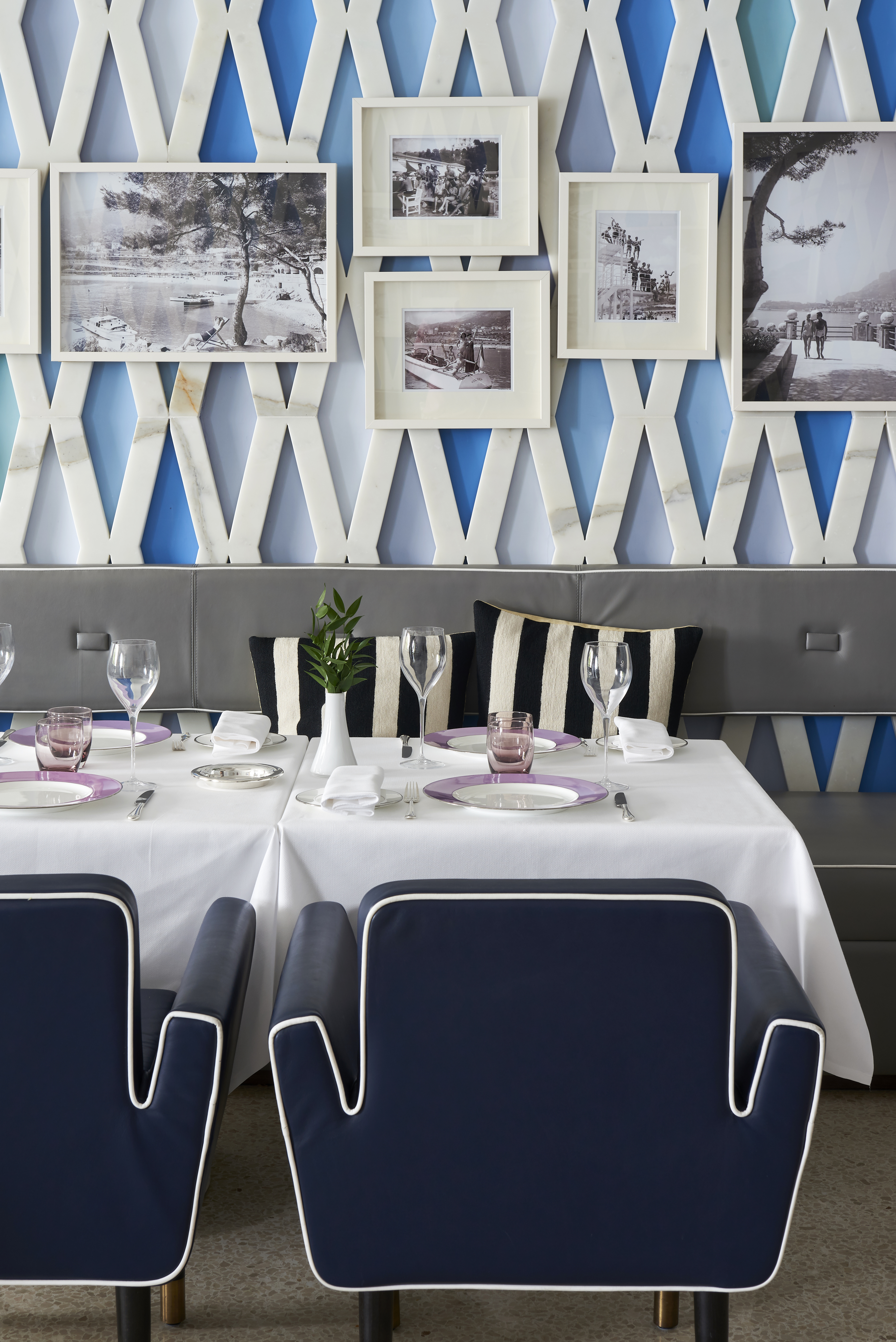 L’Hôtel, membre des Relais & Châteaux, a été repensé et sublimé en 2009 par la célèbre architecte / designer India Madhavi, dans une signature raffinée, discrète, d’une Riviera poétique et ressourçante célébrant la nature environnante. Les lignes fluides et douces sont délicatement éveillées d’un camaïeux azuréen encadré d’un marbre à la suavité charnelle, les rayures blanches des canapés taupe cadencent les arrondis, et les appliques murales aux formes orchidées sont posées tels des papillons se ressourçant d’une fantasque envolée. L’ensemble vous happe dans une ivresse de bien-être qui vous éloigne si bien d’un monde empressé et tourmenté : la sensation d’un lieu qui devient votre cabane secrète, à l’abri de tout, et qui vous offre une parenthèse tant espérée.