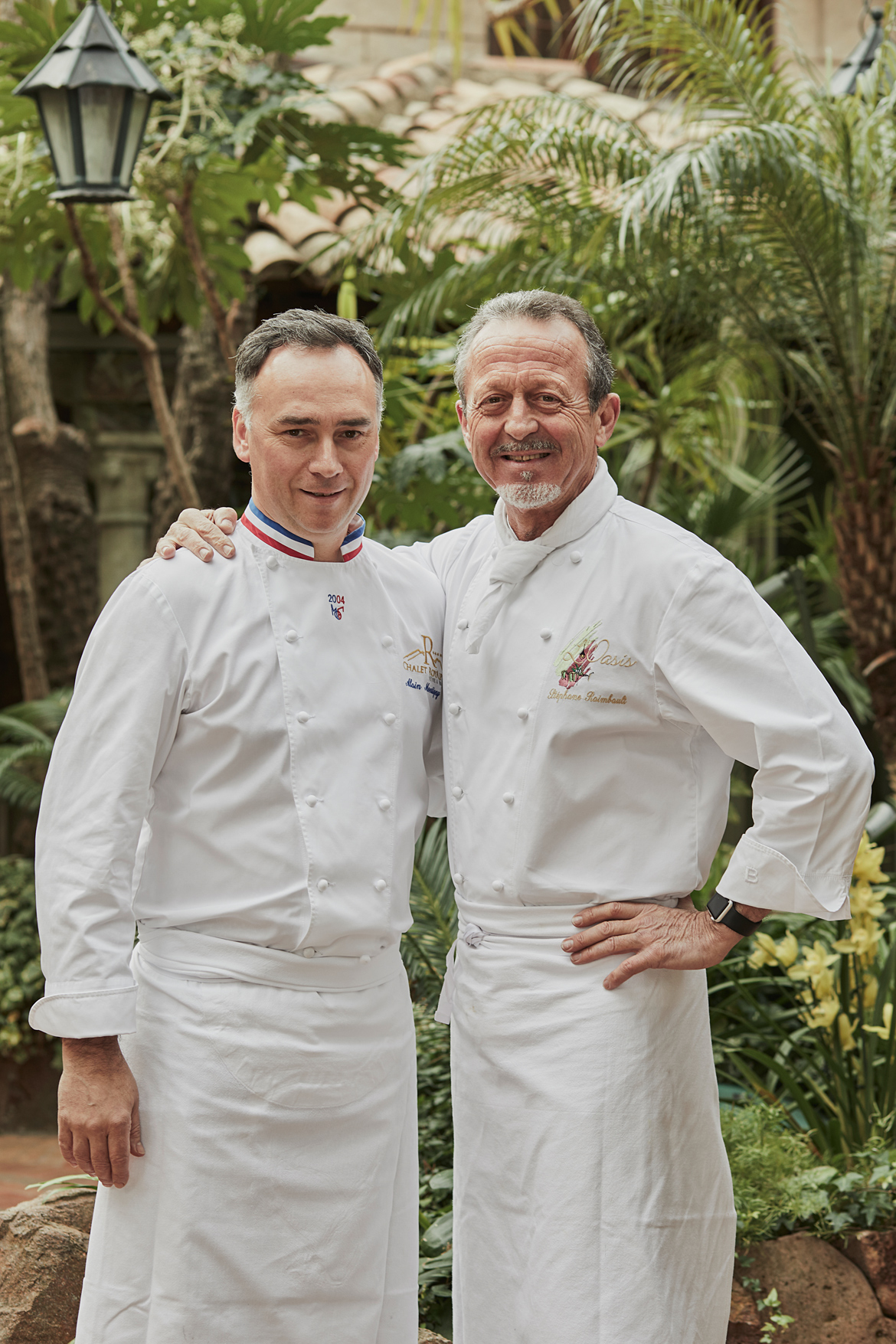 L’Oasis – La Napoule est une institution qui a fait vibrer les papilles des plus exigeants gastronomes du monde entier depuis sa création par Louis Outhier en 1954. Cet élégant chef esthète, au parcours d’une voie royale de la haute gastronomie française, a fait ses classes chez l’unique et intransigeant Fernand Point (le père de la cuisine Moderne) en même temps qu’un certain Paul Bocuse et autre Jean Troisgros. Envoyé en remplacement au Carlton à Cannes, Louis Outhier découvre et tombe éperdu par la beauté et la magie de La Côte d’Azur. Il achète aussitôt dans le charmant village de pêcheurs de La Napoule, situé dans la baie de Cannes, une petite villa au style atypique qu’il transforme en restaurant. De par sa cuisine et son accueil légendaire, l’Oasis devient très vite une adresse incontournable et prisée de la région : une véritable « Pension Gourmande ». En 1960 arrive la première étoile au Guide Michelin, puis la seconde en 1965 et enfin, en 1970 la consécration des trois étoiles place l’Oasis au firmament des destinations et références de la gastronomie de la Riviera, tels Le Moulin de Mougins de Roger Verger ou encore La Bonne Auberge de Jo Rostang. On vient du monde entier pour déjeuner dans le patio à la végétation luxuriante et tropicale, les stars et starlettes du Festival de Cannes s’empressent à venir goûter Le Loup en Croute, La Mousseline de Rascasse ou encore le Foie Gras en Brioche… Louis Outhier est secondé de façon exemplaire par le chef mentor Jean-Marie Meulien, il forme et s’entoure également de jeunes cuisiniers qui deviendront de très grands chefs influents et reconnus, tels Guy Savoy, Jean-George Vongerichten ou Stéphane Raimbault. Dans les années 80, ils seront les parfaits émissaires de la signature « l’Oasis – Louis Outhier consulting » à l’internationale (Japon, Thaïlande, Etats-Unis…). Les nombreux voyages en Asie amèneront, alors, une foudroyante évolution dans la cuisine qui s’enveloppera d’épices et d’exotisme (une des premières tables 3 étoiles à oser faire voyager les assiettes) : comme la mémorable Langouste aux Herbes Thaïe ou encore le Canard à l’Orientale, sans oublier le Homard au gingembre et vin de Sauternes.