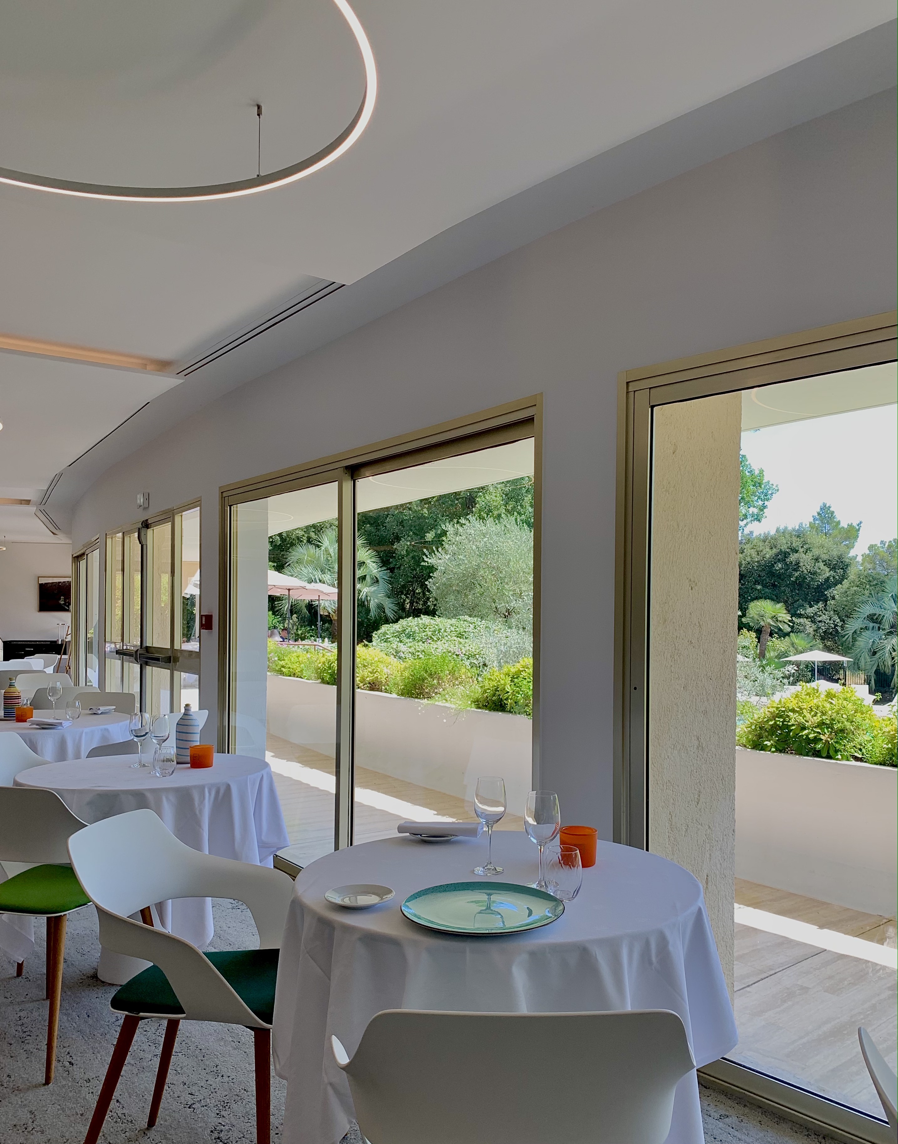 La salle à la blancheur étincelante, ravivée de touches de couleurs vives, telle la palette d’un peintre inspiré, est encerclée en panorama d’une Nature farouche et intense. La vaste terrasse, nichée de verdure et orchestrée du chant des cigales, vous donne cette opportunité de vivre une savoureuse villégiature.