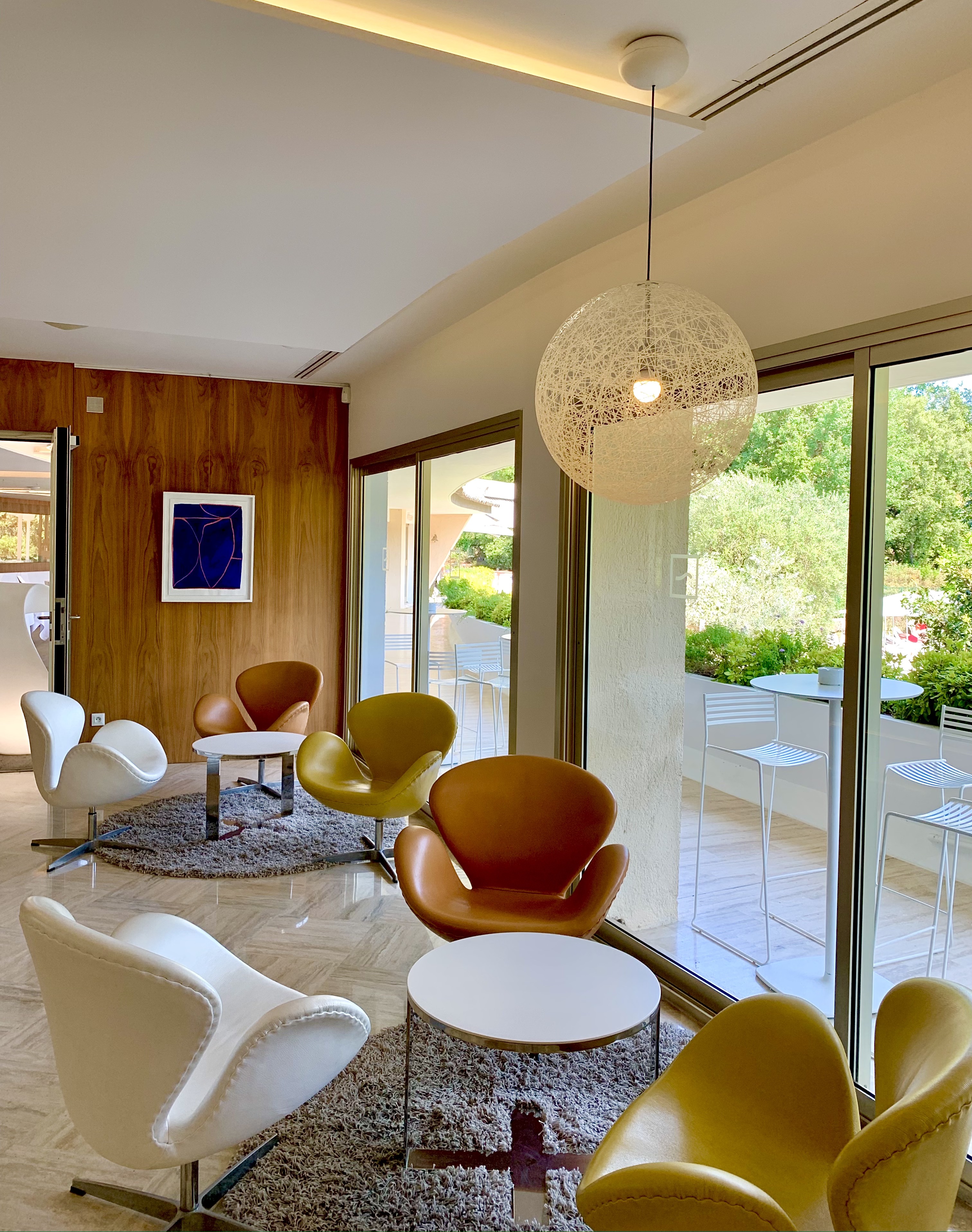 La Vague de Saint-Paul a cette signature des années 70, mêlant l’audace architecturale du béton et la sérénité d’une maison provençale aux tuiles et murs de chaux. Après avoir été un lieu de séminaires et de formations pour une multinationale américaine durant plus de 30 ans, le bâtiment a été repris en 2012 pour être transformé en un complexe hôtelier haut de gamme. Le chantier a été confié à l’architecte suisse Maurus Frei, qui a allégé et unifié le bâtiment dans son ensemble en le soulignant d’une vaste ouverture sur l’extérieur et la nature environnante, il a également désenclavé les espaces intérieurs et rehaussé le tout par des couleurs « peps » orange ou verte, respirant les années 70, notamment dans les chambres et suites. En novembre 2013, La Vague de Saint-Paul, Hôtel-Restaurant 4 étoiles, ouvre ses portes avec l’expertise du gestionnaire d’hôtels de luxe et boutiques hôtels : Phoenix Hotel Management, fondé et dirigé par le brillant Thierry Naidu ( La Chèvre d’Or à Eze, Château Le Cagnard au Haut-de-Cagnes, Hôtel Saint-James à Bouliac…). Il nomme le jeune monégasque Guillaume Puig (Relais & Châteaux Moulin de l’Abbaye, Brantôme, Gran Hôtel Sonnet, Mallorca) directeur général de la Vague de Saint-Paul.