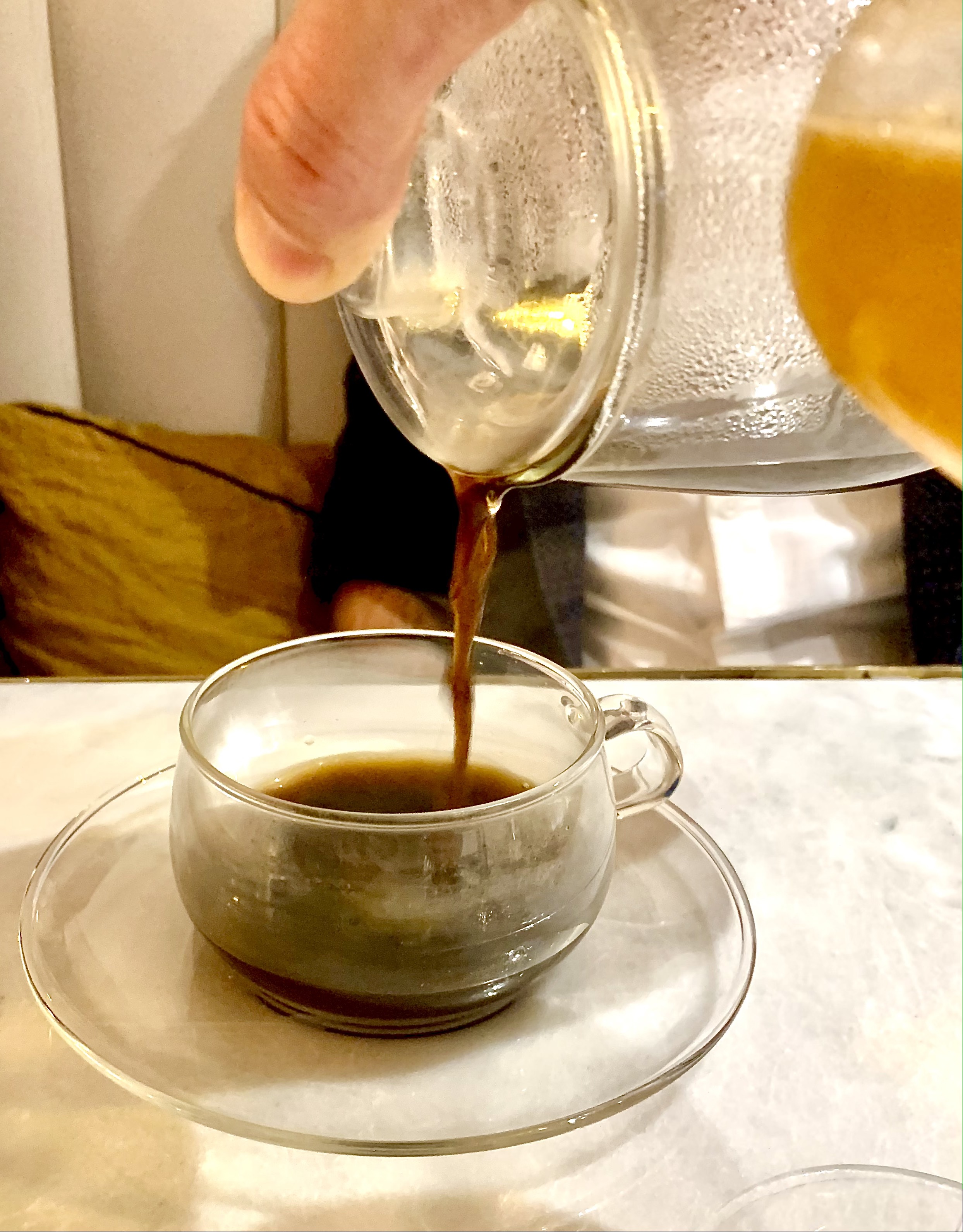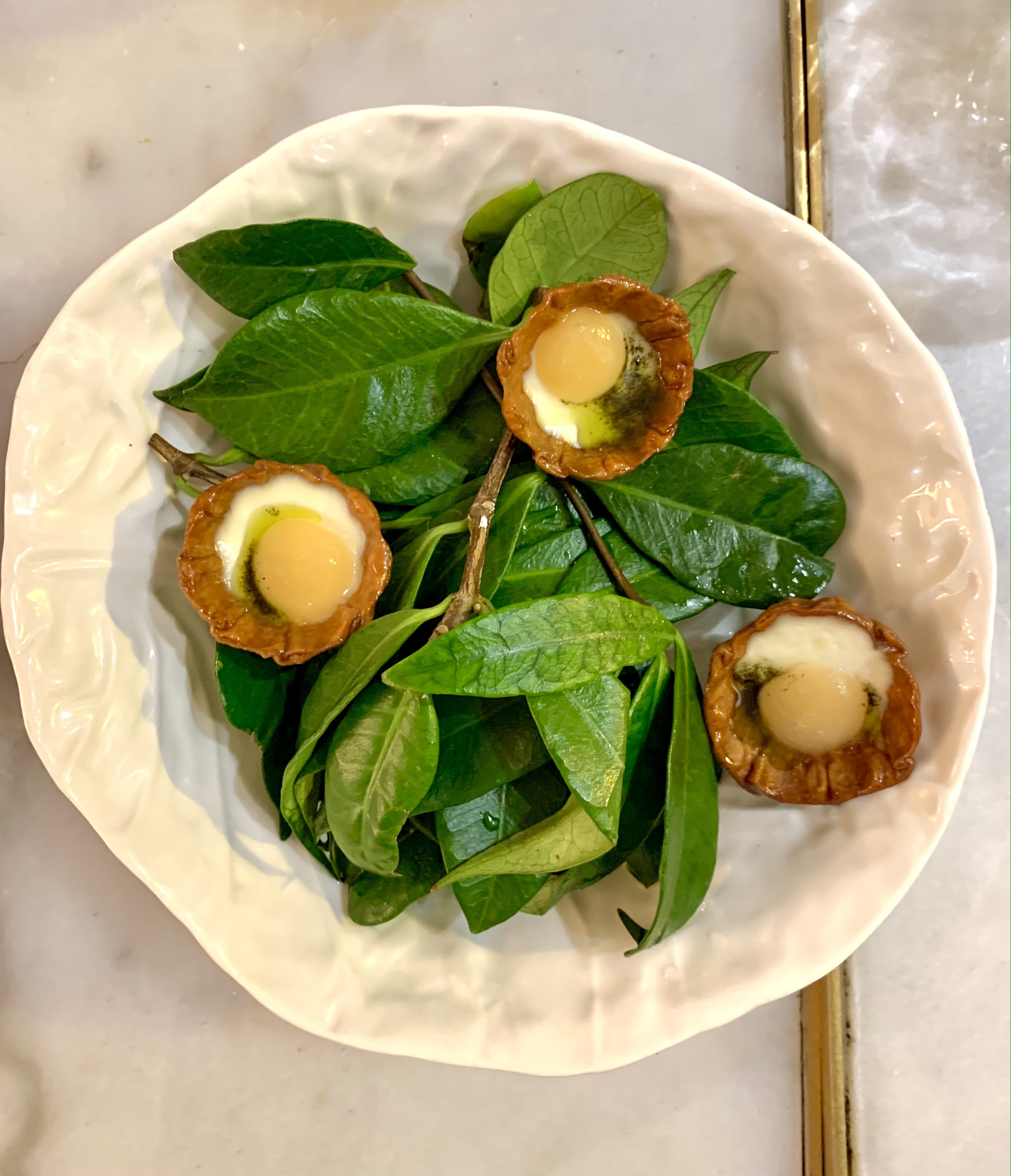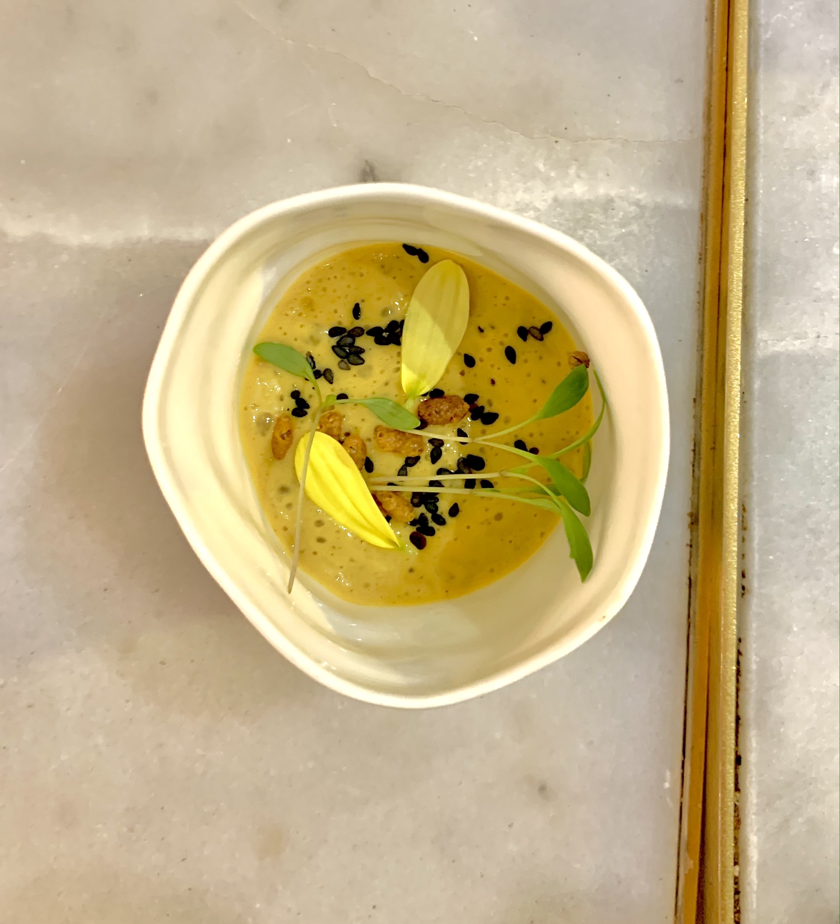 Pour vous mettre en appétit, le Thé noir anglais, infusé aux champignons et huile de noix, servi en prélude est un judicieux, addictif et parfait nettoyant, qui ouvre et prépare les papilles avec délice.