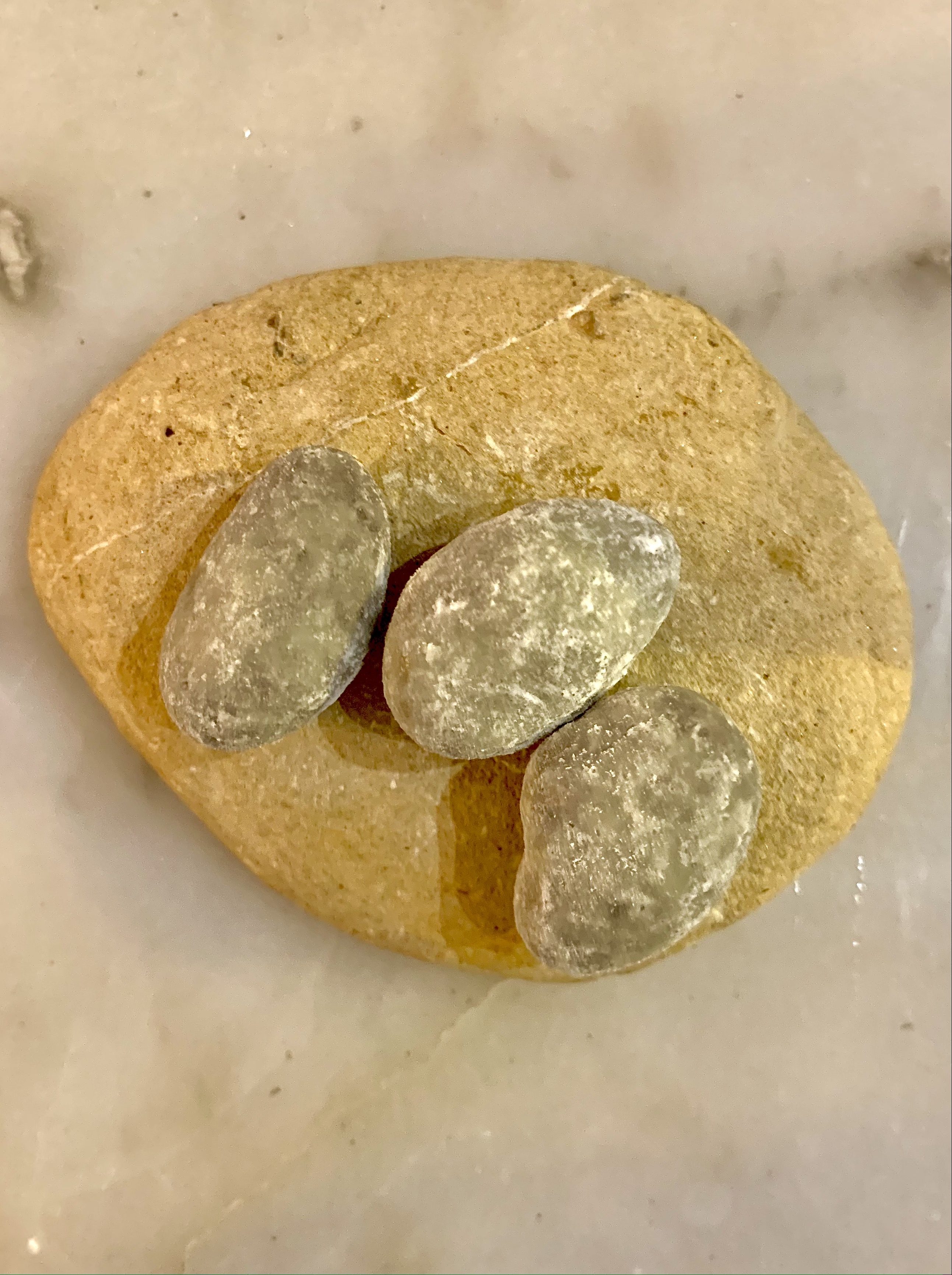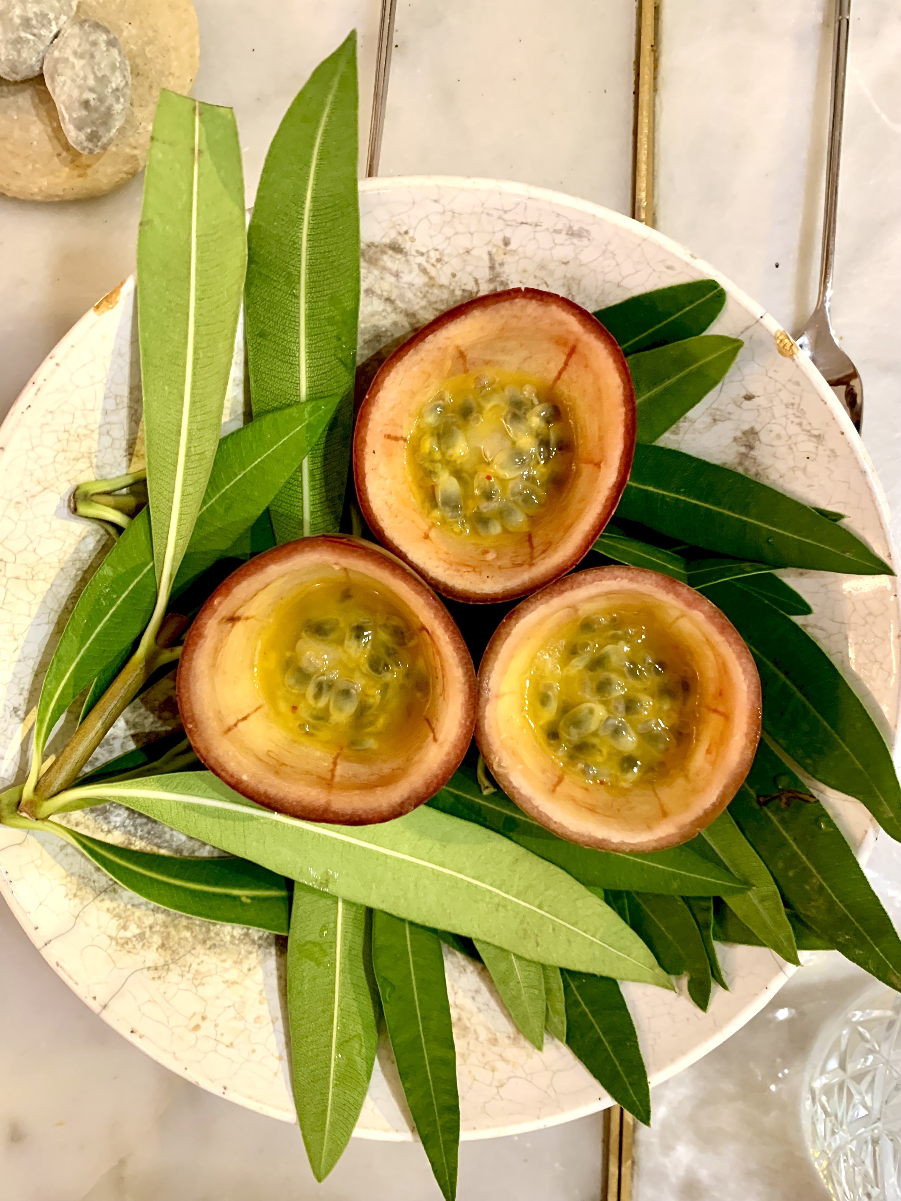 Les quatuor de Douceurs en guise de mignardises boucle la boucle du menu en minutie et inventivité, comme la tartelette Panacotta jasmin condiment coing, la coque passion en vérité, insert avocat & banane, le granité agrumes- pastèque et l’amande torréfiée caramel, comme un galet de Nice.