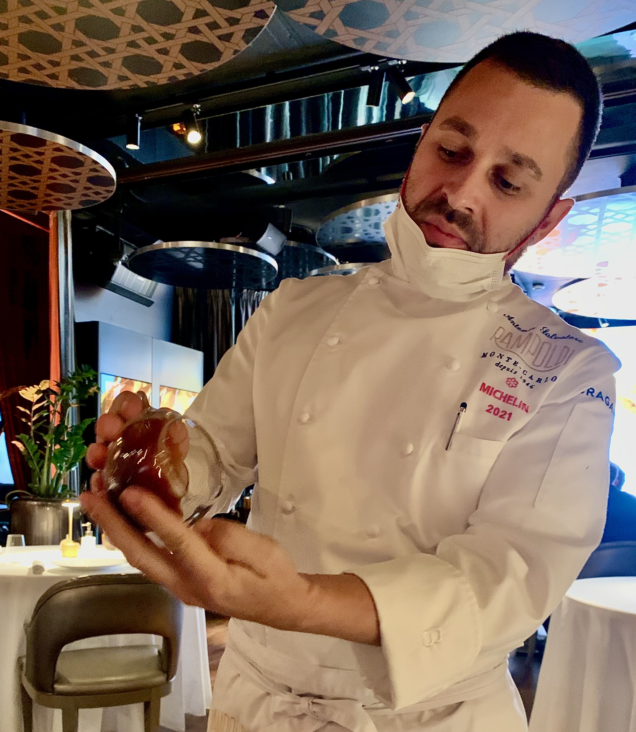 A la tête, depuis 2016, de l’emblématique institution monégasque Rampoldi (qui fête ses 75 ans), le jeune chef italien au brillant parcours (autre article) a su redonner à cette adresse mythique une nouvelle dynamique, dans une continuité glamour, au travers d’une identité chic, d’une cuisine italienne solaire et raffinée, qui fait autant courir les happy few, que les amoureux des belles tables. C’est en septembre 2020, qu’Antonio Salvatore ouvre son restaurant signature, La Table d’Antonio (auréolé d’une étoile par le Guide Michelin seulement trois mois après l’ouverture): cinq tables du Chef, situées en sous-sol de Rampoldi, tel un speakeasy gastronomique ou un club privé de luxe gourmand. La Table d’Antonio est une véritable bulle immersive d’un monde élégant, à part et identitaire. Le chef vous invite à vivre un moment privilégié dans son histoire, celle des saveurs enjouées de son enfance, de sa délicieuse et vibrante Italie. C’est dans une ambiance tamisée et intime, que vous serez reçu avec courtoisie et charme par Massimo Sarnataro, le directeur, pour déguster jusqu’à mi-novembre le menu Tartufo Bianco.