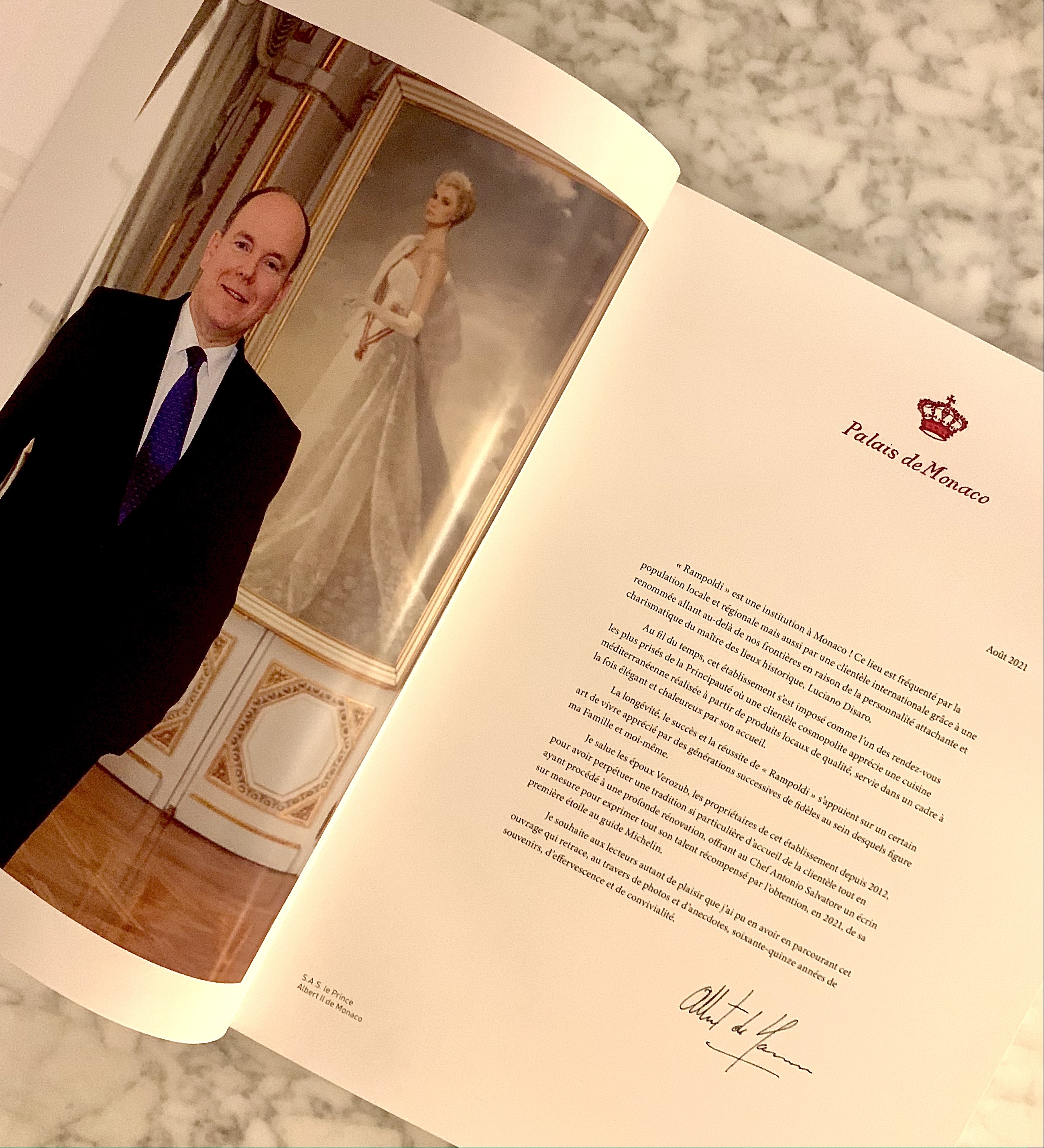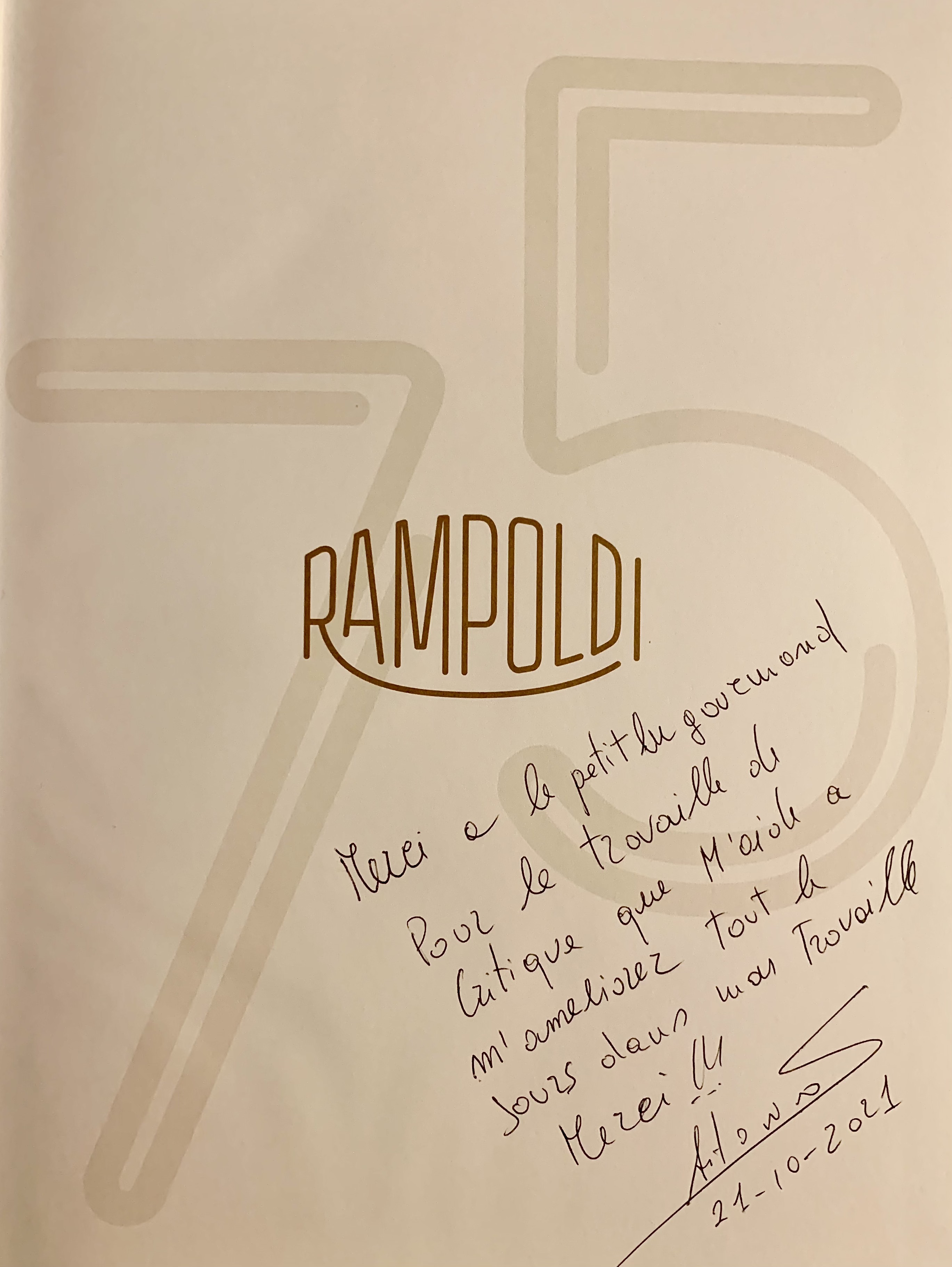 Pour célébrer et marquer les 75 ans de Rampoldi, un livre a été publié retraçant toute son histoire depuis sa création en 1946 par Louis Rampoldi, qui ouvrit ainsi le premier restaurant italien de la Principauté. L’établissement, qui a vu passer célébrités internationales, sportifs, têtes couronnées, dirigeants de ce monde et grandes figures locales, est toujours et encore plus un lieu de vie, mondain et gourmand, tout en étant convivial et enjoué. Un parfait équilibre de la cuisine italienne et française orchestré avec grande sincérité par le Maestro Antonio Salvatore.