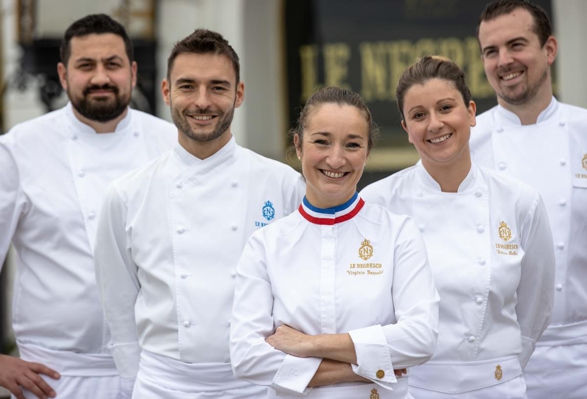 La même année, suite au départ de Jean-Denis Rieubland, Le Negresco et son directeur Pierre Bord (qui a su insuffler à l’établissement le renouveau et la modernité dans une respectueuse continuité) cherchent un profil idéal pour prendre la succession des cuisines du Chantecler, de La Rotonde , du Room-service et du service banquet, et qui corresponde à l’image et à la philosophie de ce joyau de la Promenade des Anglais. Virginie est une personne discrète, volontaire et directe, qui sait ce qu’elle veut : c’est la personne qu’il faut. Très vite séduite par le lieu, son histoire et surtout pour son côté atypique, elle accepte de prendre les rênes des cuisines du Negresco pour continuer à créer son histoire. Madame Augier aurait assurément aimé cette collaboration et aurait été fière de voir une première femme chef et MOF de son établissement. Toutes deux ont un parcours de femmes libres, créatives et entreprenantes, qui ont su modeler leur chemin à leur façon, sans contrainte et peur des « ont dit », pour toujours aller de l’avant.