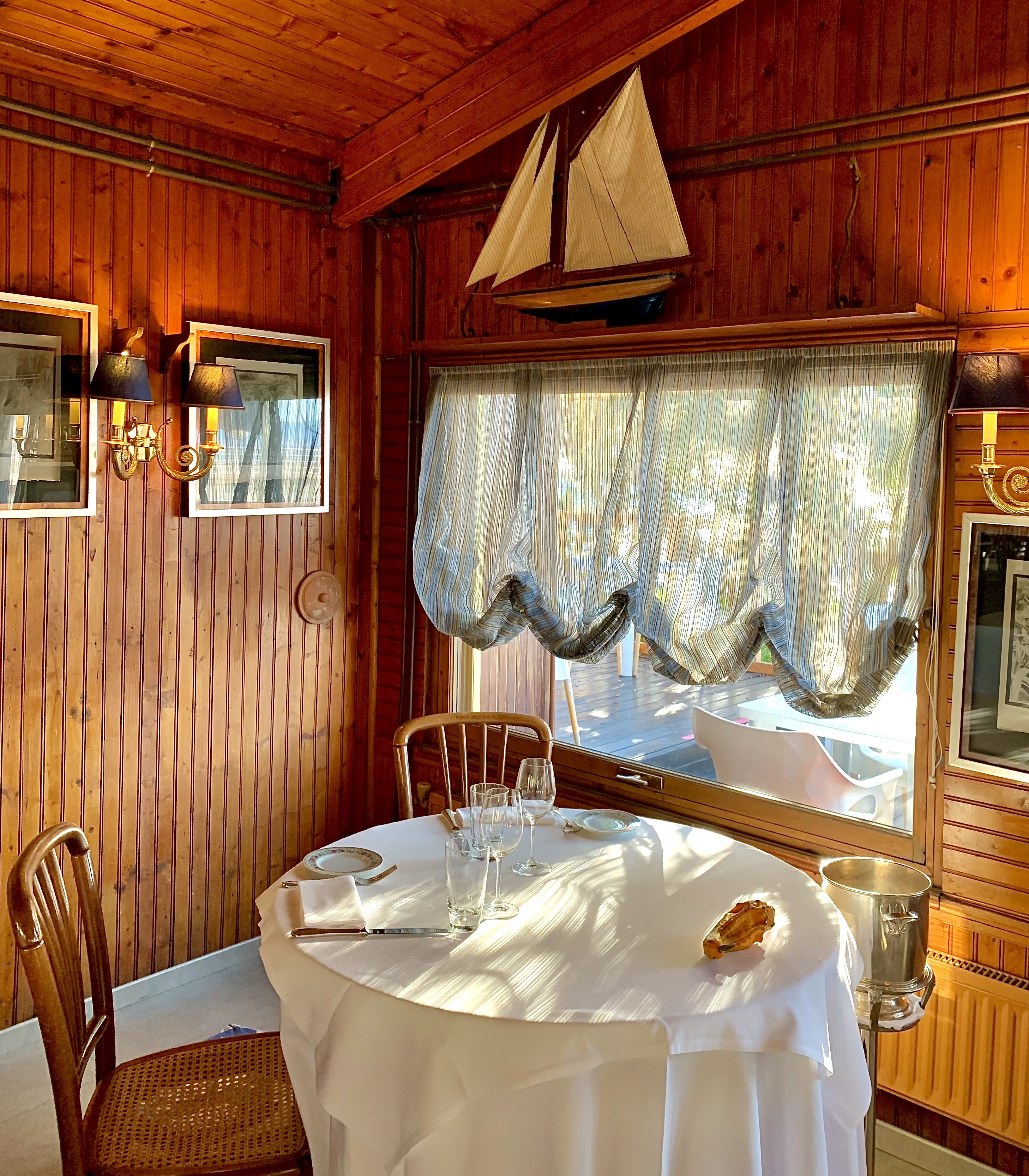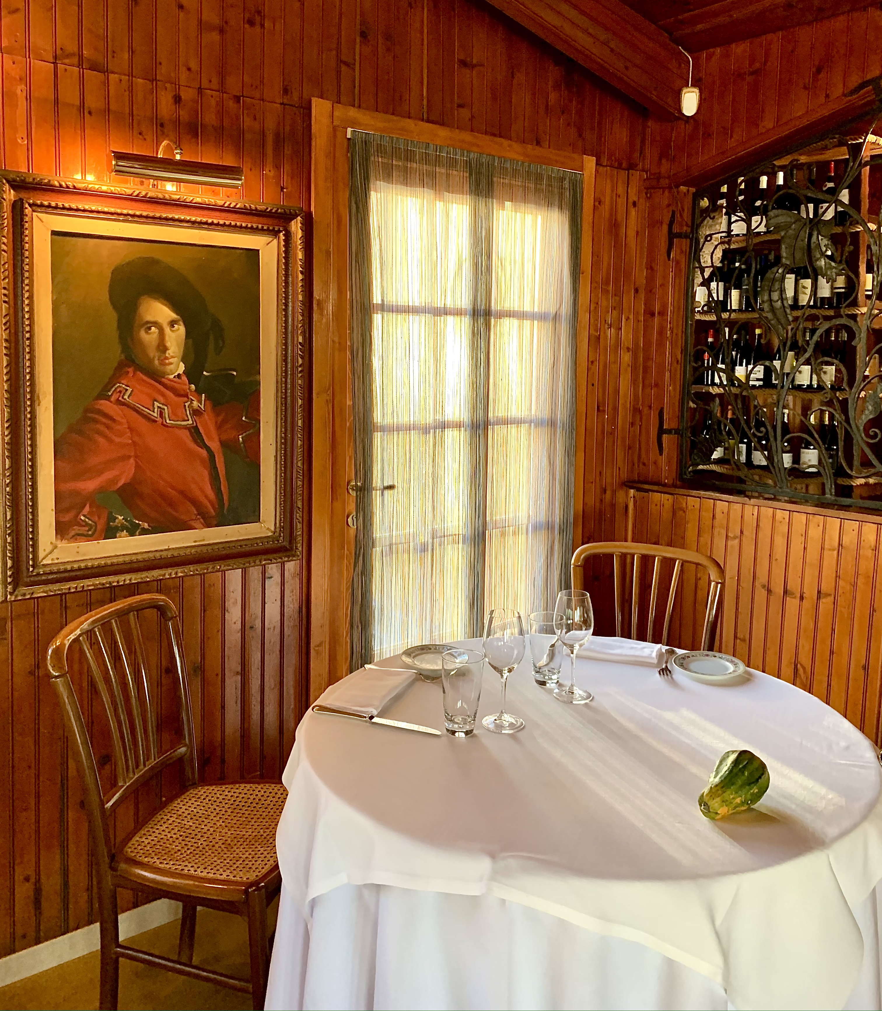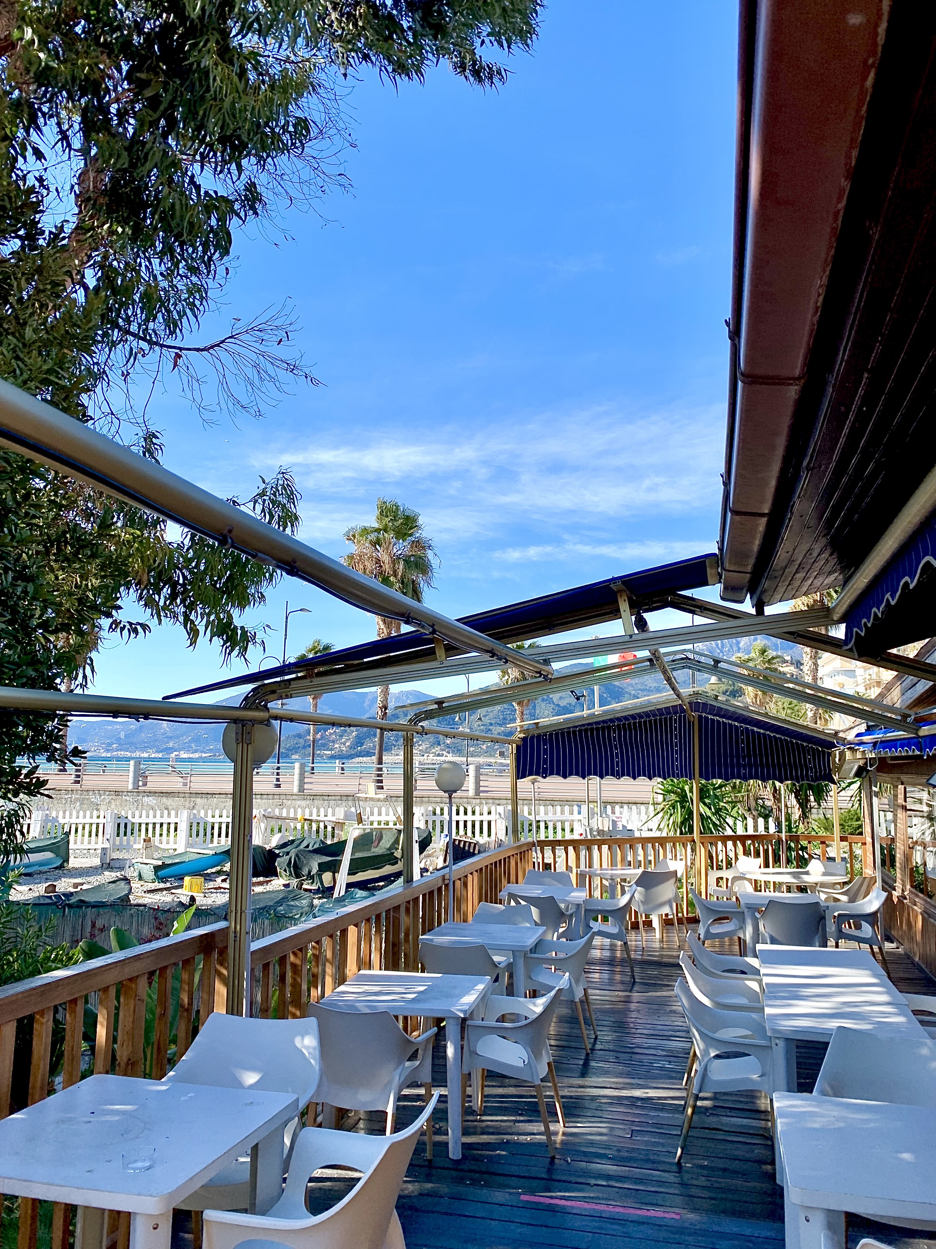 Sur le long de la promenade du bord de mer, un peu désuète et dans son jus, se profile et se distingue au loin, un bâtiment tout de bois blond, telle une grande cabane de pêcheur. C’est celle que les fondateurs, Maria et Oreste Pani, ont construit de leurs mains sur pilotis directement sur la plage. Marco-Polo se démarque des autres établissements environnants par cette élégance naturelle et son côté discret et intime où rien ne transparait de l’extérieur. C’est une fois que vous poussez la porte, que vous découvrez un lieu chaleureux, raffiné et authentique à l’allure rustique-chic d’une chalet-bateau d’un aventurier nostalgique des mers qui aurait pris sa retraite. Les portraits, tableaux et gravures apportent un côté classique et solennel d’un lieu qui raconte une histoire.