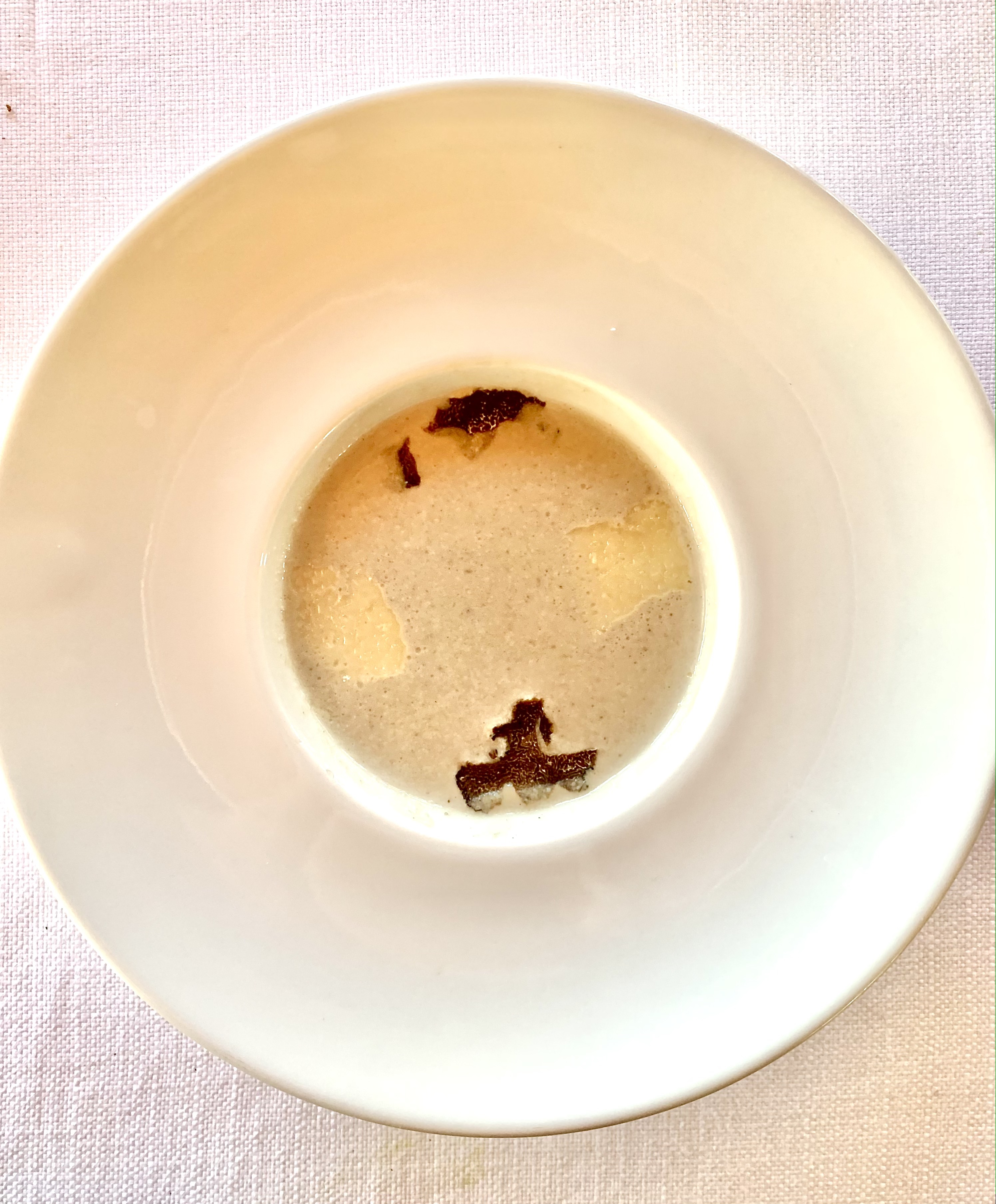 La Soupe « Savoy » d’artichauts et truffe noire est un bel hommage savoureux au mentor de Diego : le Chef Guy Savoy, avec son emblématique soupe d’artichauts à la truffe (régulièrement citée comme l’un des meilleurs plats du monde). En effet, les artichauts sont cuits dans un jus de truffes et sont sublimés par le parmesan qui pointe de son envergure gourmande et de son assaisonnement naturel. C’est simplement parfait.