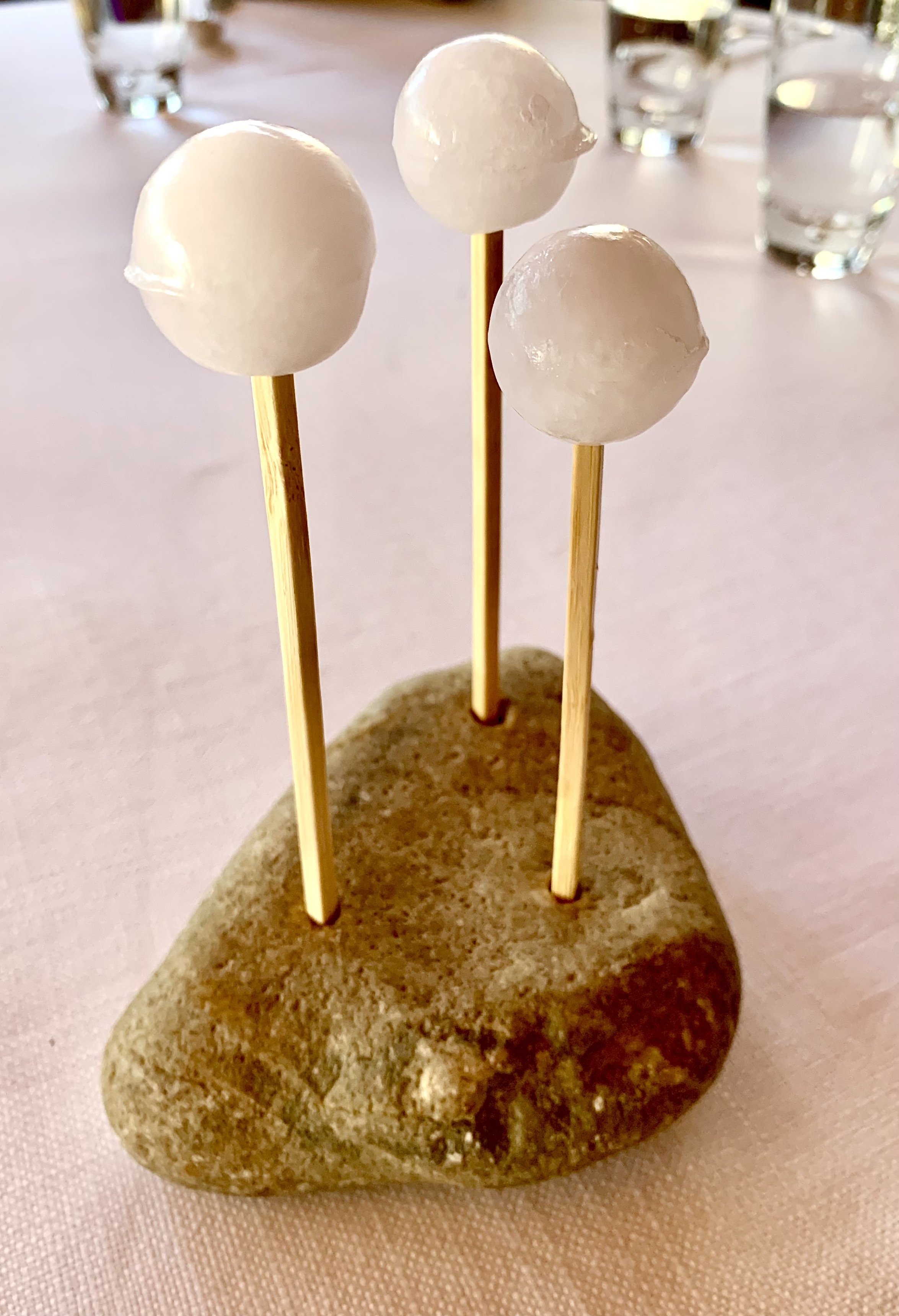 Tel un intermède pour nettoyer le palais et une mise en bouche des desserts, les sucettes à la voilette vous ramènent en enfance aux souvenirs des guimauves des fêtes foraines.