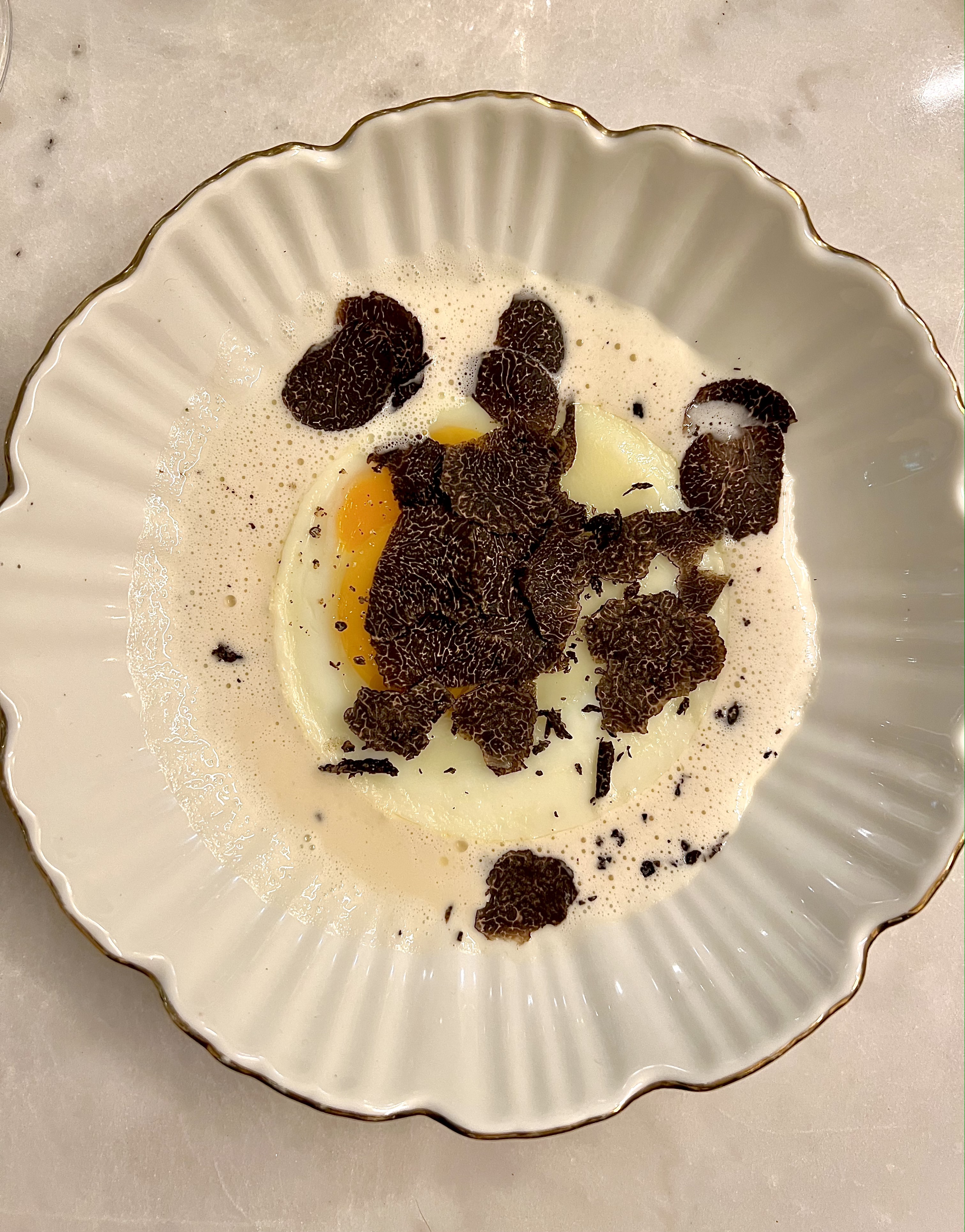 Dominique, quant à lui, débute avec un tiercé assurément gagnant et flatteur qui enivre le palais de plaisirs francs et réconfortant comme un dimanche avec l’œuf au plat crème au lard et truffe.