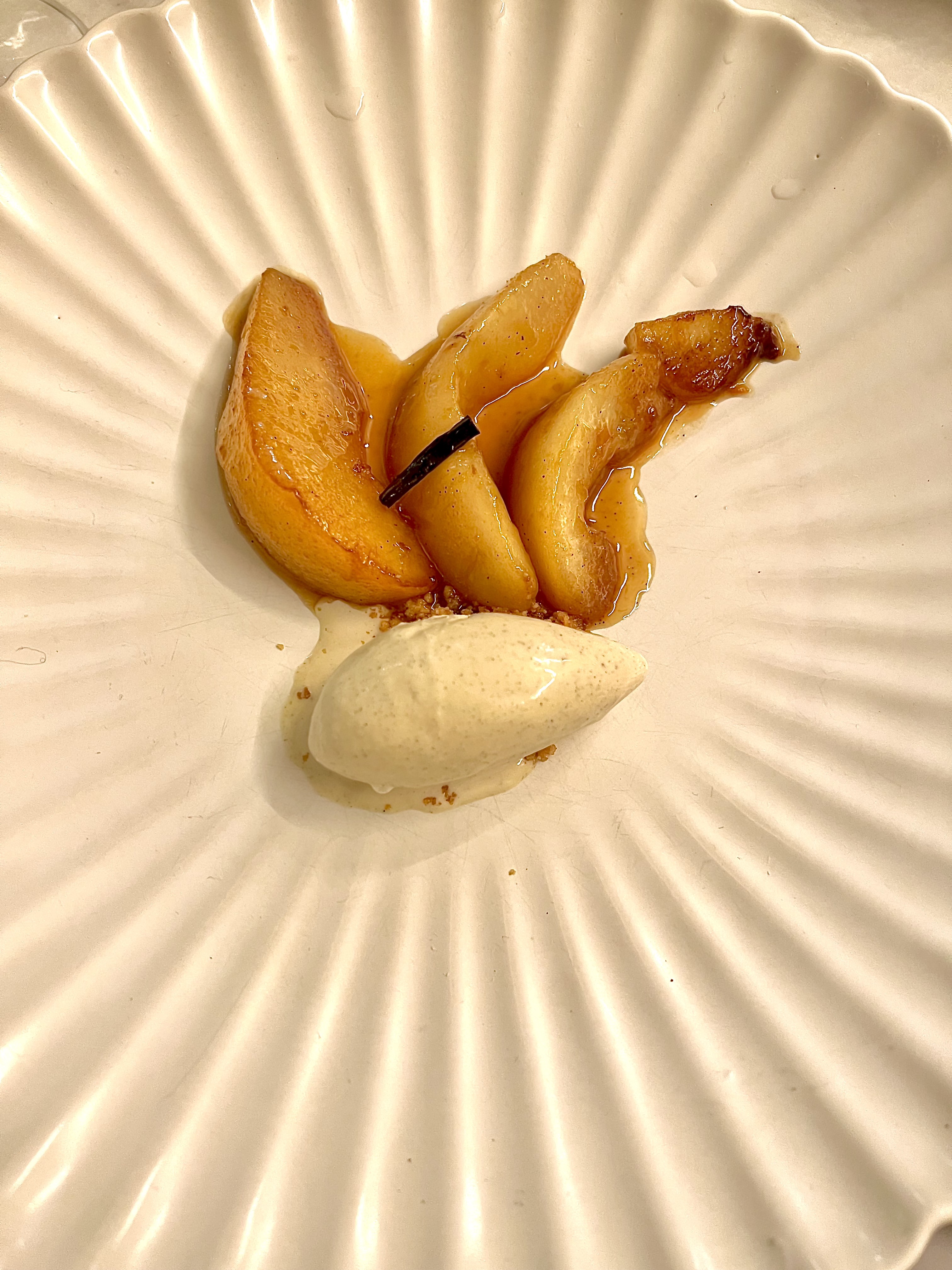 La poire rôtie vanille prépare en fraîcheur du second dessert en chocolat caramel.