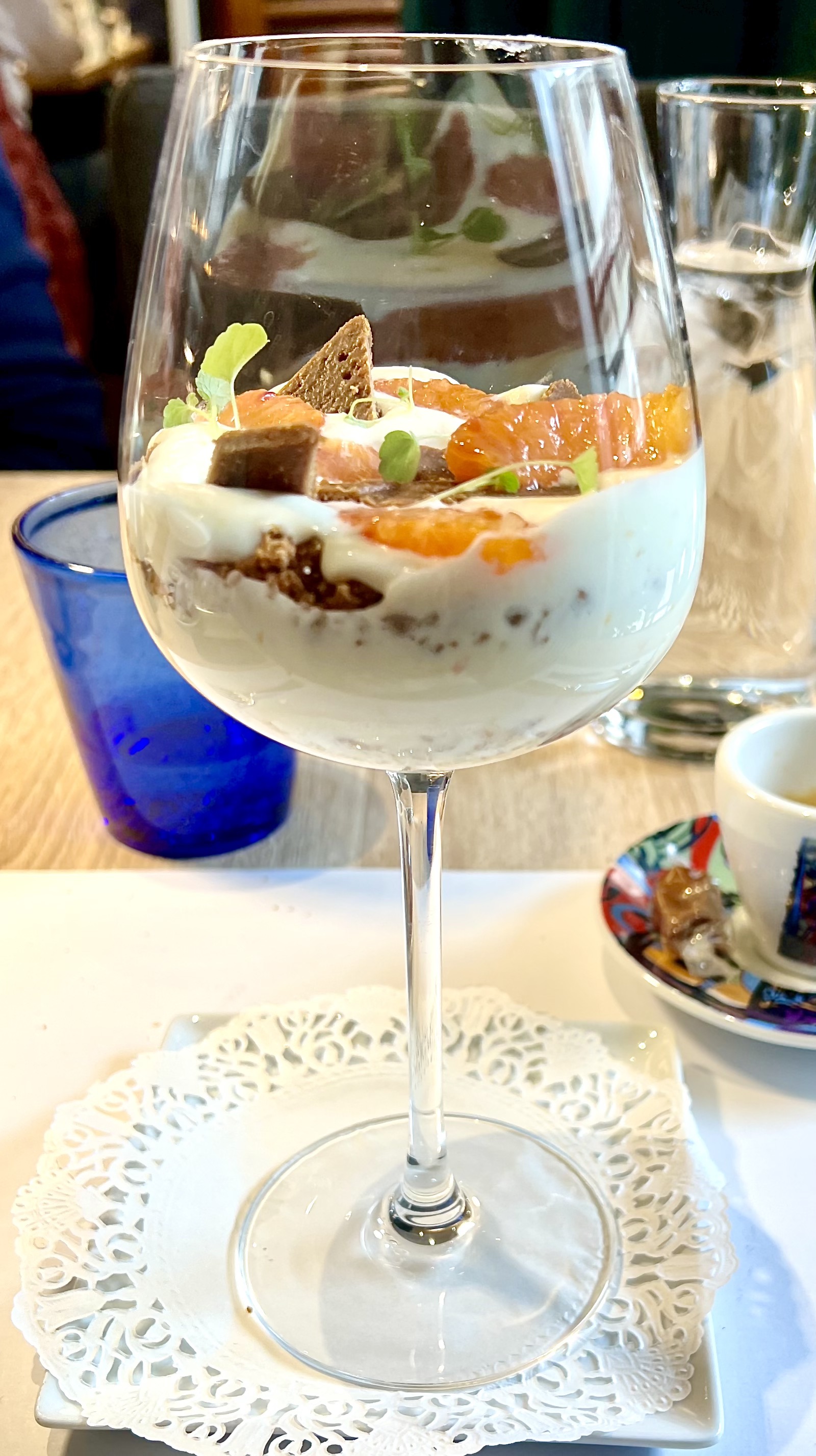 Les amateurs de terre seront satisfait par le choix comme le Lapin Moutarde et Purée maison ou encore le Beau Foie de Veau Tradition. Pour les desserts, on peut compter sur la Vraie Crème Caramel qui dès la première bouchée vous ramène en enfance et vous rappelle l’inimitable crème caramel de mamie, la Pavlova Fruits Exotiques est légère de sa meringue, vivifiante d’exotisme de la mangue et accomplie de la savoureuse glace et le Cheesecake Orange Sanguine se revisite en strates dans son verre à pied où tous les éléments se dégustent d’une cuillère agile.