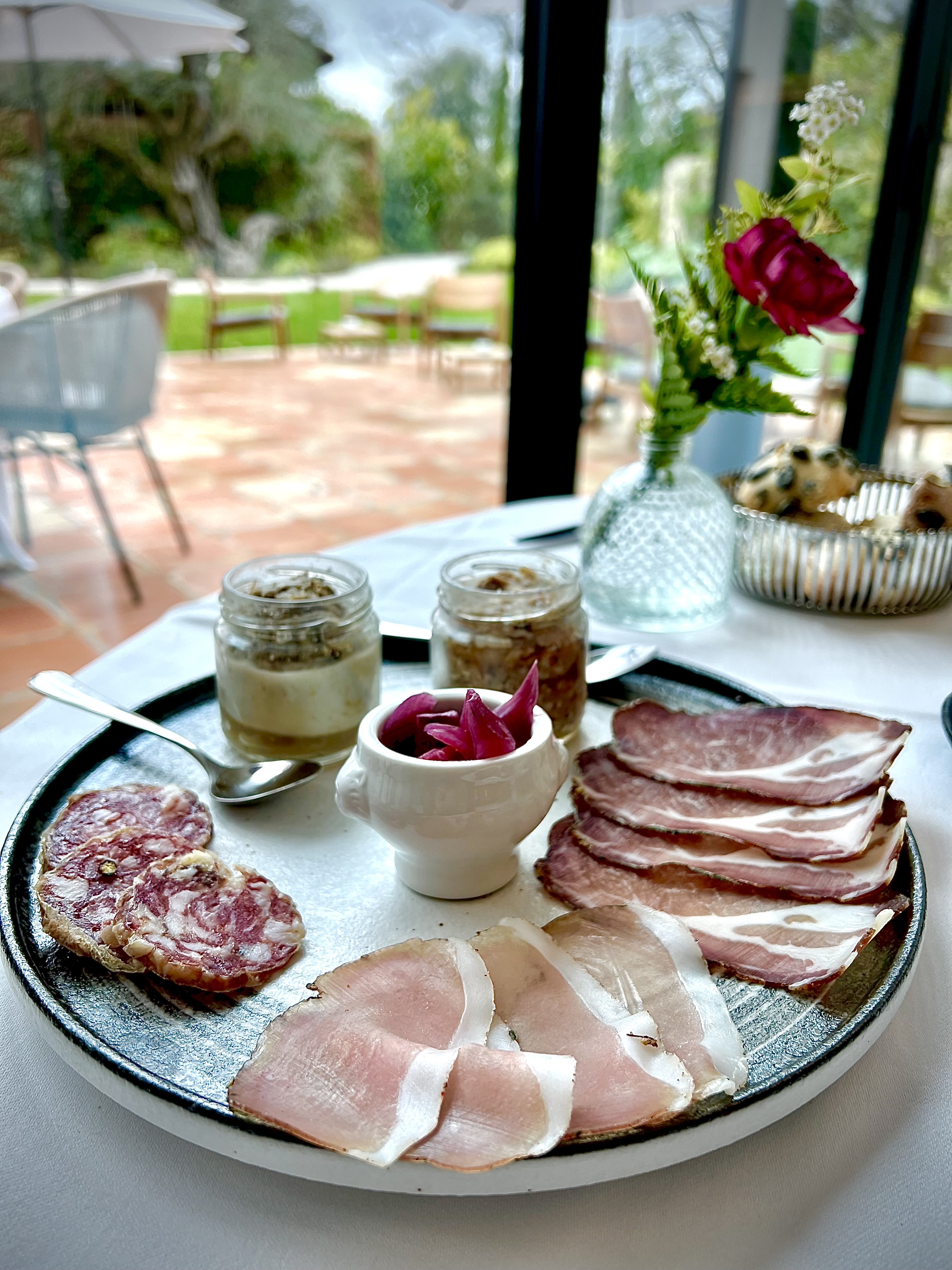 Le chef, qui depuis peu fabrique sa charcuterie, en parle avec délice et amour. Il a travaillé le cochon en entier comme en Corse : échine façon coppa, longe comme un lomo, saucisson maison, fromage de tête et terrine de campagne. Le saucisson et les « jambons » séchés ont encore le moelleux et la texture viande qui fait plaisir, les terrines à la belle mâche s’accompagnent de pain croustillant et d’un intense beurre au lait cru : c’est simplement vrai et jubilatoire.