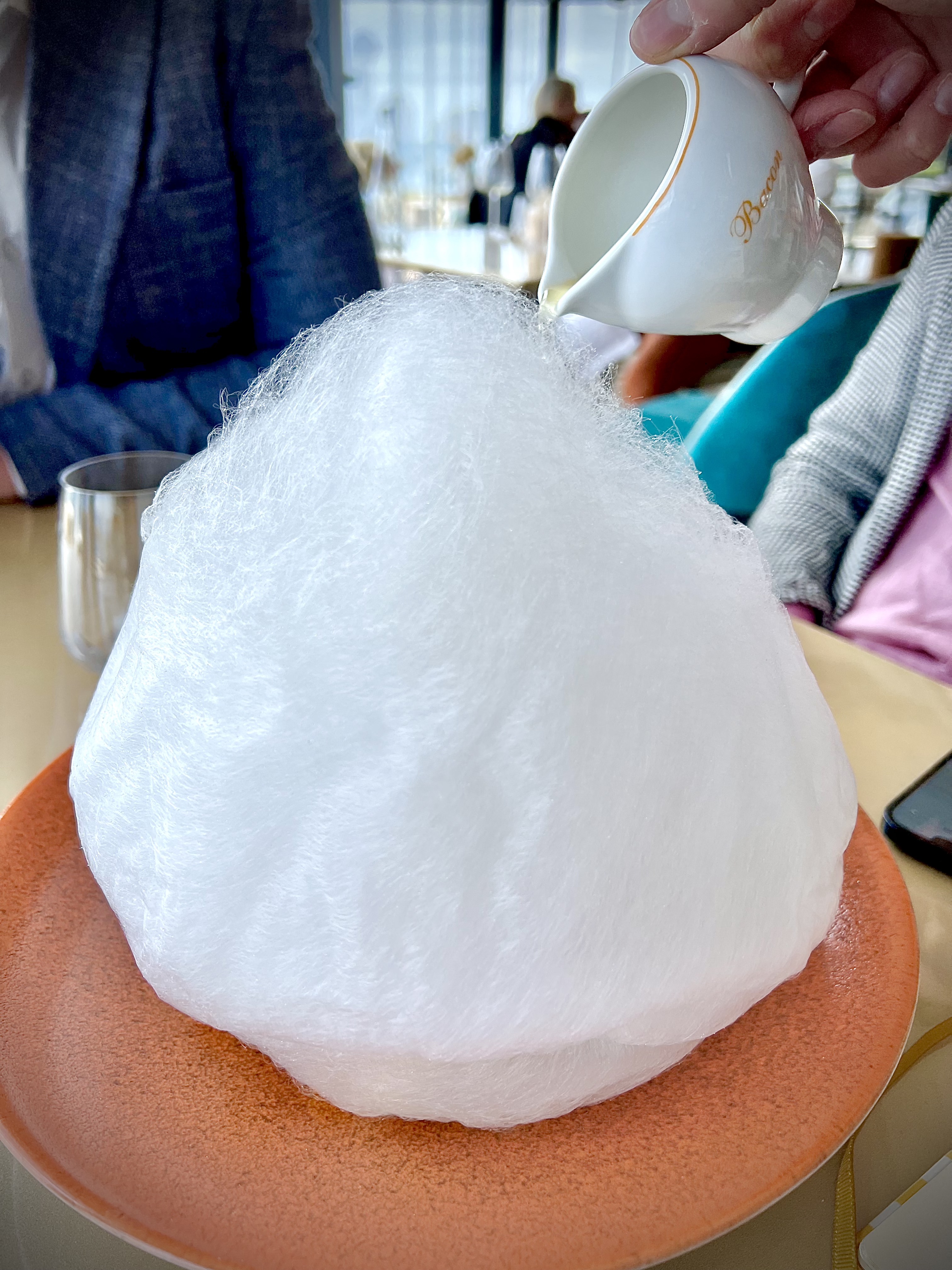 Pour les desserts, le Baba maison, citron Pitacou et agrumes rafraichis au vin d’orange de Bar-sur-Loup, caché de sa légère barbe à papa qui s’envole presque par magie une fois le jus d’agrumes versé, est une valeur sûre qui termine avec enchantement le repas.