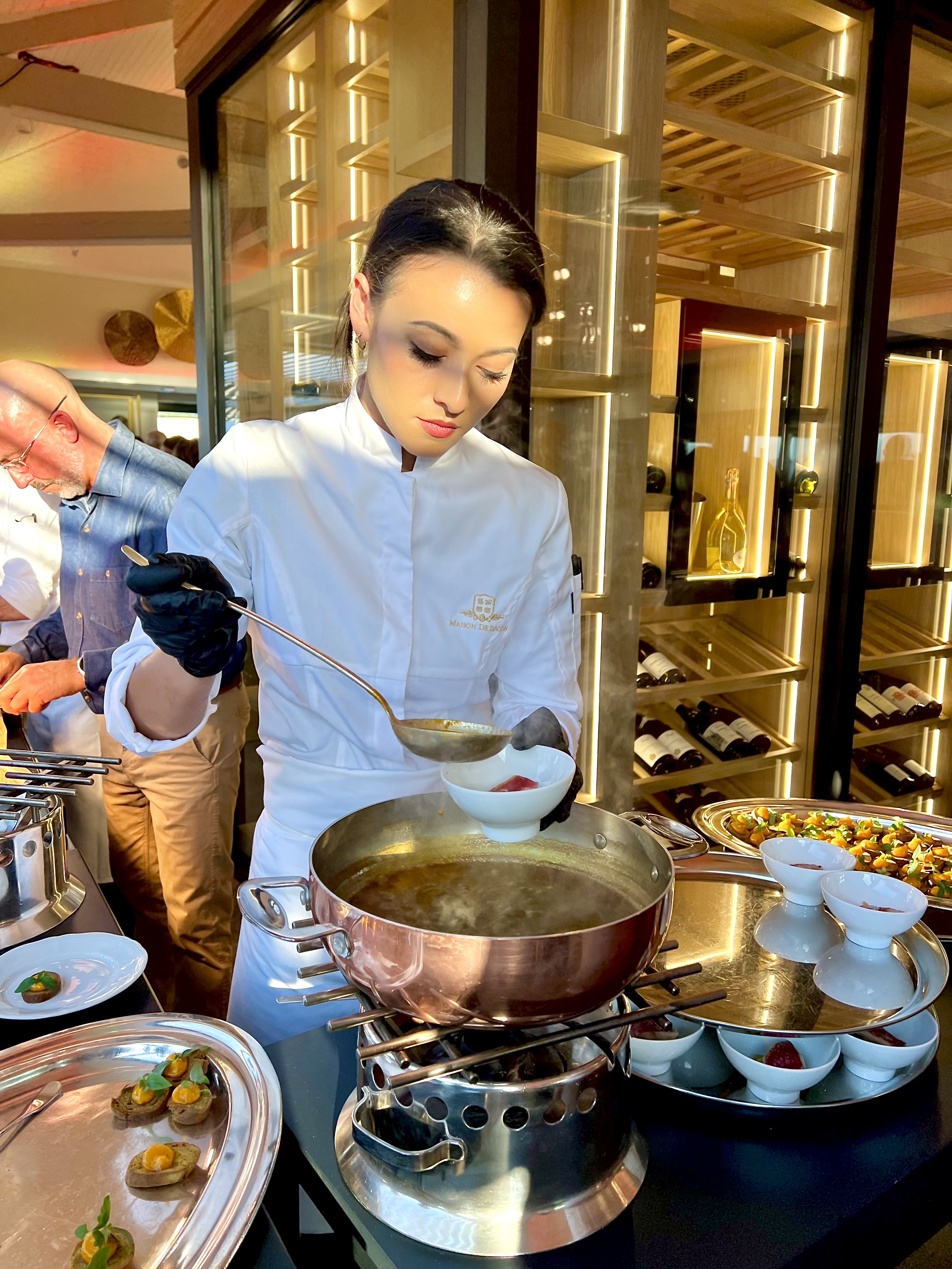 C’est dans cette volonté de continuité dans une belle modernité que Nicolas Davouze (Bocuse d’Or 2014) a été nommé chef exécutif de la Maison de Bacon. Chef au prestigieux parcours, il a travaillé auprès des plus grands et MOF, comme Gilles Goujon, Eric Fréchon et Franck Leroy, Franck Férigutti, sans oublier Pierre Gagnaire. Avant de rejoindre le Cap d’Antibes, il était chef exécutif-adjoint de l’Oasis à La Napoule. Amoureux du terroir, il aime aussi bien travailler les produits d’exception de la mer, que les légumes gorgés de soleil de la région, dans leur propre identité, qu’il condimente d’un twist de fraîcheur ou d’une délicate gourmandise.