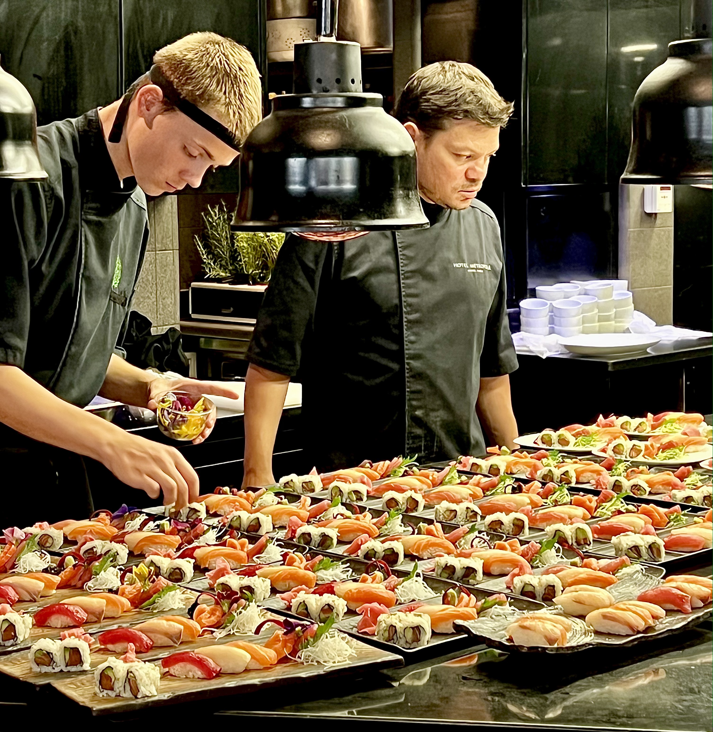 Omakase, qui signifie « je m’en remets à vous », est la façon idéale de se laisser porter par la sélection du chef. Les sushis, sashimis et makis ont la fraîcheur vive du poisson et la délicate tiédeur d’un riz justement condimenté, le tout donne des bouchées enjouées, suaves et Umami.
