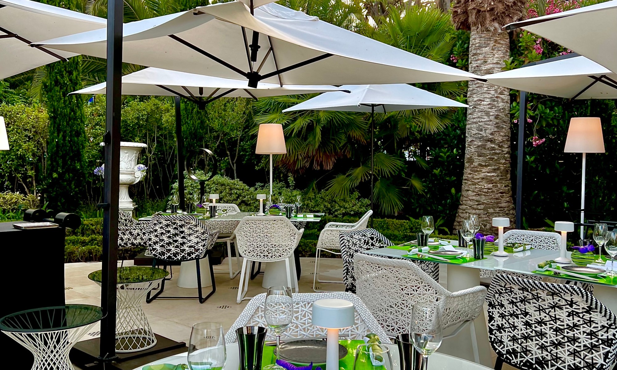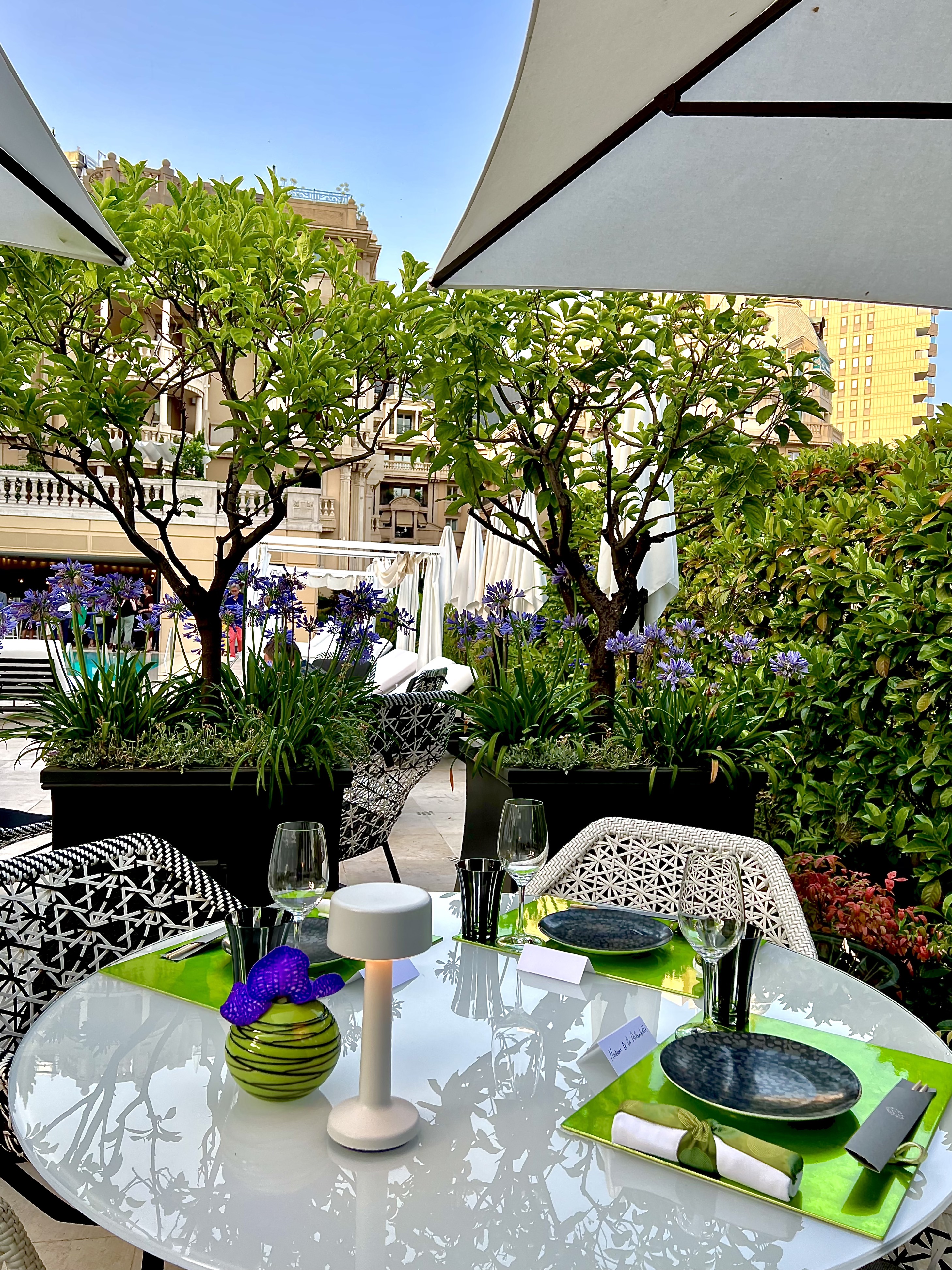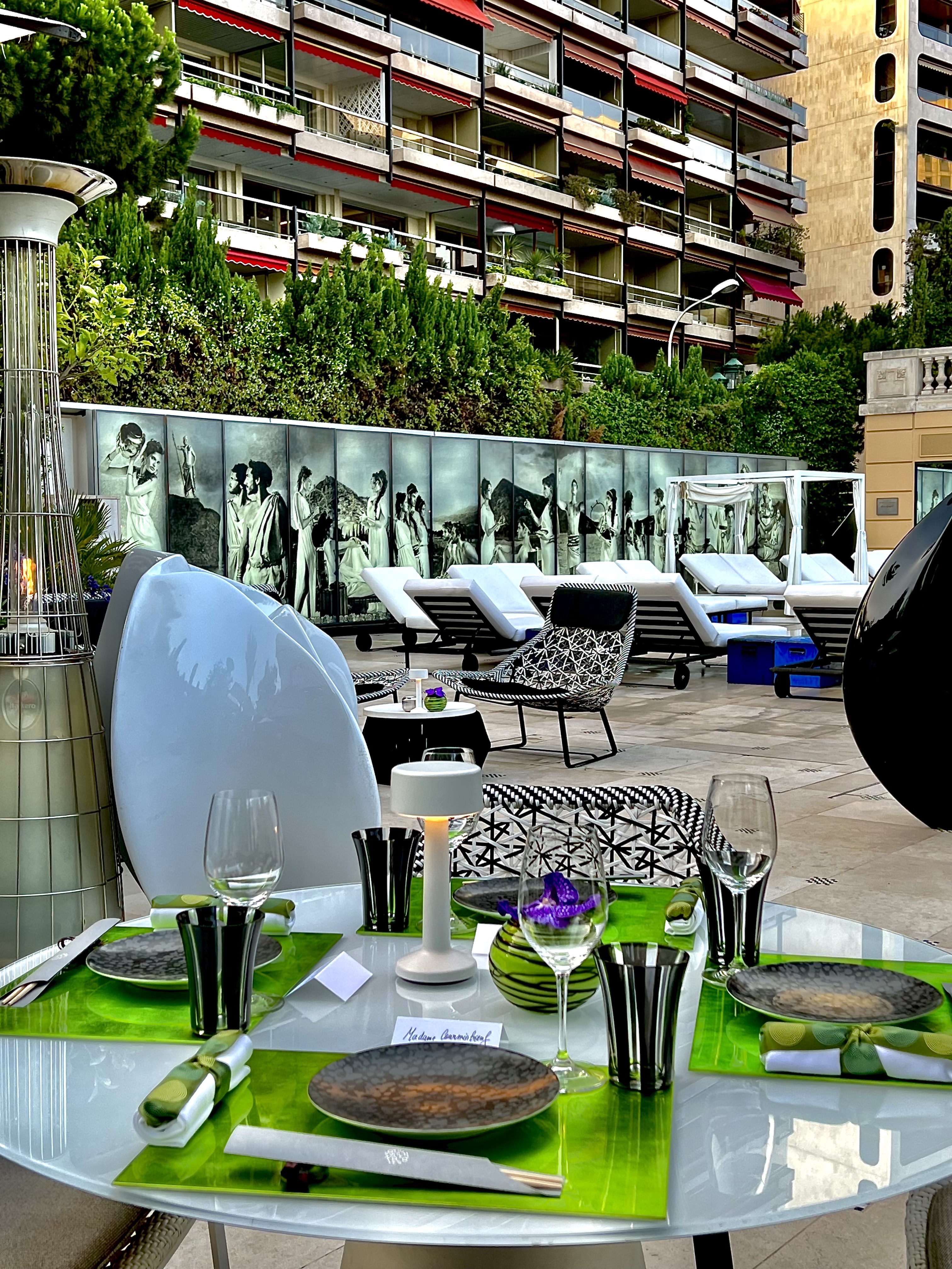 C’est sous les étoiles de la Principauté, aux abords de la scintillante piscine miroir, merveilleusement encadrée par la fresque photographique noir et blanc du Kaiser de la mode et dans les luxuriants jardins aux allures romantiques d’une belle Toscane aux enivrantes effluves méditerranéennes, que vous dégusterez une gastronomie en pureté.