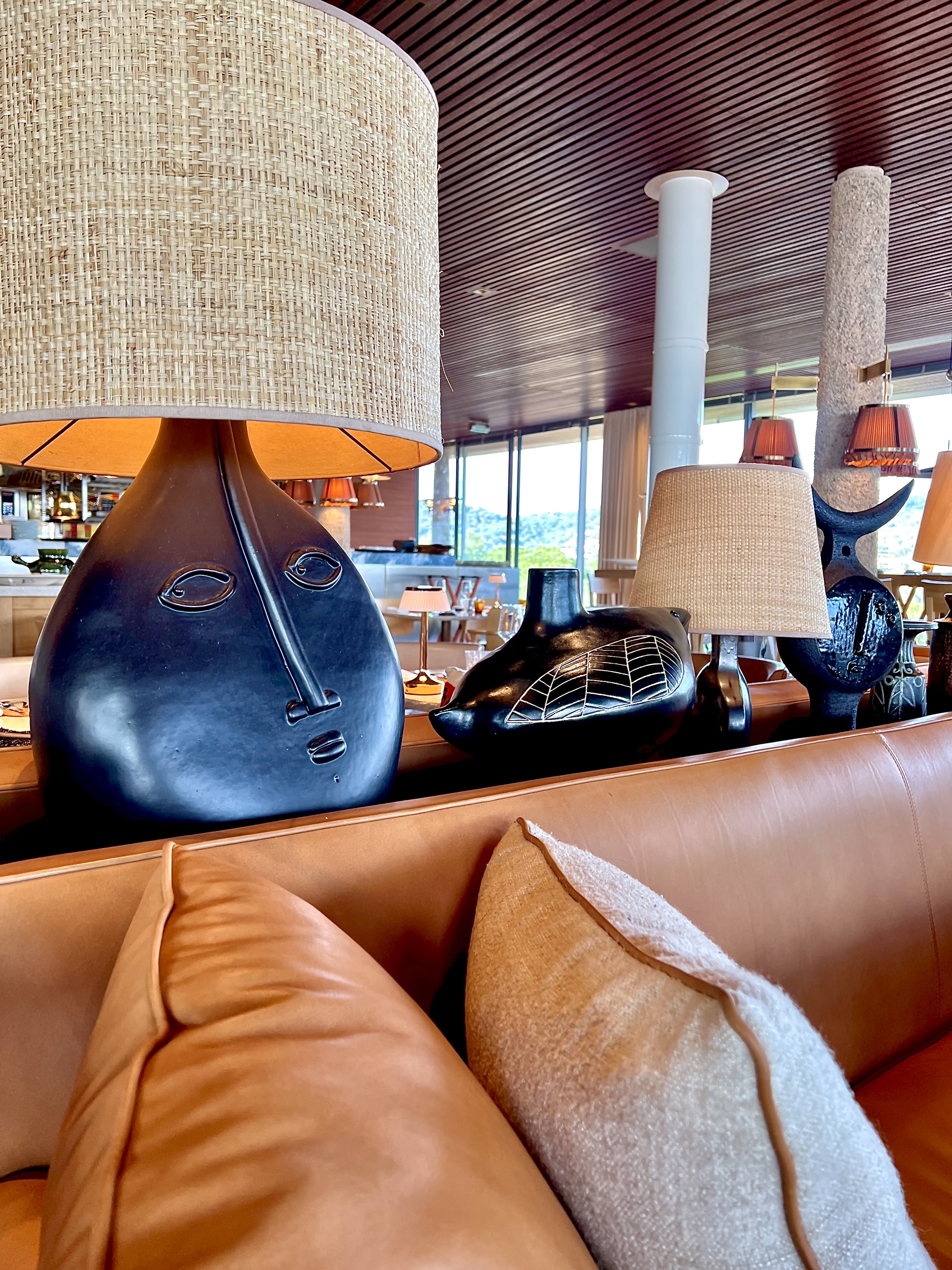 La décoration, confiée à Charles Zana, apporte un véritable esprit nomade, chic et vintage au lieu et rend hommage au patrimoine d’art décoratif provençal avec les bibelots, lampes et tables en céramique ou en verre. Les motifs des tissus rappellent la signature des emblématiques artistes amoureux du Sud, comme Matisse, Calder, Picasso ou encore Chagall; les chambres aux tons clairs et matériaux naturels, comme le bois blond, le lin, la corde et la pierre apportent la fraîcheur, la douceur et la sérénité tant méritées après une chaude journée azur et ensoleillée.