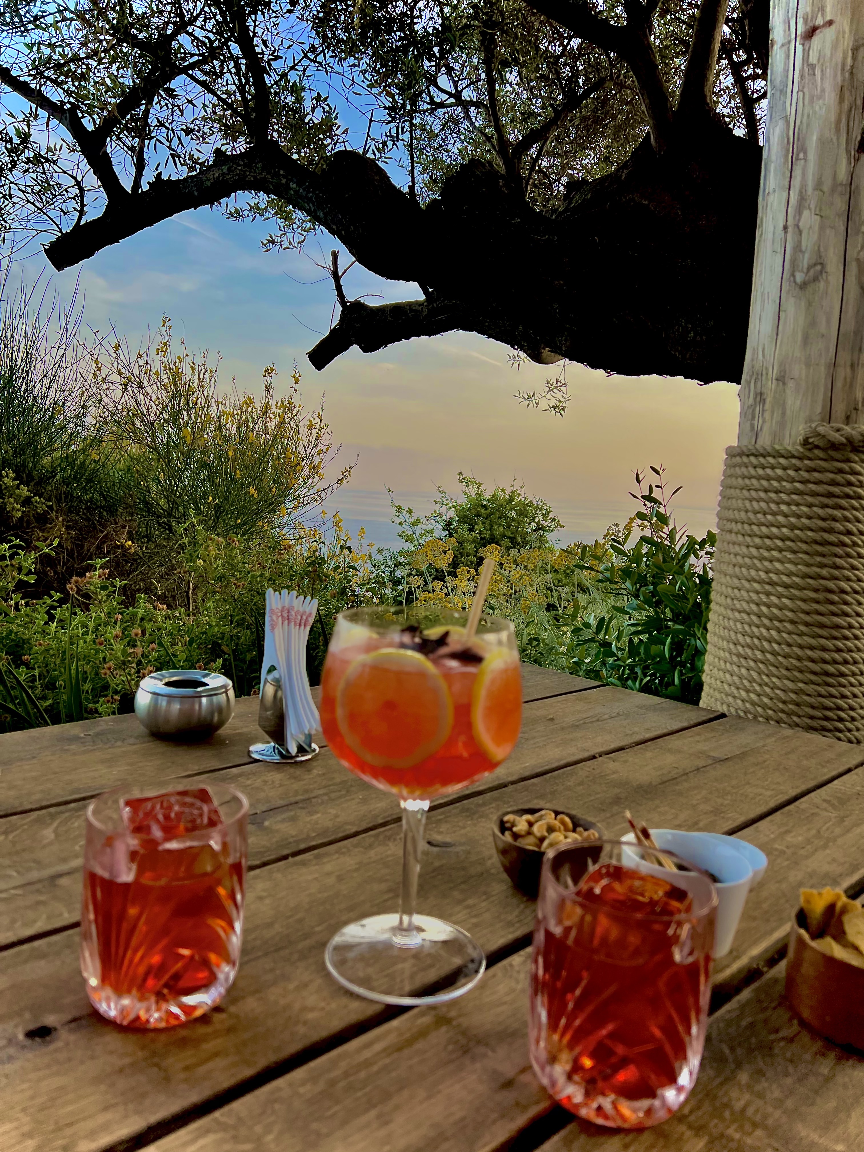 Mais avant de dîner, n’oubliez surtout pas de prendre un cocktail au Bar extérieur pour vibrer aux couleurs d’un ciel rougissant au coucher du soleil, merveilleusement installé sous l’olivier centenaire.
