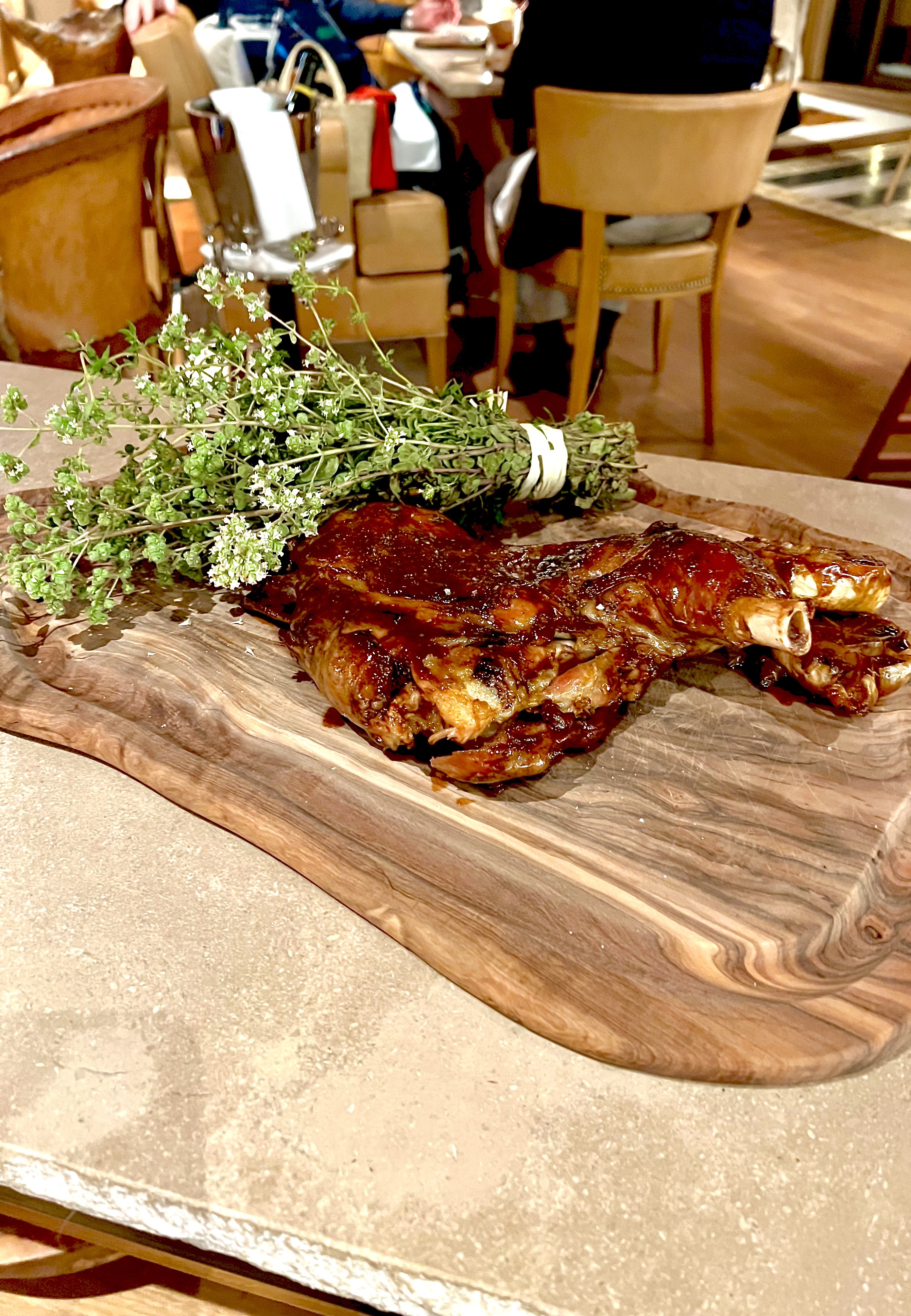 L’Épaule d’agneau de Sisteron braisée à la sarriette est devenue en peu de temps l’incontournable des moments de partage. L’agneau est à la fois fondant, croustillant, moelleux et vibrant, comme laqué par le feu. Il s’empare en intensité des effluves de la garrigue avec la sarriette sauvage.