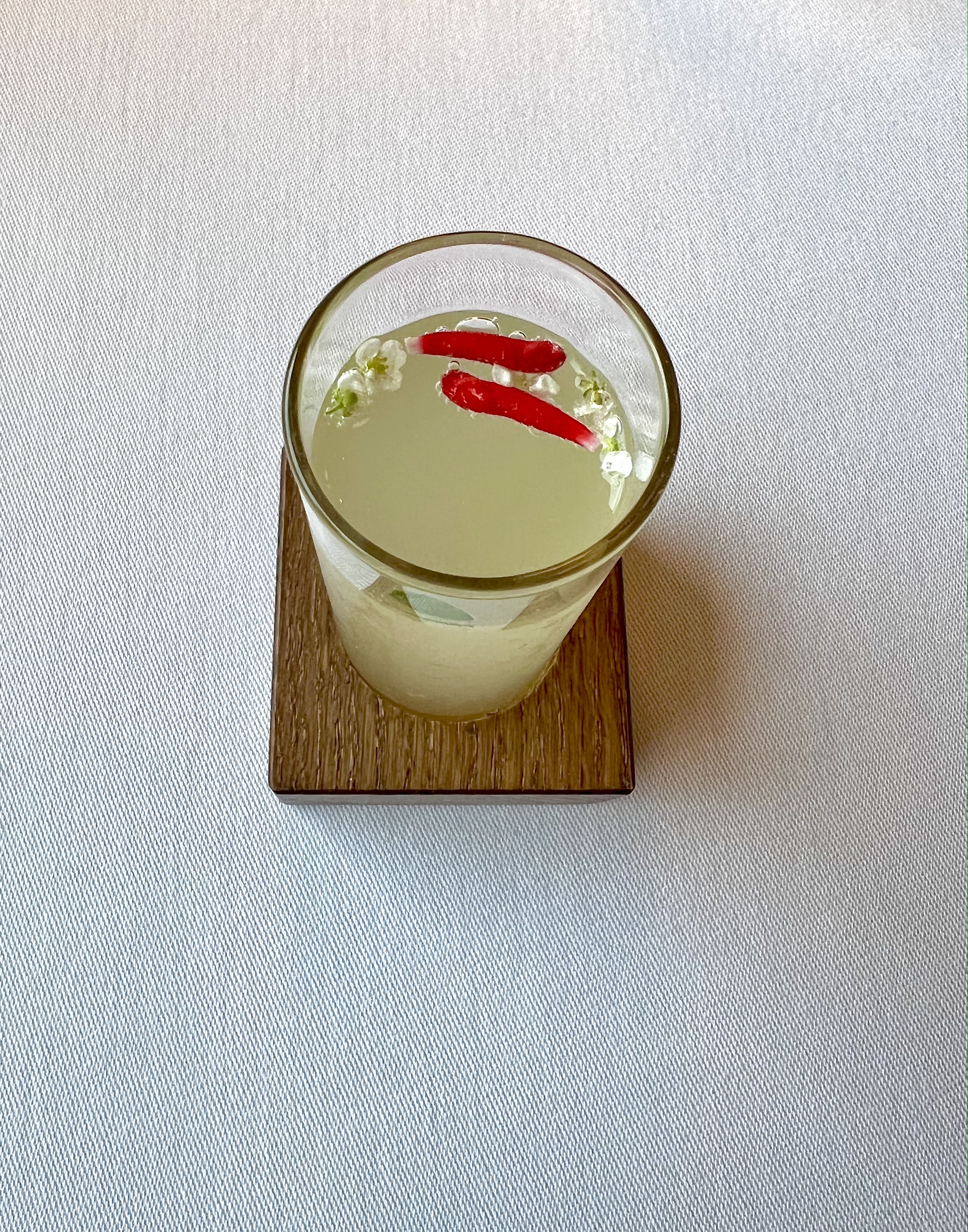 Pour commencer et aviver les papilles, le « shot » de Képhir de fruits (figue et citron, fleur de sureau et sauge ananas) nettoie et met en action le palais.