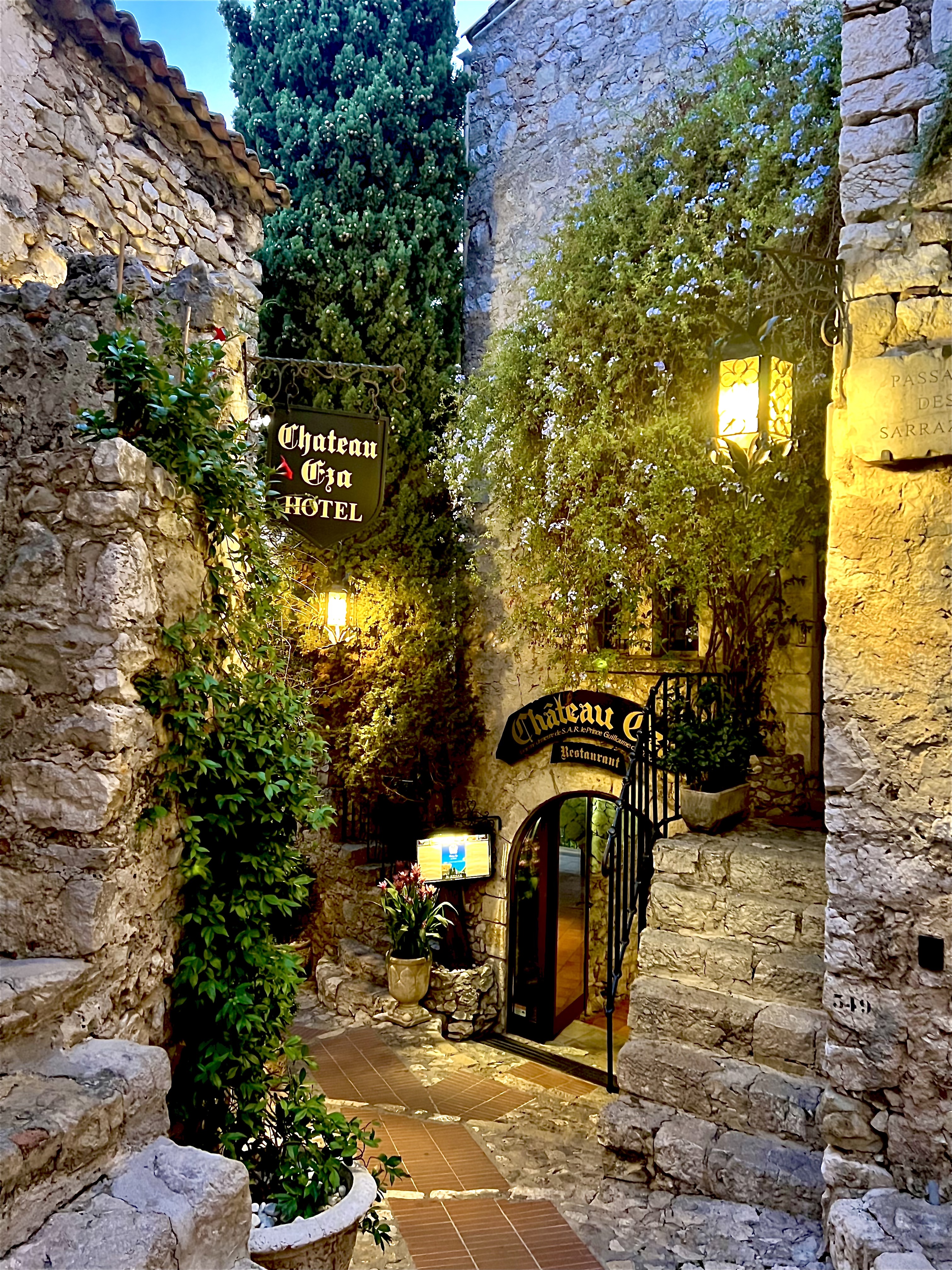 Situé à Eze Village dans l’un des plus beaux et incroyables villages Médiévaux de France, l’établissement, perché à flanc de roche, est tel un nid d’aigle qui domine la Méditerranée à perte de vue. C’est au bout d’un dédale de ruelles grimpantes, étroites et pavées, arborées de maisons seigneuriales qui ont tant de choses à raconter du haut de leurs 400 ans, que vous dénicherez votre refuge de luxe, qui s’offre à vous le temps d’un repas ou d’un séjour inoubliable et hors du temps. Poussez la porte de ce « Château Princier » (ancienne demeure du Prince Guillaume de Suède), descendez les quelques marches en pierres de taille et vous serez accueilli par le très enthousiaste Directeur Adjoint, Sébastien Palet, qui vous fera découvrir les lieux.