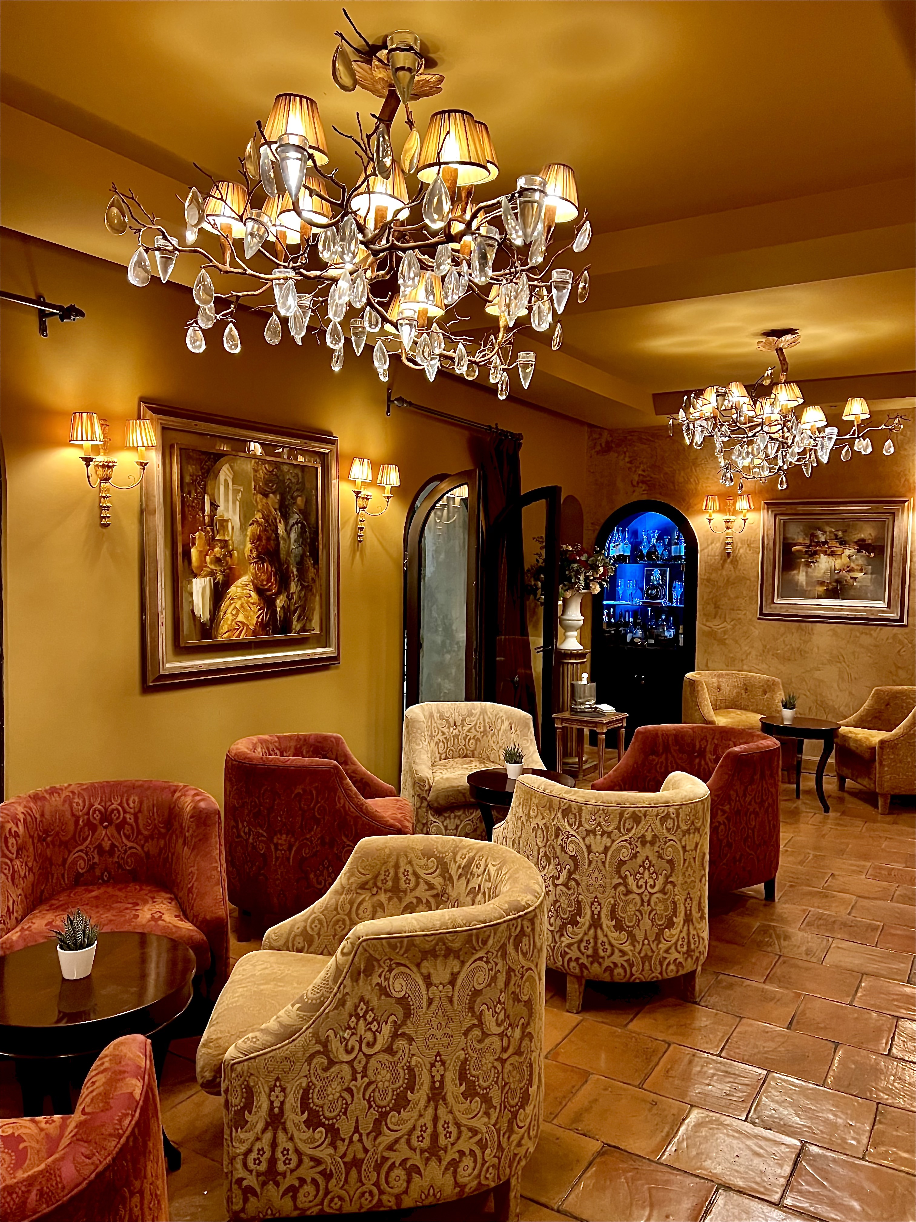 La carte de vins est convenue et attendue pour une clientèle internationale qui aiment les belles étiquettes, mais pour une telle adresse, peut-être justement un peu trop convenue, manquant de références pointues et originales pour faire plaisir aux gastronomes et amateurs.