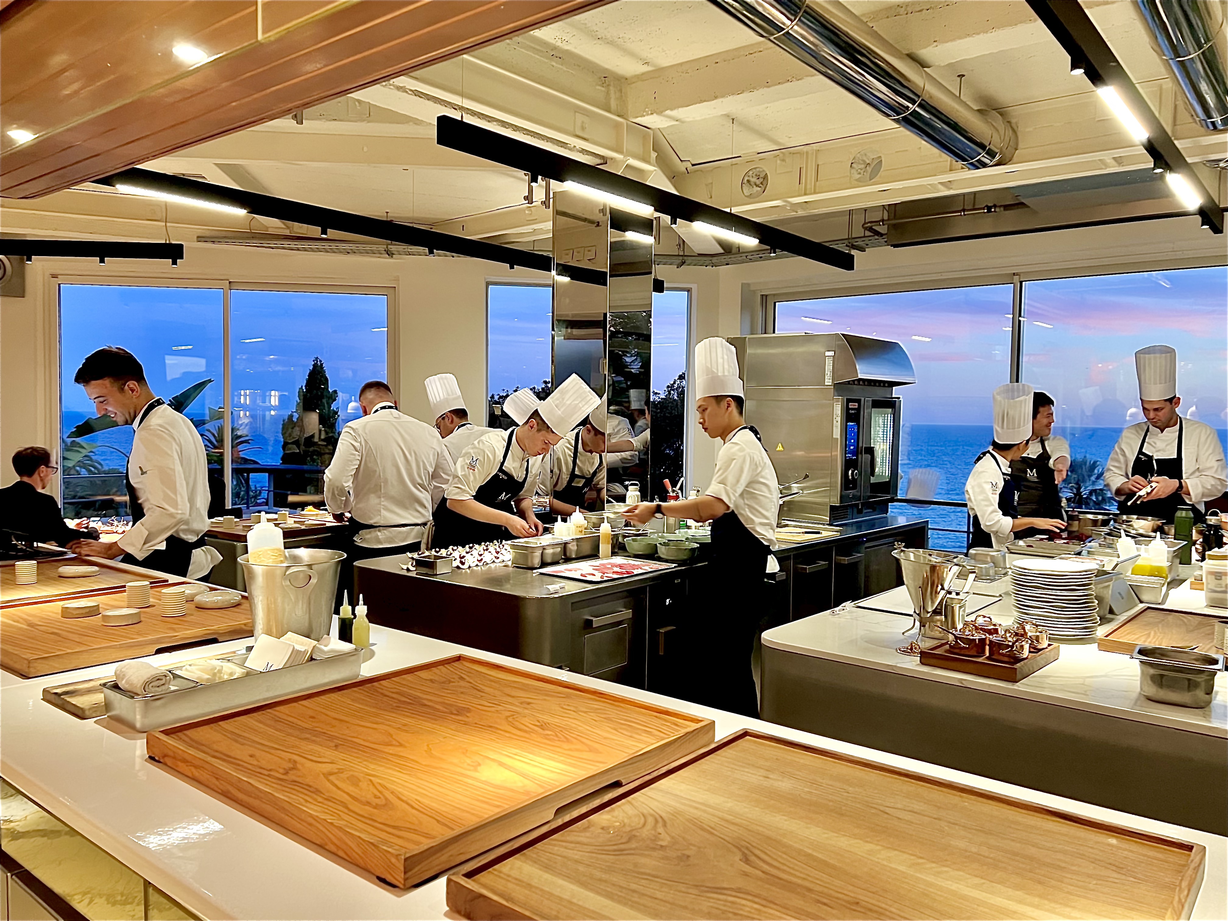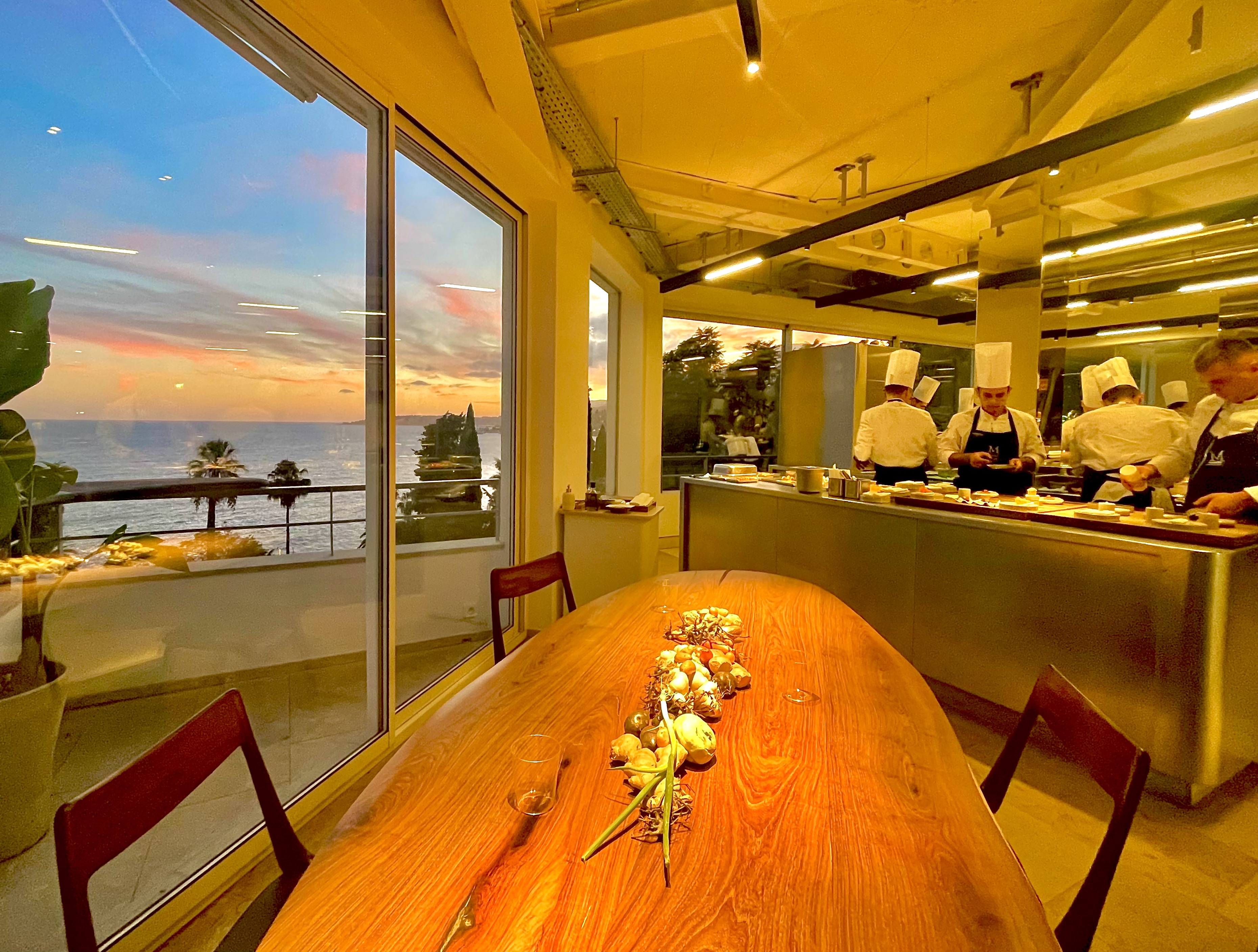 C’est au cœur vibrant du restaurant, dans ces cuisines entièrement repensées et réaménagées, que vous pouvez désormais déjeuner ou dîner, en immersion totale, à la nouvelle Table du Chef (l’une des plus spectaculaires et des plus abouties dans cette catégorie) d’une hypnotique vue balayante à 360°, des pianos et de la brigade en action sur un fond sublimé de la Méditerranée et de la ville de Menton.