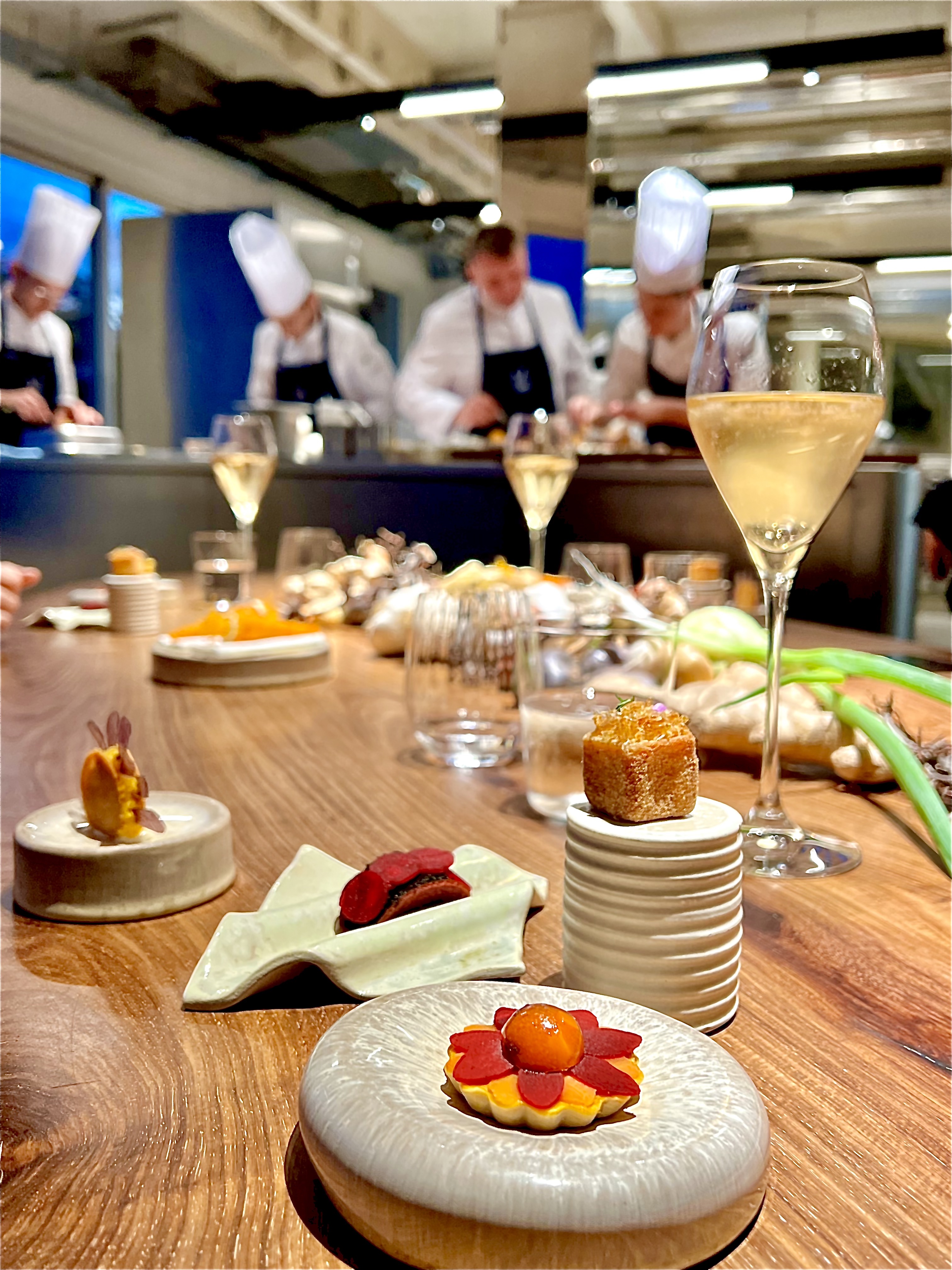Mauro Colagreco s’est entouré de passionnés, de jeunes orfèvres de la gastronomie à l’avenir certain, venant des quatre coins du monde; il a confié les rênes de cette brigade d’exception à Jean-Christophe Bourguignon, qui a été notamment chef « Recherche et Développement » de l’Atelier Crenn*** à San-Francisco pour la très emblématique et charismatique Dominique Crenn (élue meilleure cheffe au monde par World’s 50 Best restaurants et première femme à avoir décroché les trois étoiles au Guide Michelin USA). Pour la partition sucrée, c’est Marius Dufay (Christophe Bacquié, Alain Ducasse, Pierre Gagnaire) qui orchestre brillamment les pertinentes et épatantes douceurs au parfait diapason.