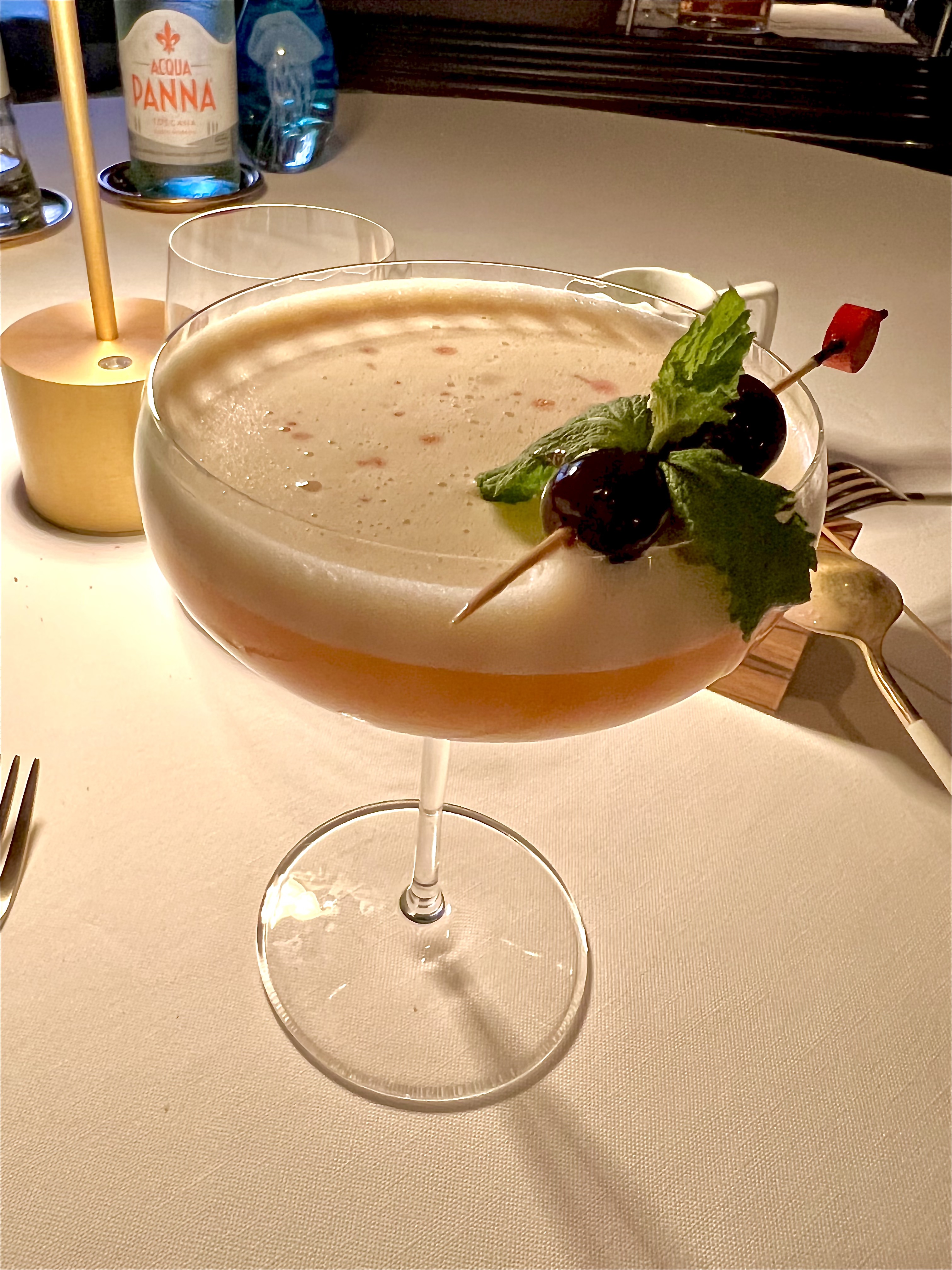 Pour commencer, laissez-vous séduire par le très glamour chariot à cocktail au style années 50 pour découvrir la subtile création du jeune et souriant Kairo qui vous explique sa recette, avec passion et sincère pudeur, à base de Gin de Sardaigne, de liqueur d’orange, de poivre rare et de romarin.
