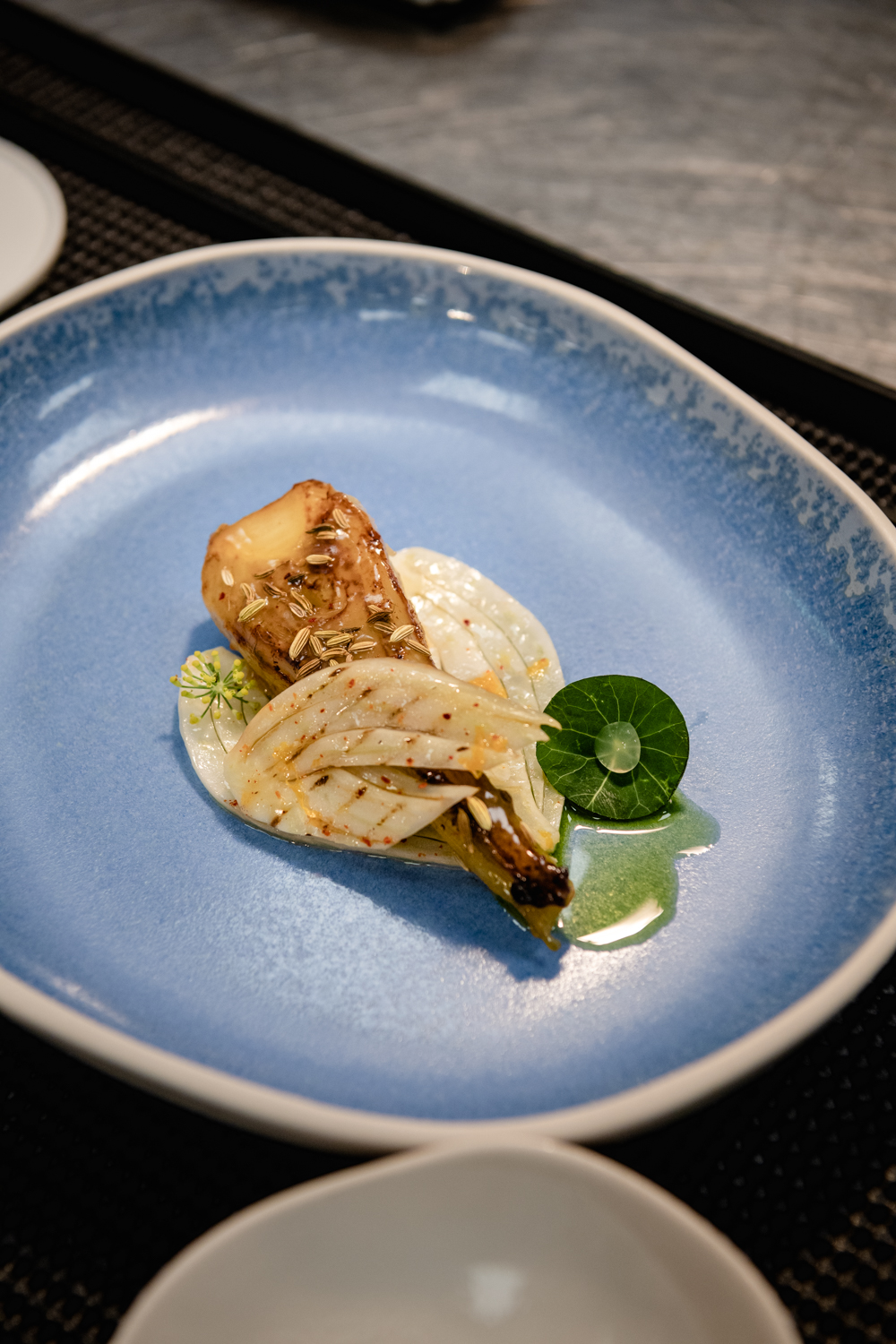 Sa cuisine est un savant mélange de ses racines bourguignonnes qui lui ont donné l’amour des produits d’exception, du vrai, et d’une identité, qui se porte par passion vers la Méditerranée et la Provence, de ses intenses saveurs gorgées de soleil des légumes et des fruits du riche terroir local entre terre et mer. Une cuisine entre force et délicatesse où le produit est respecté et sublimé à son essentiel. C’est un véritable hommage à ces hommes et femmes qui travaillent la terre, ces pêcheurs et éleveurs au savoir-faire unique, avec les deux menus que le Chef a imaginé « Expression Végétale » où le légume est le centre de l’assiette, épaulé en caractère et subtilité par une protéine animale ou marine et également le menu « Expression Marine » dédié aux richesses de la mer.