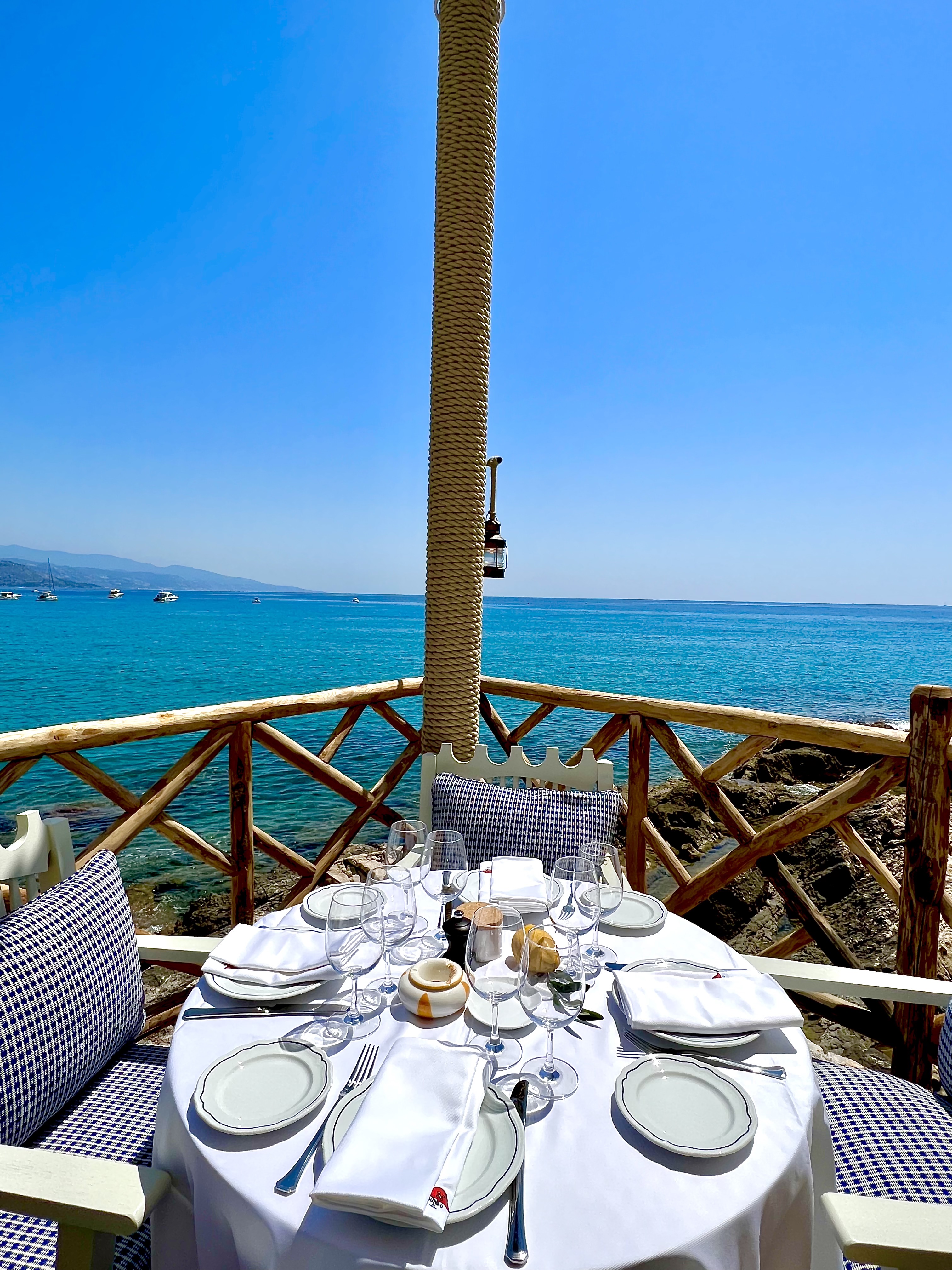 La journée, l’ambiance est enjouée et bon enfant et peut se prolonger sur la plage et ses quelques transats. Le soir, elle est aussi bien romantique et chic que dynamique et familiale, avec un groupe de chanteurs en acoustique qui est en parfait écho du ressac de la mer si proche.