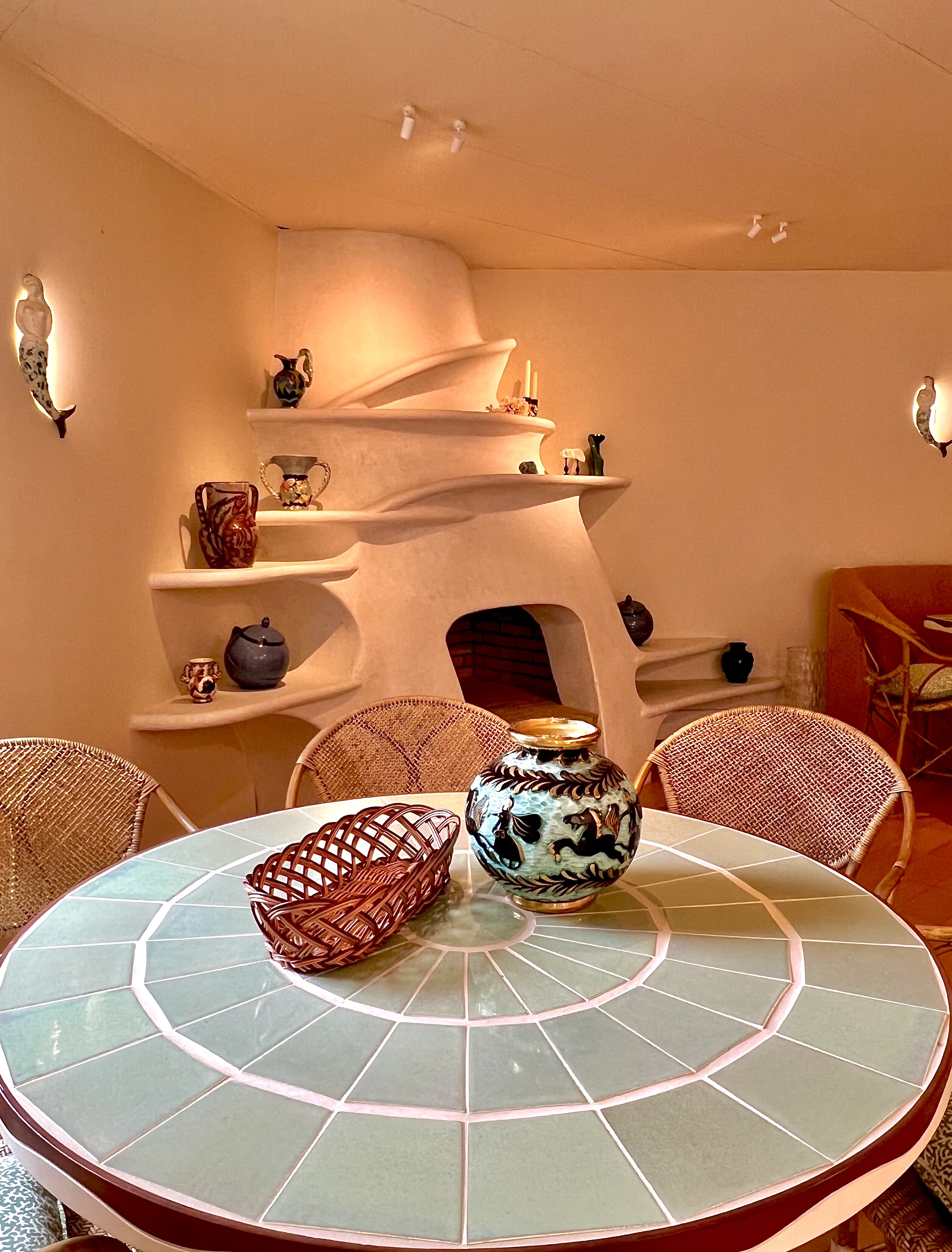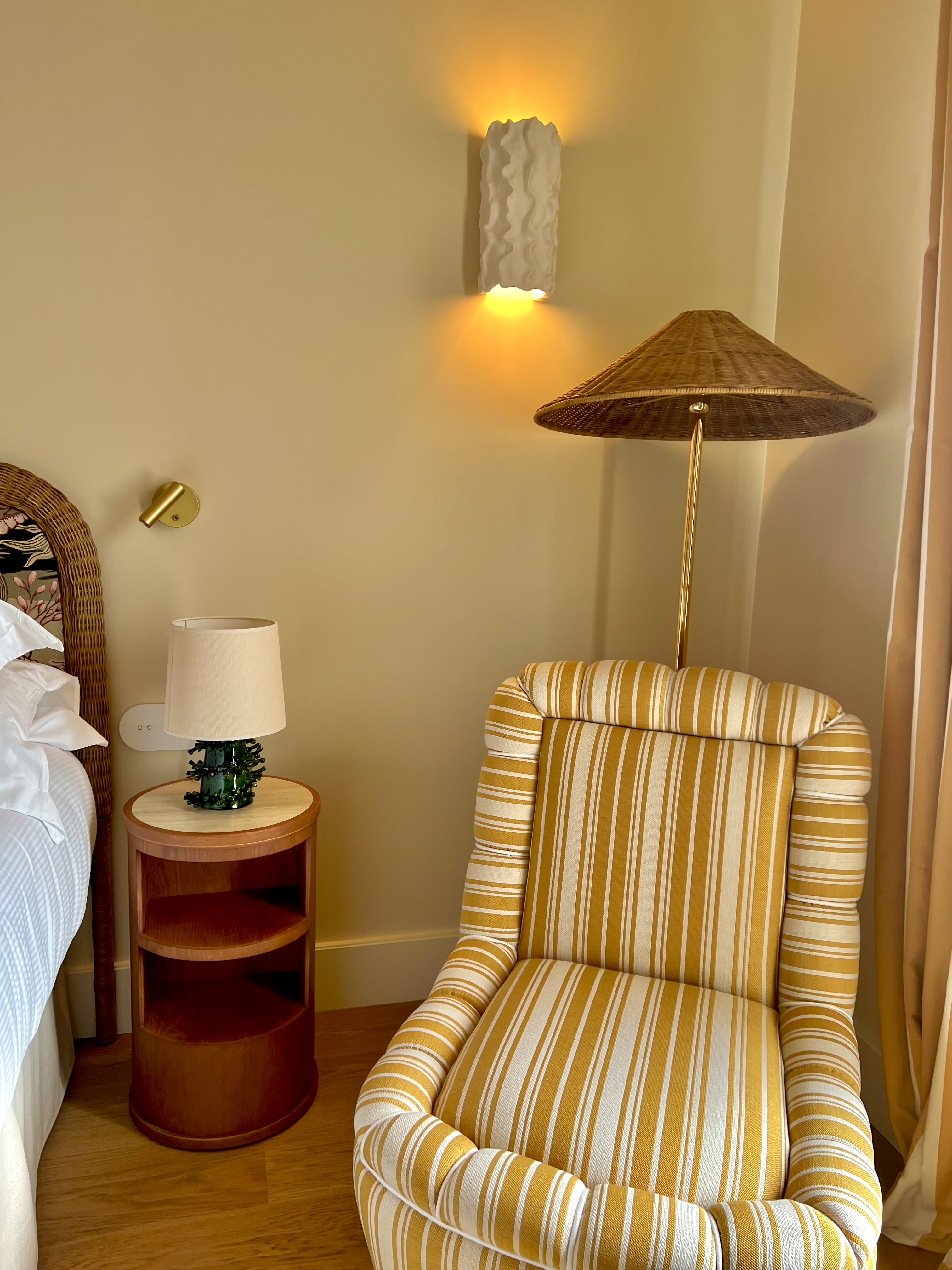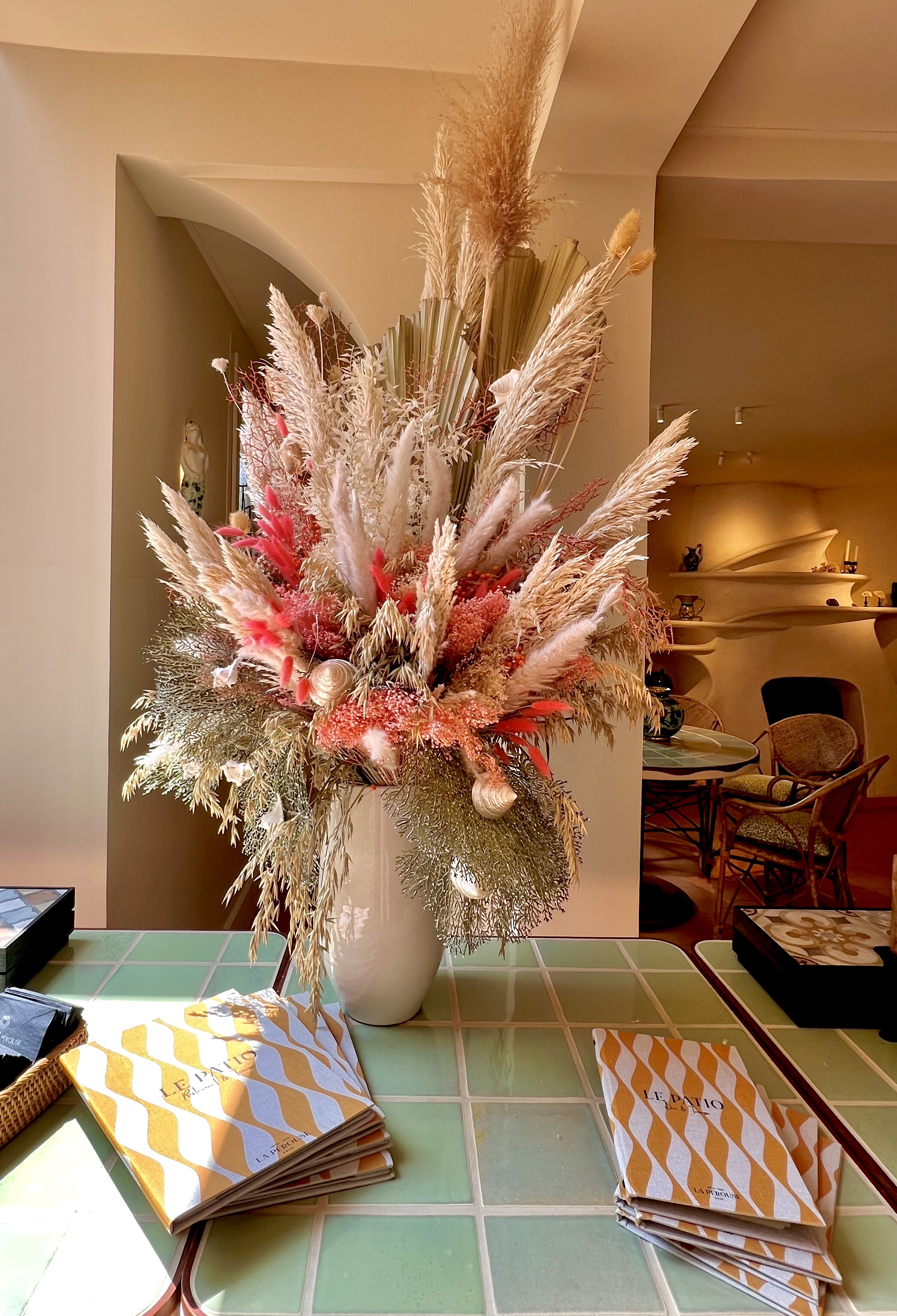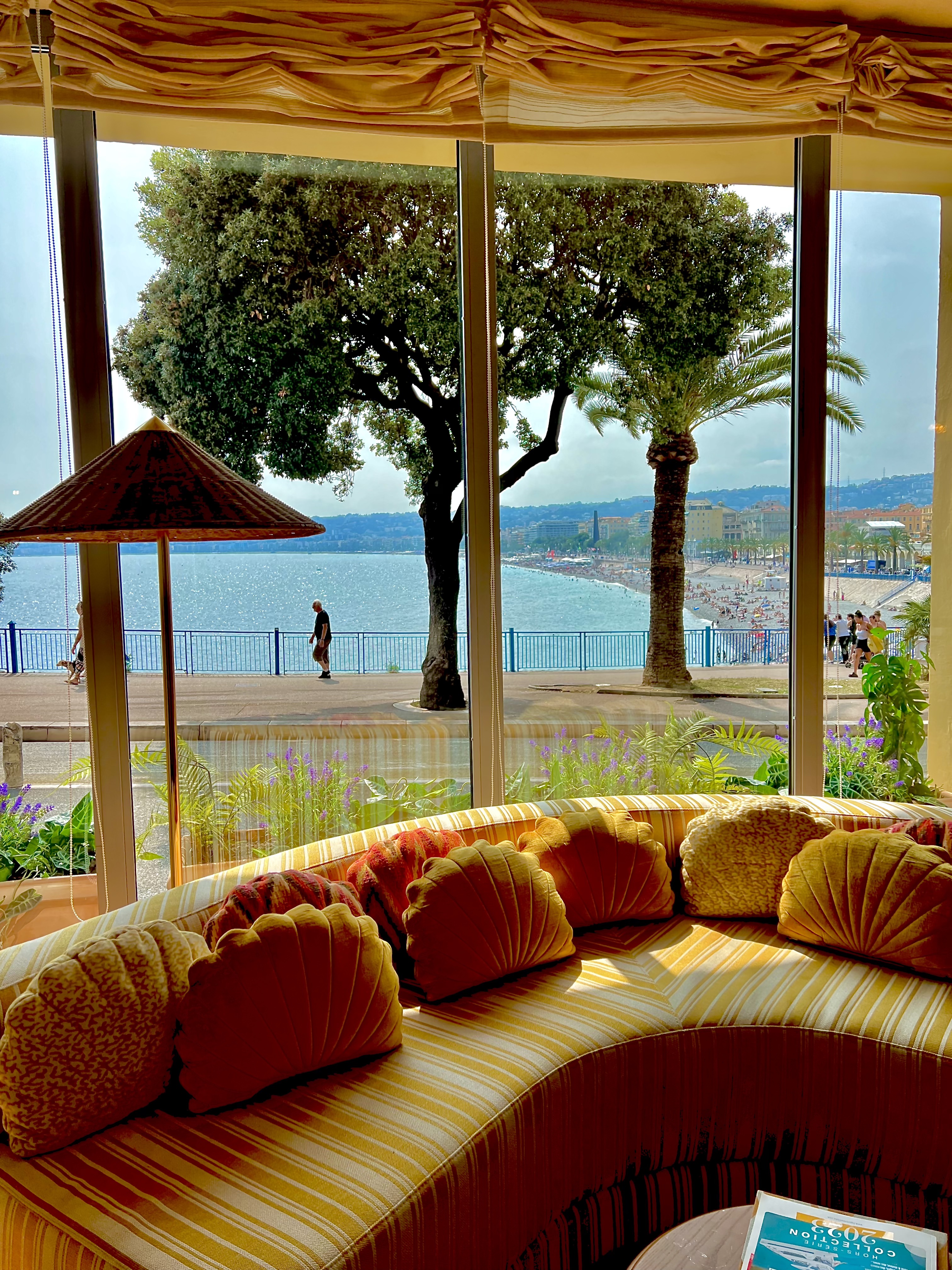 l’Hôtel La Pérouse Nice, qui est à la fois le plus confidentiel et le plus exposé de Nice, se dévoile entièrement réenchanté par le studio parisien Friedmann & Versace (Virginie Friedmann et Delphine Versace à qui l’on doit notamment les univers du restaurant MoSuke du Chef Mory Sacko, et des établissements tendances italiens Gruppomimo à Paris…). C’est dans une vibrante personnalité enjouée, mêlée de l’esprit de l’âge d’or arty de la Riviera et de l’école de Vallauris, entre céramiques, tapisseries aux coloris marqués et acidulés et courbes généreuses, que le duo de décoratrices a théâtralisé les lieux … Picasso, Capron, Cocteau ou Léger ne sont pas si loin.