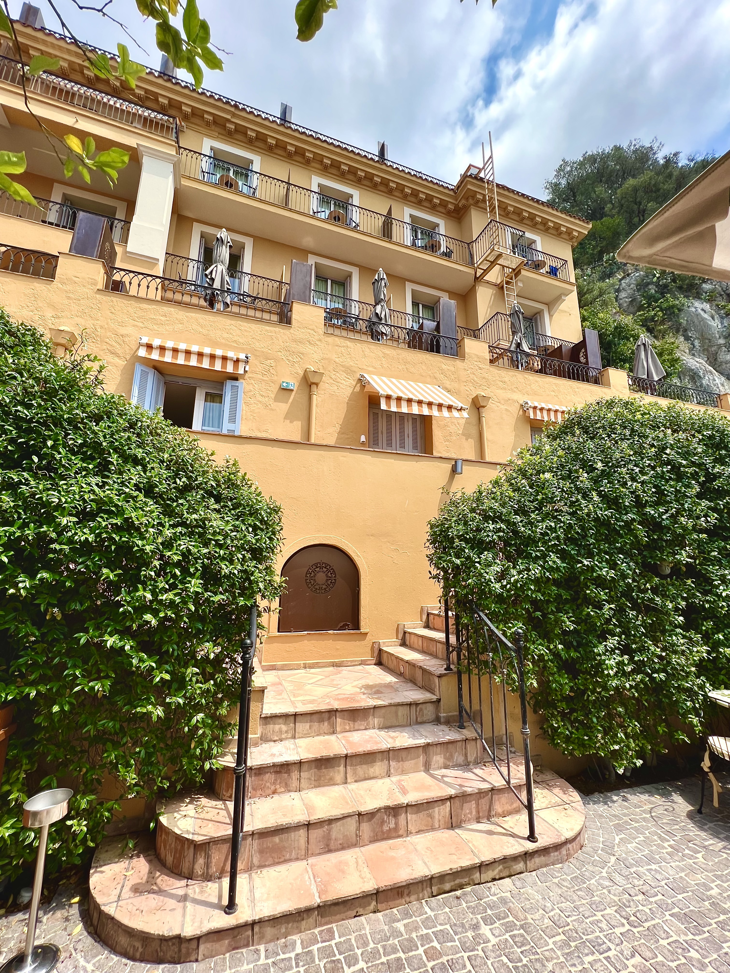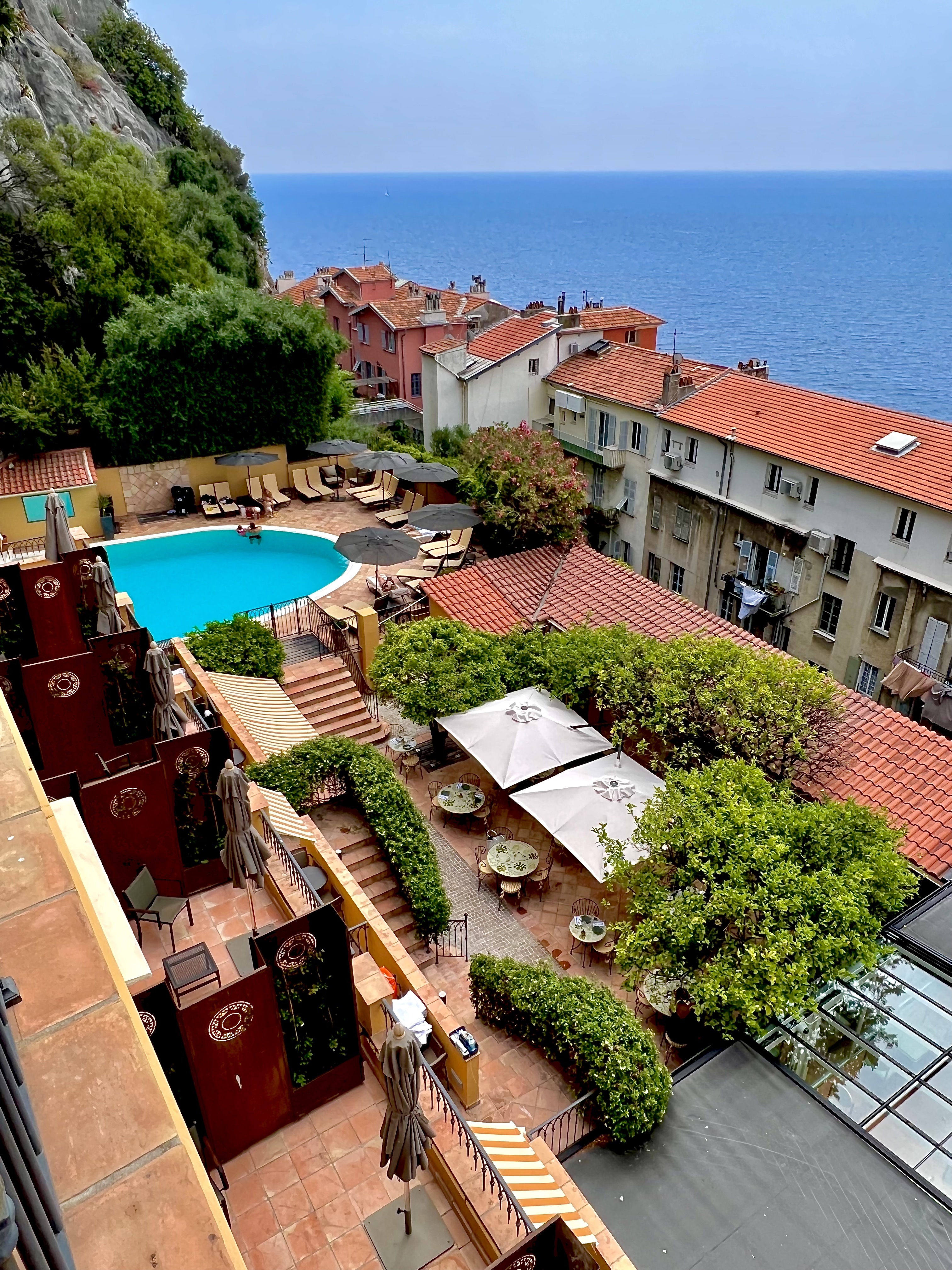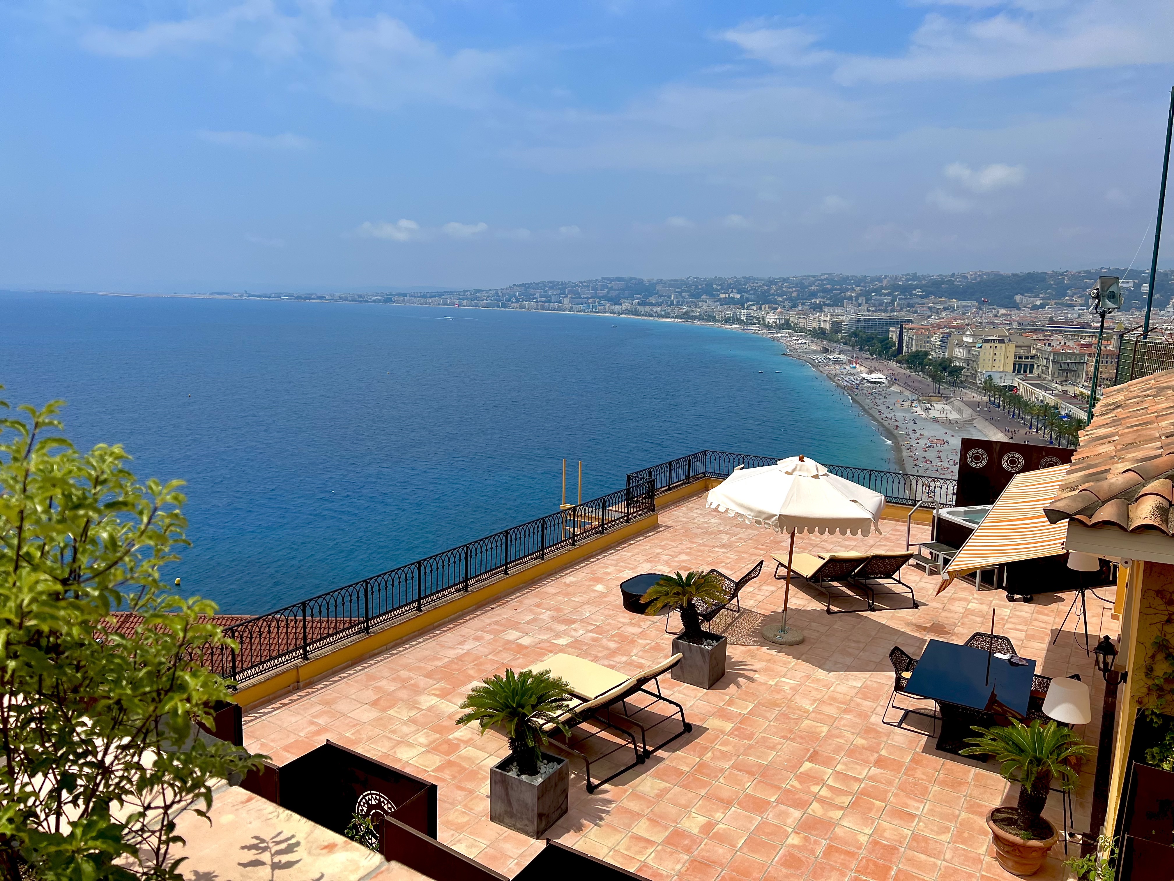 Ce boutique hôtel, faisant partie des Small Luxury Hotels of the World et qui a la discrétion d’un speakeasy, semble dominer toute la belle Baie des Anges par une façade ocre et or qui ne lui appartient pourtant pas, les chambres, balcons et terrasses panoramiques se dissimulent bien au delà des apparences, lovés contre la colline du château avec une vue en vigie de la Méditerranée et de la vieille ville. Seule une entrée presque dissimulée et une enseigne des plus discrètes vous invitent à découvrir ce paradis préservé et si unique en plein cœur de Nice.
