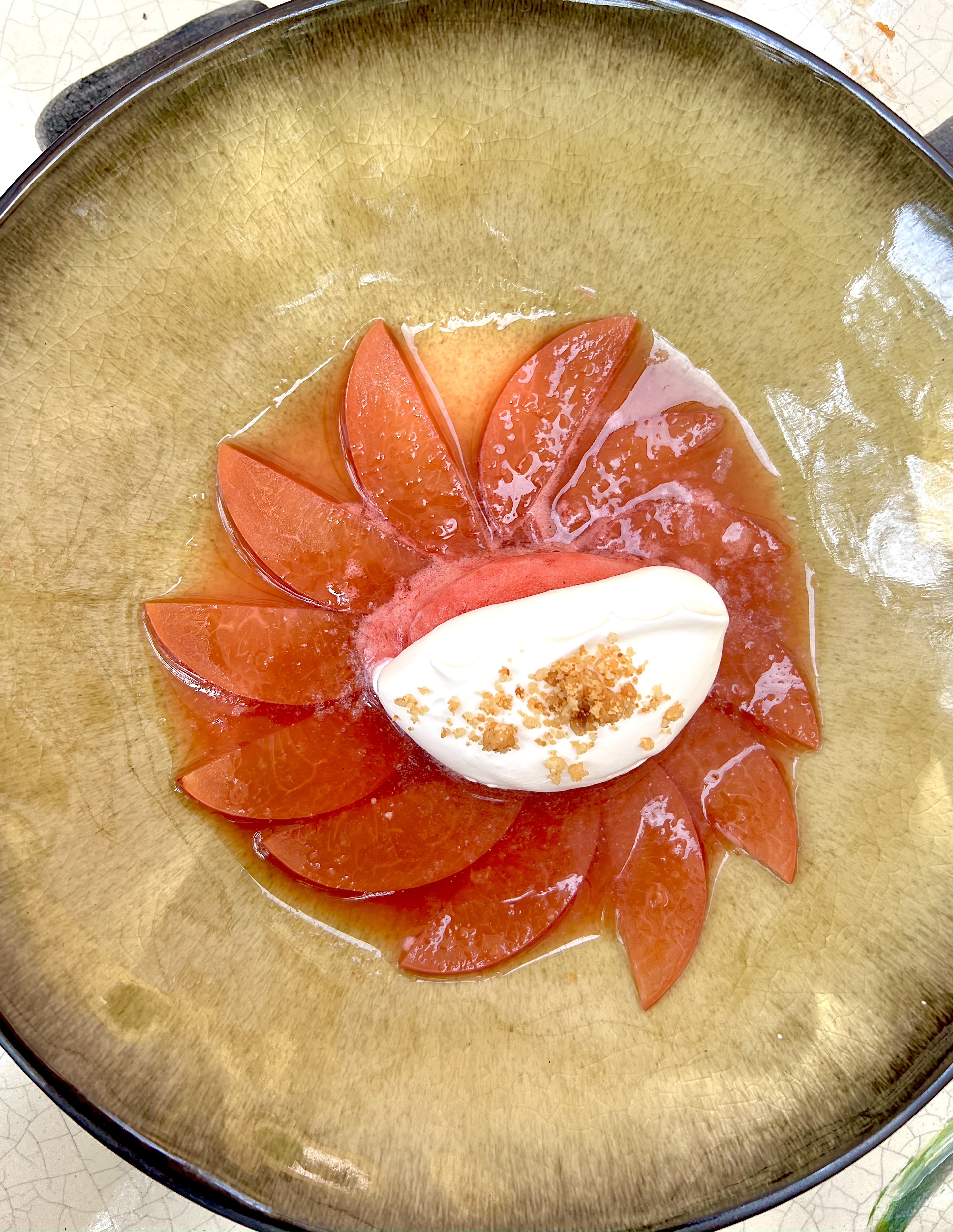 Les douceurs virevoltent entre la fraîcheur douce des fruits comme la Pêche jaune pochée à l’anis et à l’orange, sorbet fraise, crémeux vodka ou la craquante gourmandise du Big crinkle au chocolat et noisettes, glace vanille.