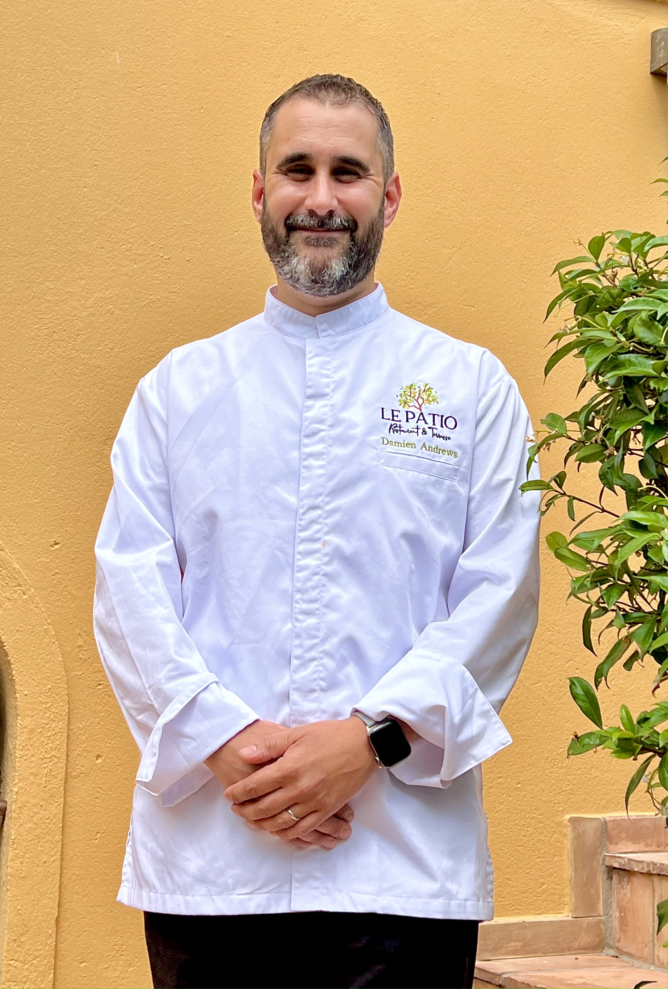 Les déjeuners et les dîners se font mémorables et abrités sous les bienveillants citronniers centenaires et les luxuriants jasmins odorants, vous dégusterez la cuisine méditerranéenne, ensoleillée et idéalement savoureuse du nouveau Chef Damien Andrews. Ce sincère disciple d’Escoffier a fait une partie de sa carrière auprès de l’emblématique chef étoilé Patrick Raingeard. Après un passage rapide à Bonfinger Paris et à la brasserie Flo de Nice, il rencontre son mentor en 2003, qui est alors à la tête du très tendance Zebra Square de Monaco. Puis, il travaille un temps dans les cuisines fusions Japonaise et Thaï du Maya Bay. Il retrouve Patrick Raingeard au Port Palace, toujours à Monaco, au restaurant Le Mandarine*, d’abord en tant que Chef de Partie, puis en tant que Second. Il suit le Chef au luxueux et confidentiel Cap Estel à Èze-Bord-de-Mer pour créér La Table de Patrick Raingeard*, il est alors son Sous-chef. Pour son premier poste de chef exécutif, Damien Andrews propose au Patio des assiettes qui racontent tout son amour des produits du pays niçois et de la pêche locale, les intitulés résonnent de la clameur des marchés, comme le pois chiche, l’artichaut violet, la courgette trompette, le calamar ou encore le rouget, sans oublier l’agneau et les épices « d’aqui d’aia »…. c’est à la fois simple et complexe, juste et plaisant.