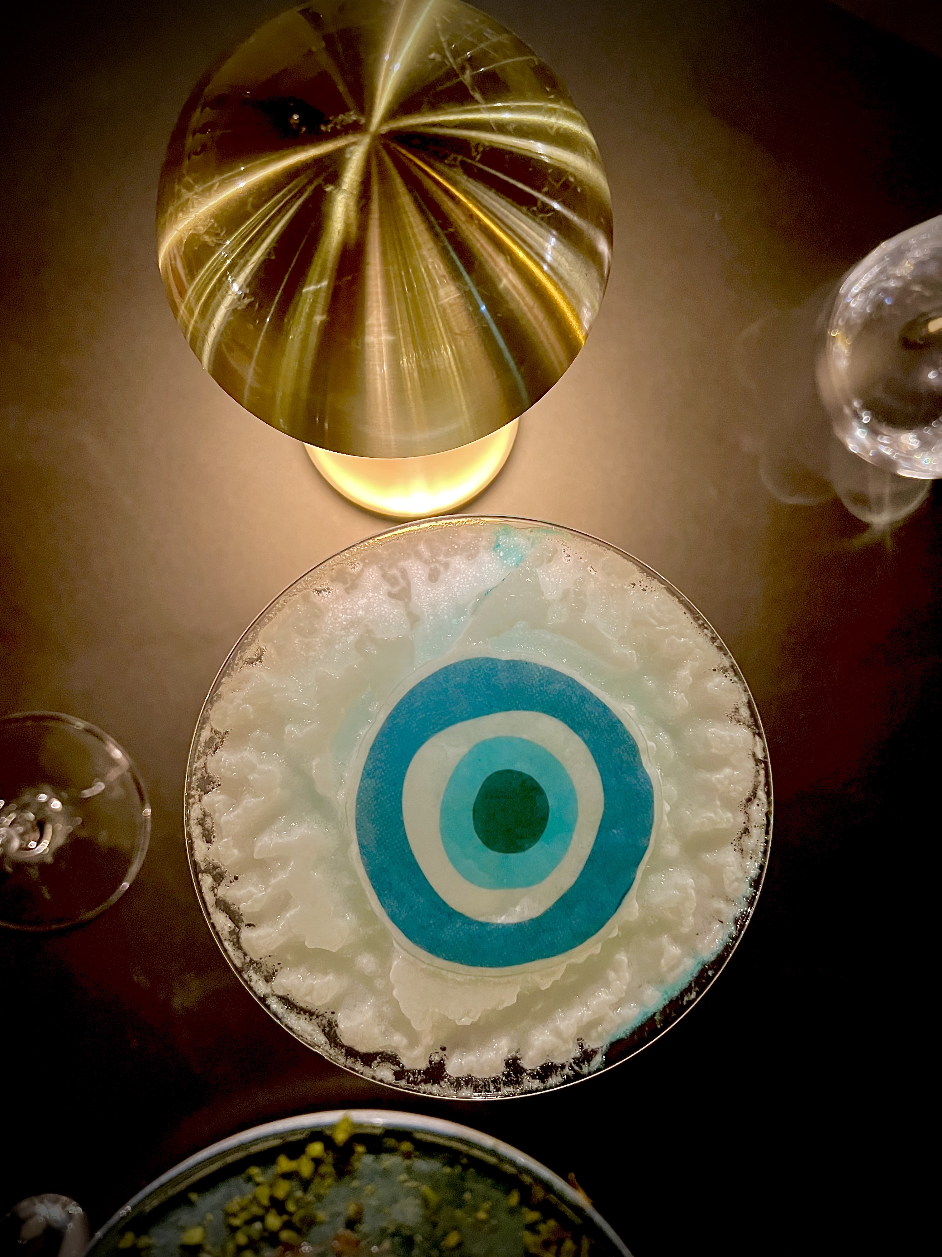 Les cocktails, à déguster au bar ou sur la belle terrasse faisant face et front de cette mythique Croisette et de cette légendaire façade, ont cette formidable créativité de reprendre les classiques d’une identité orientale et épicée comme le Ottoman Old Fashion, twisté d’un sirop tabac et de dates, ou le très fin Black Sea (Maker’s Mark Whiskey, Cognac, Single Malt, Vermouth, Sirop d’épices Fumé), le floral Naza Sour (Vodka Ketel One infusée à la Cardamome, Rose, Poire, Curaçao, Espuma de Champagne) qui est la star des réseaux de son instagrammable apparence, tout comme le très gourmand Constantinople (Roku Gin infusé à la truffe, Safran, Citron, Poivre noir, Parmesan) qui se boit ou « se mange » en perfection en début de repas et accompagne les petites assiettes ou Mezze à la perfection.