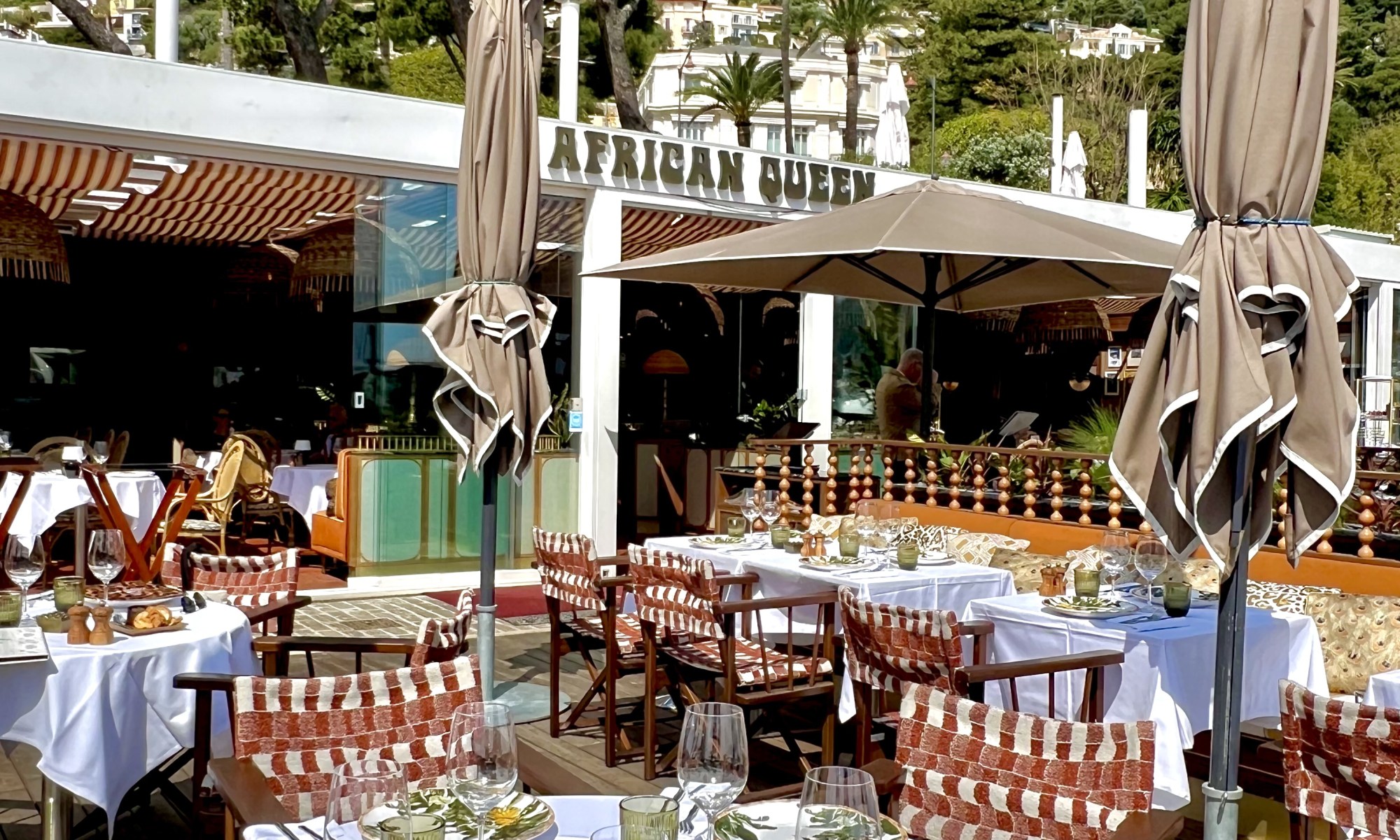 L‘African Queen reprend les flots avec brio et délices et est reparti pour continuer à vivre son odyssée sur le fleuve mondain, tout en faisant mouche auprès des habitués, des milliardaires en goguette, des notables locaux, des curieux ou des jeunes gens en quête pour impressionner leur conquête…. Tous ont cette fierté d’y être allé et ont cette sensation d’appartenance à ce lieu hype et marqué qui se savoure entre mer et montagne, Yacht et Bentley, Zodiac et Clio.