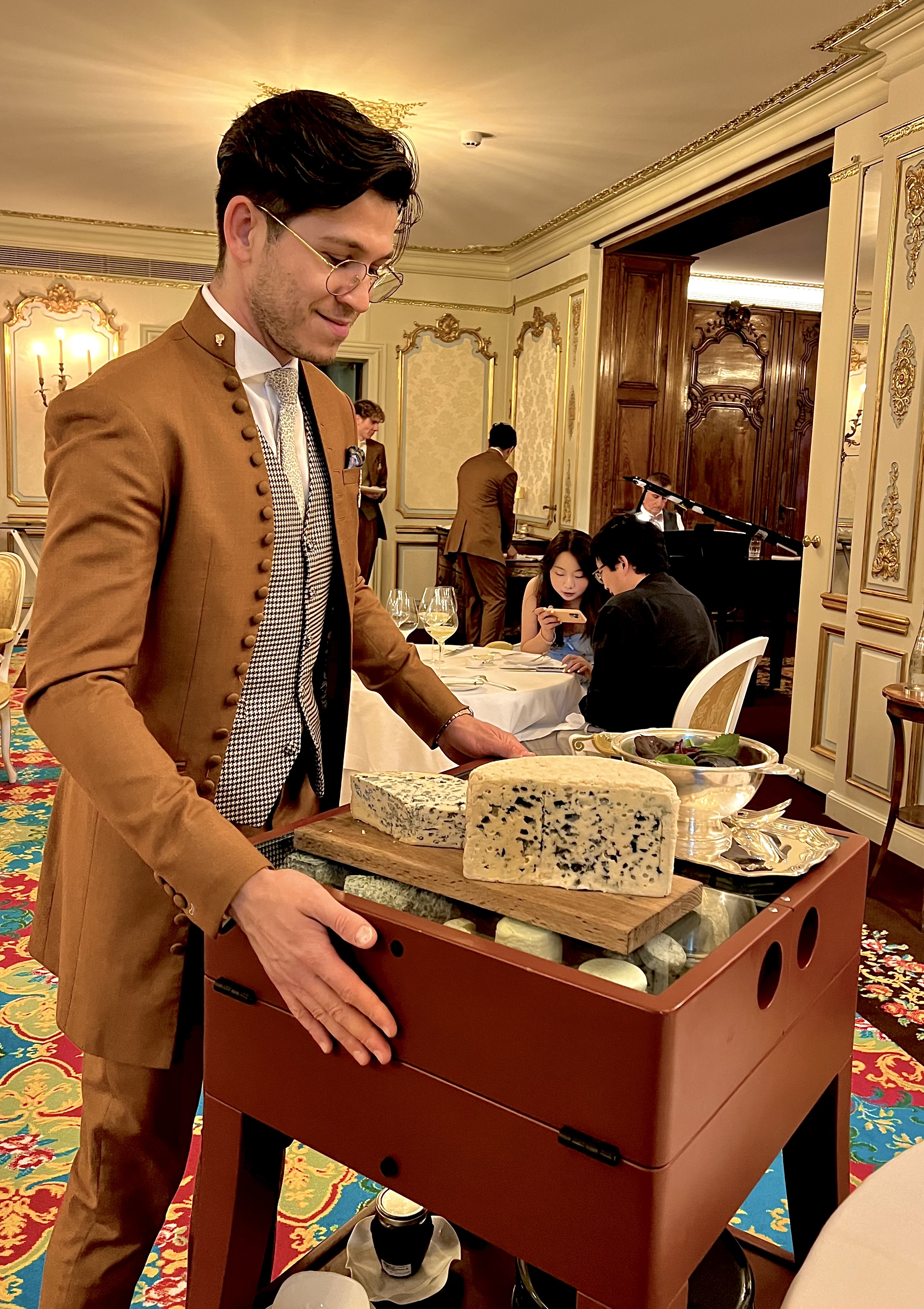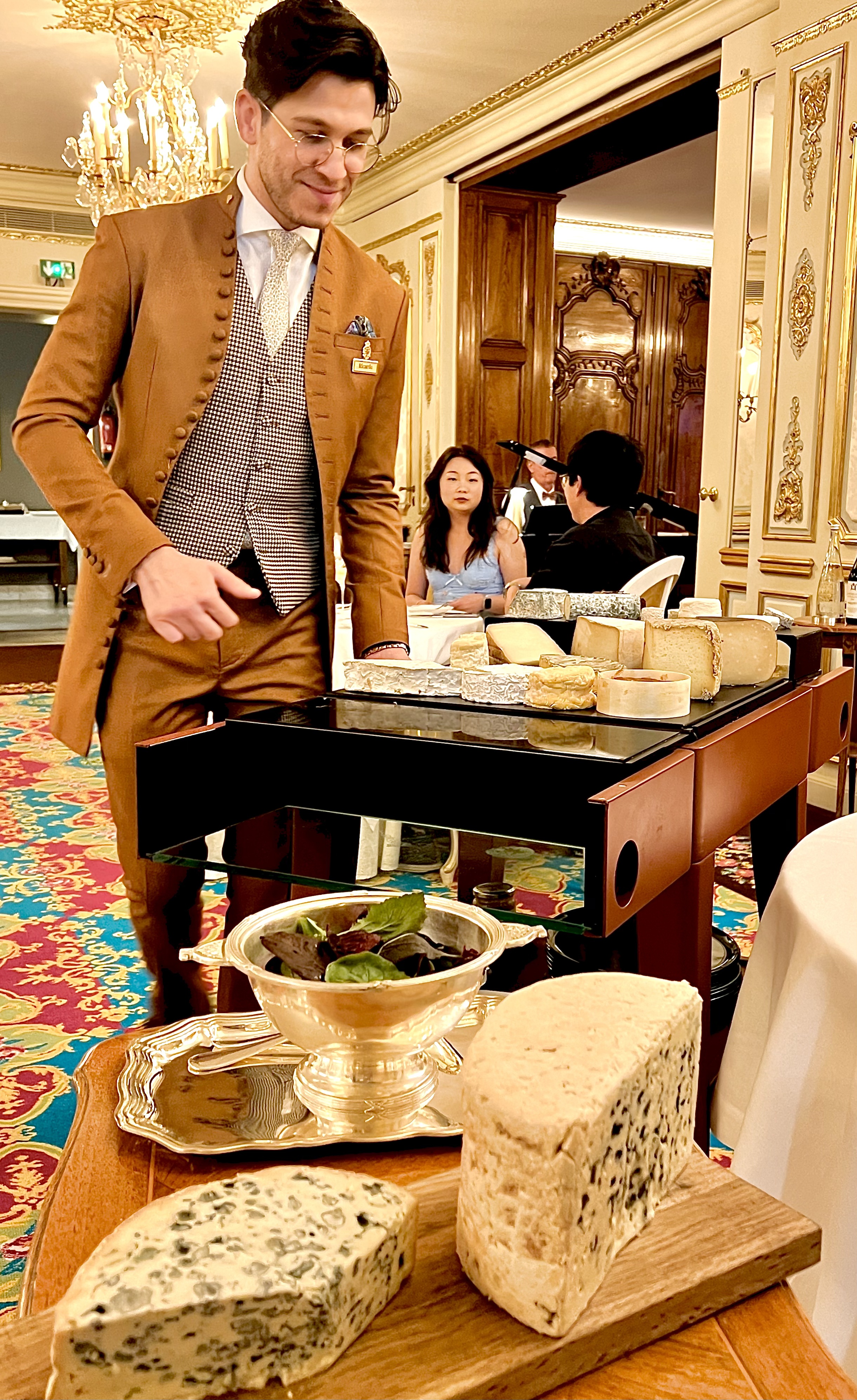 Le chariot de fromages, servi en salle, est toujours un plaisir visuel qui déclenche les envies de ces chèvres frais, ou crémeux, de ces tommes de l’arrière pays, de ces pâtes molles, dures ou persillées au bel affinage du fromager du quartier : Nery. Cette sélection s’étoffe de belles feuilles de betteraves en salade.