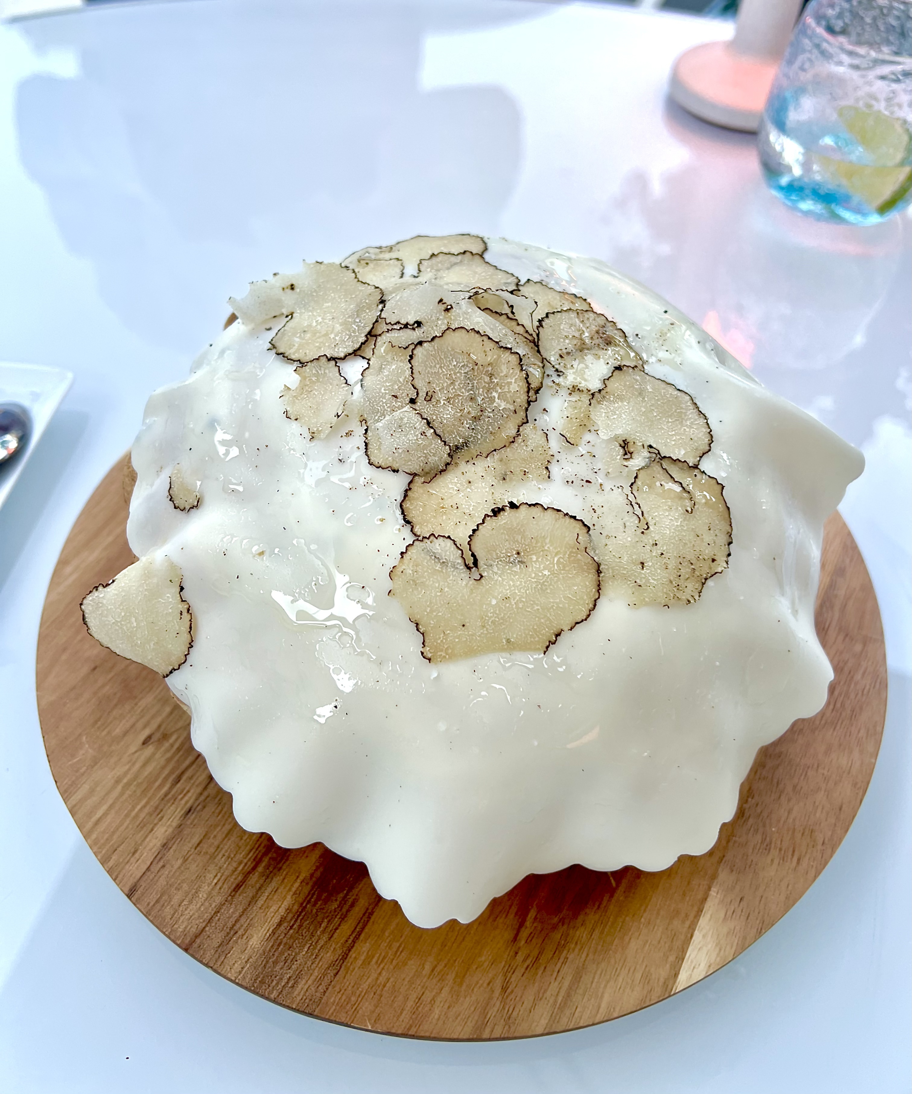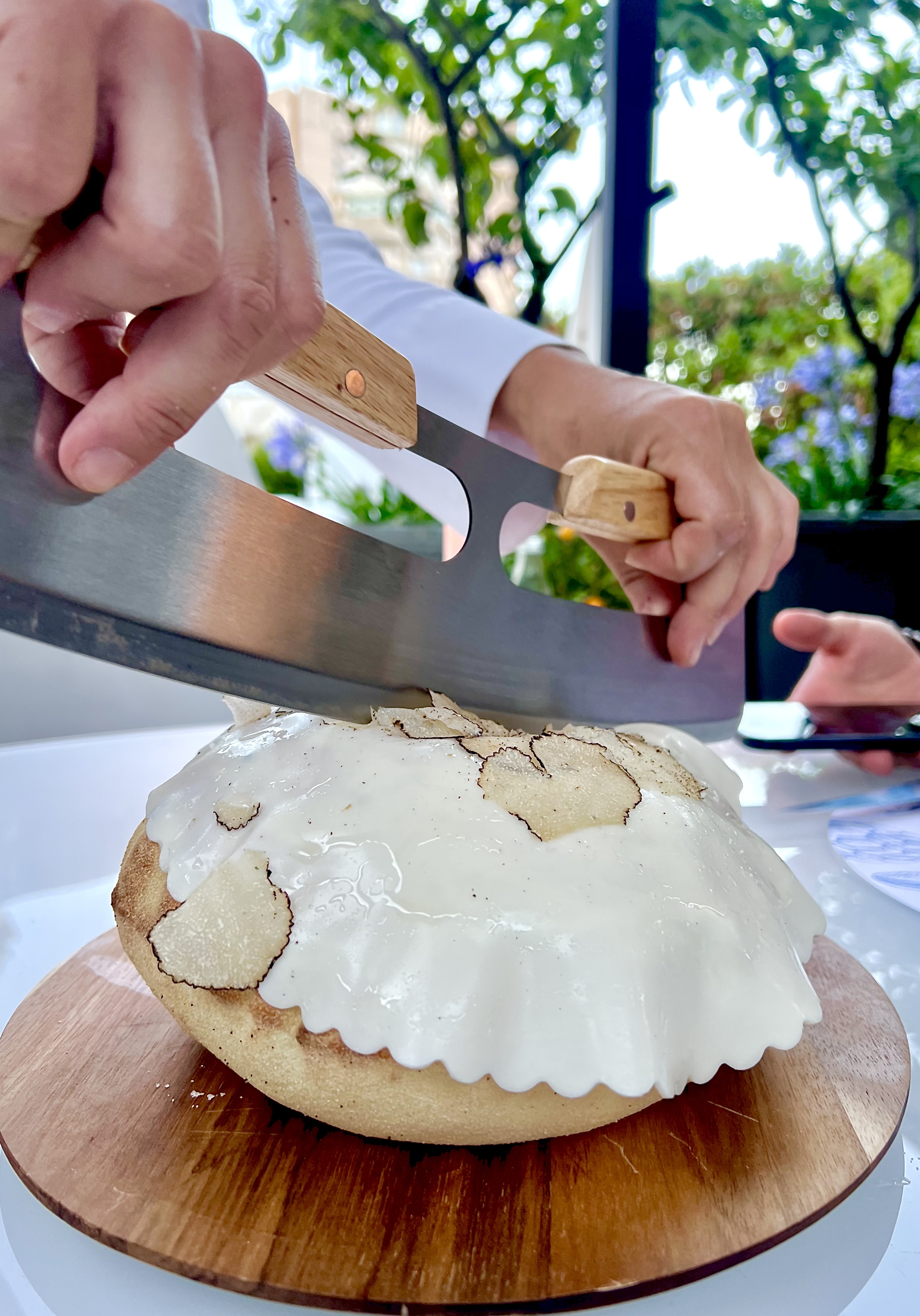 La Tartufo soufflée est la pizza spectaculaire de sa forme soufflée et levée qui prend le voile en finesse de mozzarela, les truffes fraîches viennent couronner ce voile de leur incomparable saveur. Une fois coupée de son souffle, cette pizza se tartine sans pudeur de bonheur d’une quenelle de crème de truffe à la mascarpone et de caviar de truffe. Tout est dit et bien dit.