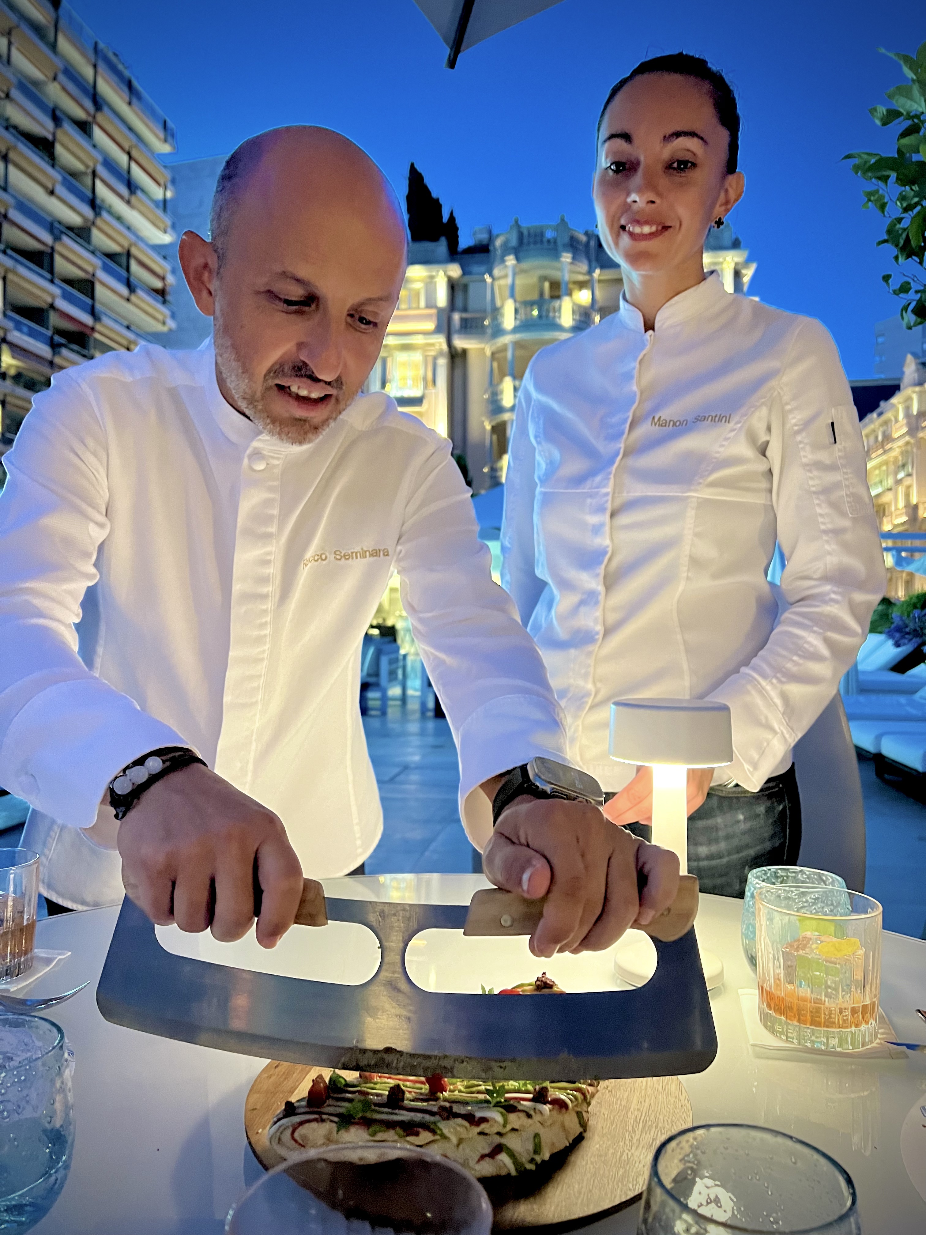 C’est un retour en Principauté pour les deux chefs : tous deux ont un parcours assuré et bien balancé. Manon, après avoir été diplômée à l’école hôtelière de Marseille, se forme en pâtisserie auprès de l’emblématique Christophe Michalak au Plaza Athénée. Elle rejoint Rocco Seminara à l’Hôtel de Paris Monte-Carlo et, en 2016, elle remporte à ses côtés le prestigieux prix Neptune décerné par le chef Joël Robuchon. Puis elle fait un passage dans les cuisines du restaurant Bagatelle Monte-Carlo avant d’être nommée en 2019 cheffe de Cucina, la table italienne signée Alain Ducasse au Byblos de Saint-Tropez. La même année, elle remporte le titre de World Champion Pizza Dessert pour ses pizzas sucrées à Rome. En 2021, elle devient Cheffe Pâtissière du groupe Bagatelle.