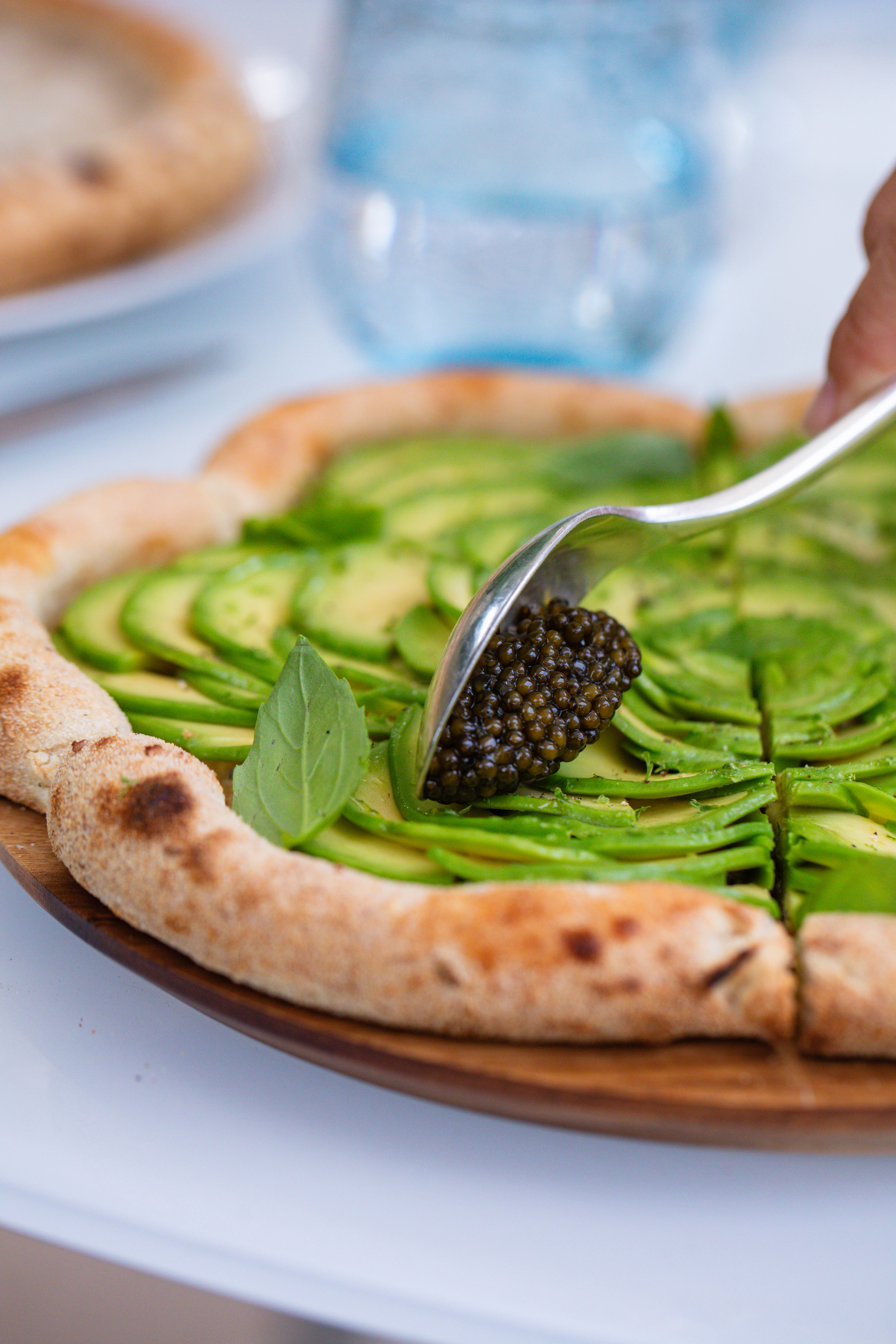 Et pour la folie et certainement pas la frime l’Avocado e Caviale est une pizza de luxe, mais d’une incroyable valeur gustative entre rondeur et douceur accompagnante de l’avocat tiédi et de l’iode noisetté et beurré du caviar. Un assemblage d’une évidente réussite.