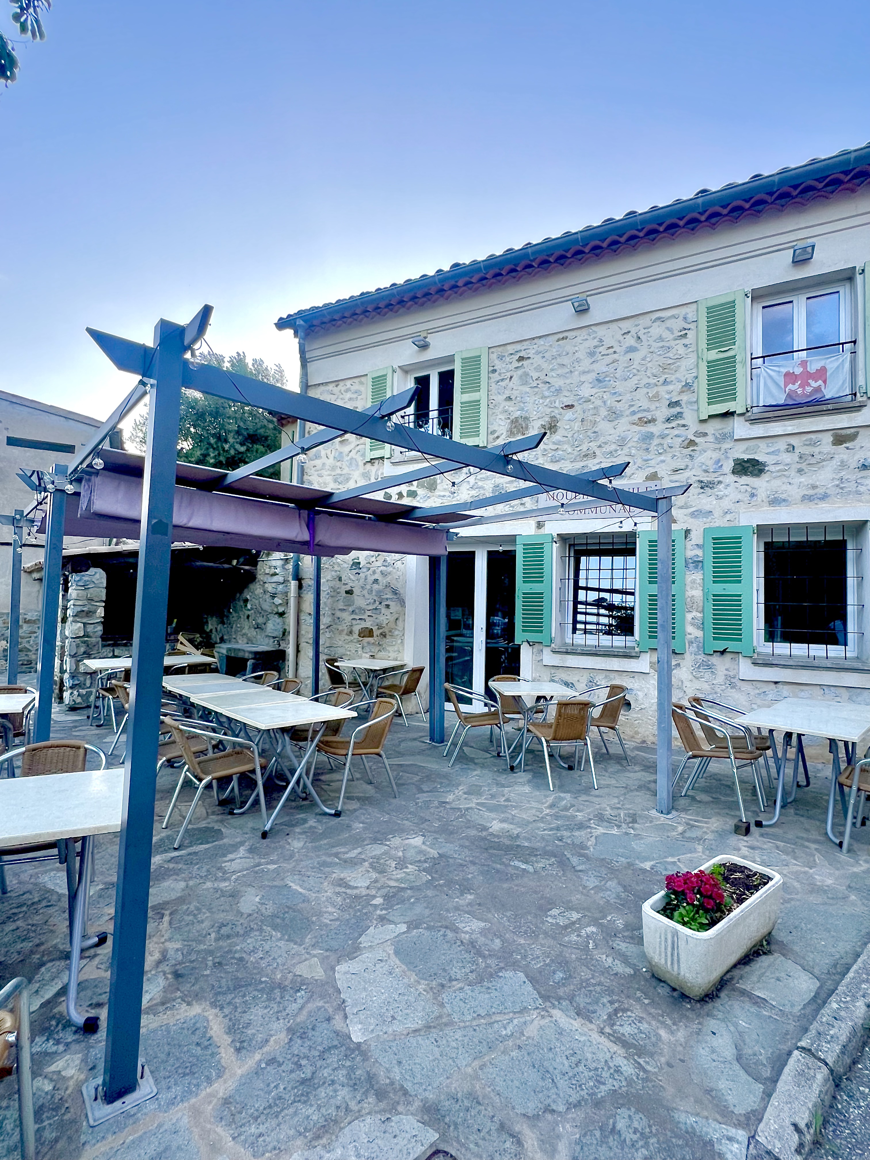 L’auberge, située sur la place du village, jouxtant la mairie, le four et le moulin à huile communal, est le point névralgique et social de Massoins.