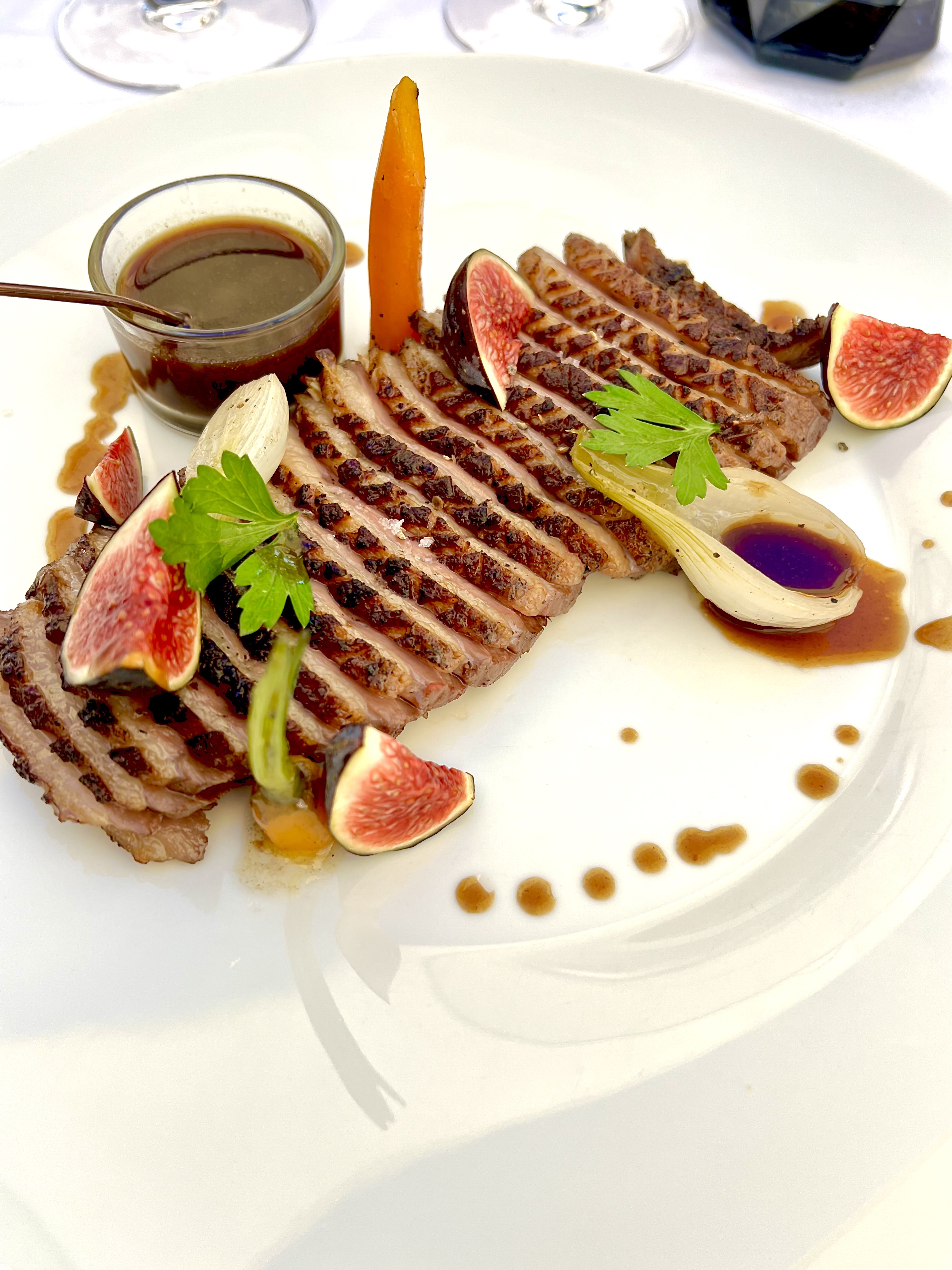 Magret de Canard de la ferme de Jean Sarthe des Landes rôti, jus crémé au poivre vert, légumes glacés et poêlée de mini gnocchis : cuisson perfection de ce magret fermier qui se déguste sans façon et qui anime les envies de sa belle texture. La sauce au poivre vert est un retour sur un grand classique qu’on aime retrouver. Les mini gnocchis sont de fringants petits bonbons addictivement dorés et nourris de beurre.