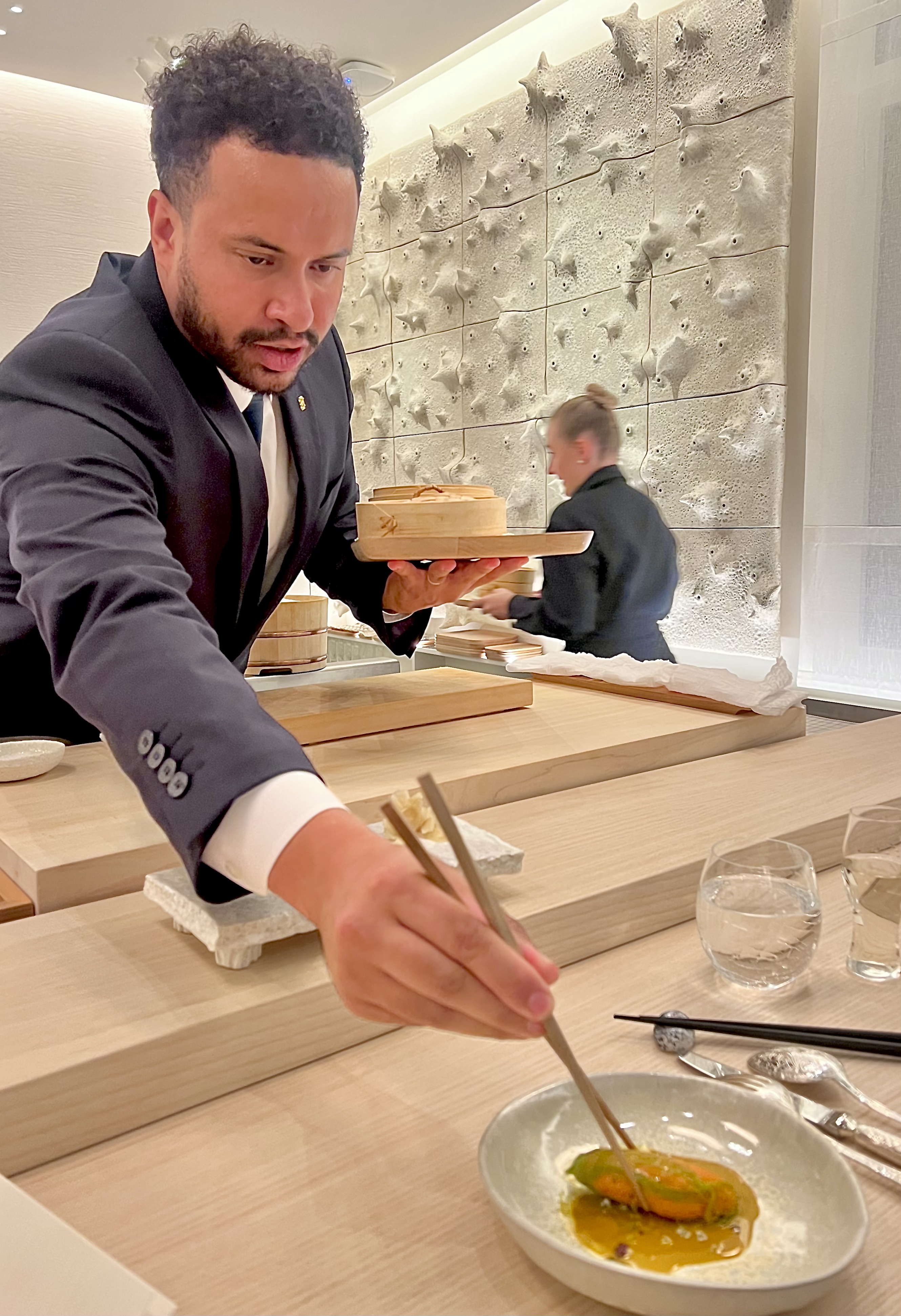 Le service, orchestré par Jennifer Casagrande et exécuté avec attention et sincérité par Maged Yassen, est ici à son paroxysme de « l’omotenashi« , accompagnant, doux et professionnel, aux belles attentions,